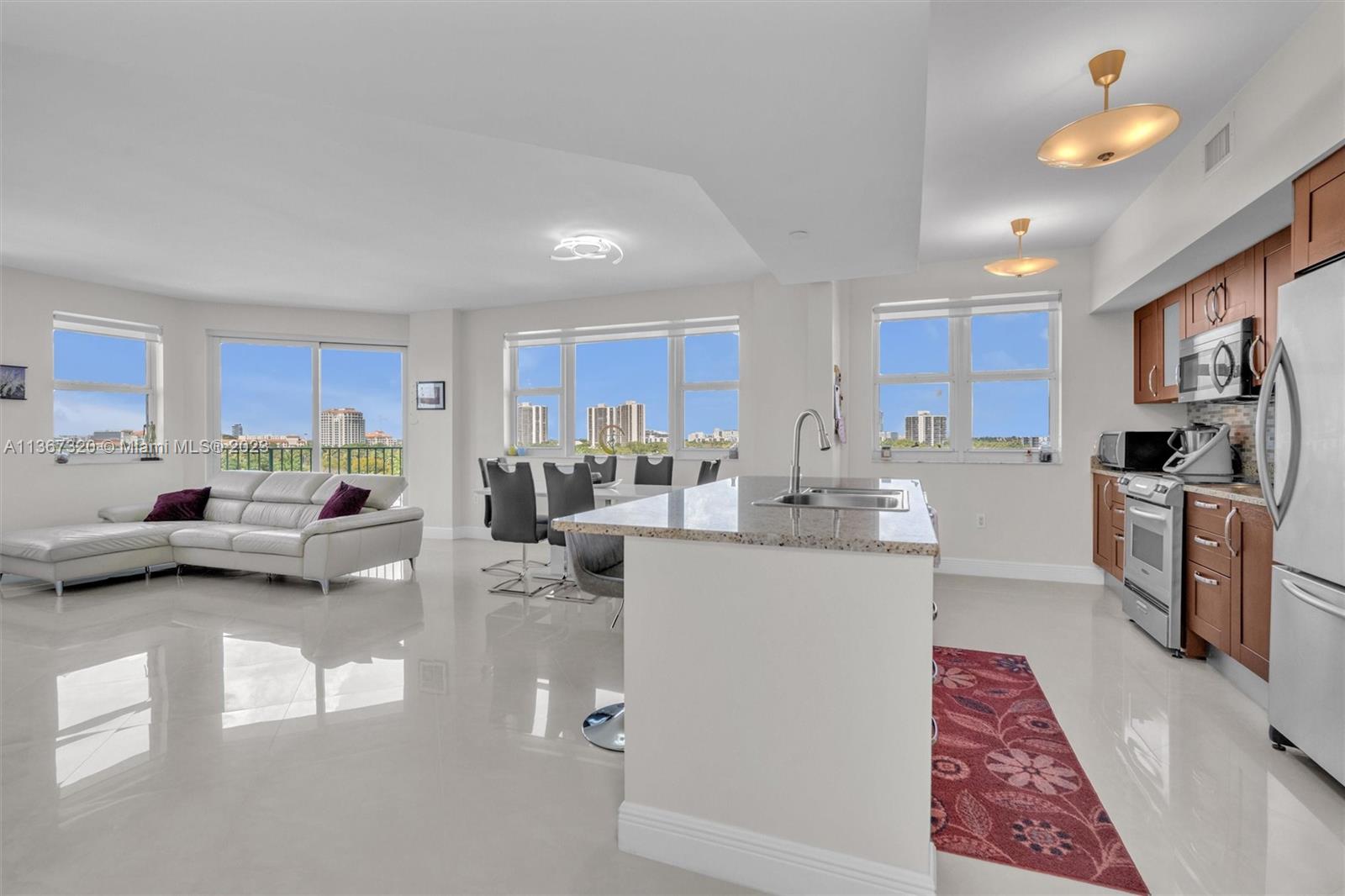 Prestige corner unit, excellent conditions, at Turnberry Village South with impressive view from the Ocean to Golf Course. FURNITURE INCLUDED (no master bedroom) 3 bedrooms and 3 full baths, marble flooring, full of natural light open kitchen with ss appliances, granite countertops & wood cabinets. Bright living room with plenty of windows and big balcony where enjoy spectacular sunsets, 2 adjacent assigned parking spaces and storage. 5 stars resort-like amenities: Spa, Service Pool, Sun Deck, Clubhouse, Bbq area, Fitness center, Yoga studio, free Classes, Playground area, free Valet, Lobby attendance, Guard at gate. Minutes from Aventura Mall, beaches, restaurants, endless activities. A+ Schools, great parks and outdoor fun.