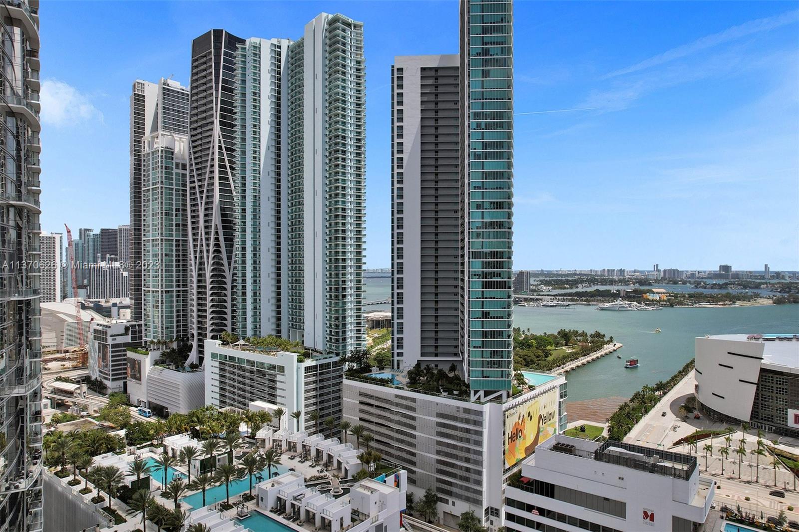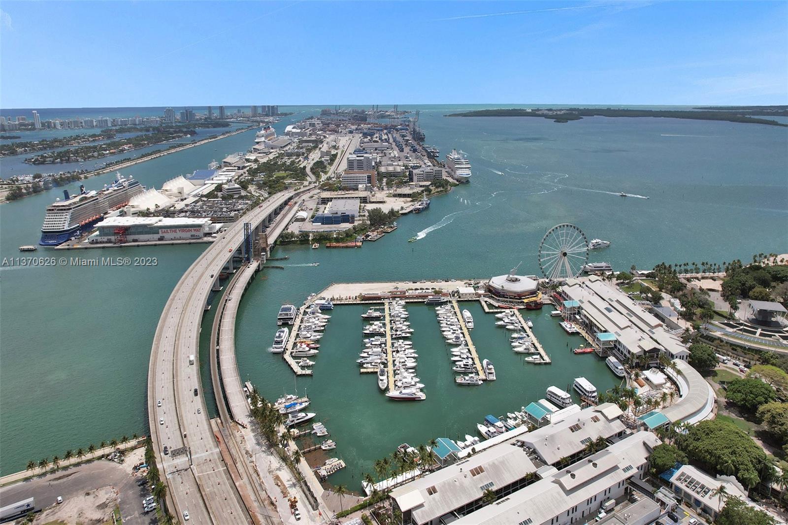 Wonderfull view, high floor, Bayfront corner large 1318 SF 2/2 @ Marina Blue; stainless steel kitchen appliances; high ceilings + 145 SF balcony offering panoramic views of Biscayne Bay, Museum Parks & Miami Skyline. 1 covered park space for parking 2 cars, storage, Bldg. has 2 swimming pools (sunrise & sunset), Whirlpool hot tub, fitness ctr., biz. ctr. w/conf. room, 24-hour valet parking, sand volleyball court, party room & BBQ. Maintenance U$ 1,020.00 mth.