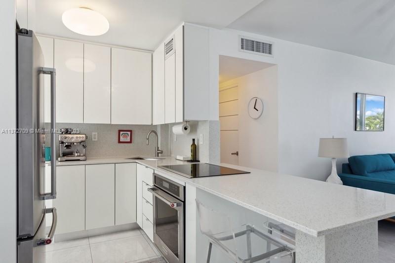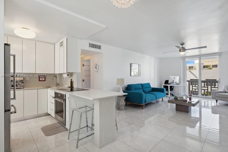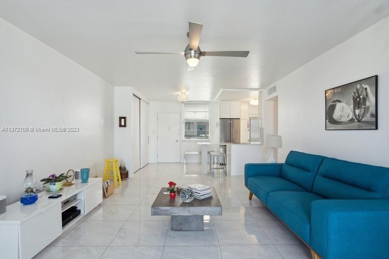 Large 1BR/1BA with balcony in MiMo era boutique-style 55+ building in Miami Beach. Features include contemporary design w/open kitchen, spacious living/dining area, ample closet space along w/walk-in, custom-made interior doors, impact windows & sliding glass door, and nice natural light. One open parking space and an assigned storage bin; note: there are less parking spaces than units in the building; so parking space only available on a first come first serve basis. Building has secured lobby, elevator & community laundry. Maintenance includes cable TV & Internet. No leasing & no pets. Great location to Lincoln Rd., New World Symphony & SoundScape Park, the Fillmore, the beach, South Beach restaurants & shopping, and public transportation, as well as near the Bass Museum & Collins Park.