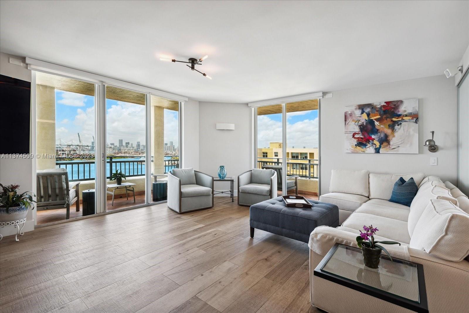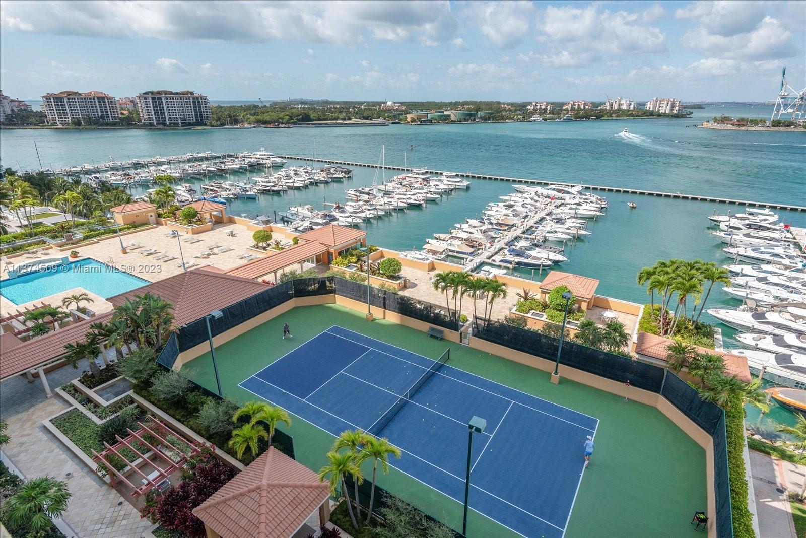 This fully renovated 2-bedroom corner unit in The Yacht Club at Portofino offers magnificent West views of downtown Miami from its wrap-around private terrace. The professionally designed space features a Control4 system to operate the surround sound, Sonos, lights, shades, and TV. The unit boasts high-end finishes, including Bosch appliances, solid cherry wood doors, and ceramic tile floors and bathroom walls from Porcelenosa. Residents can enjoy access to a range of building amenities, including a heated swimming pool and spa, lighted tennis court, fitness center, clubroom, and valet parking. The location is ideal, with world-class dining, entertainment, and brilliant beaches just minutes away. This home is perfect for those seeking luxurious living in a prime Miami Beach location.