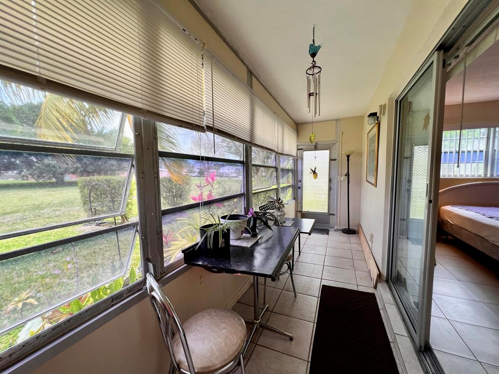 Light & Bright First Floor Corner Condo Featuring Central AC & Neutral Tile Flooring. This sunny corner unit features a Spacious Bedroom Suite With Updated Full Ensuite Bath, Wall of Closets, and Access to the Lanai. Updated Full Ensuite Bath With Step-in Shower. Century Village is a 55+ community with so much to offer... shows, movies, clubs, pools, security, and transportation service. The Clubhouse features a theater, indoor pool, card room, community/party room, billiard room, shuffleboard, tennis, pickleball, bocce, and two outdoor pools.