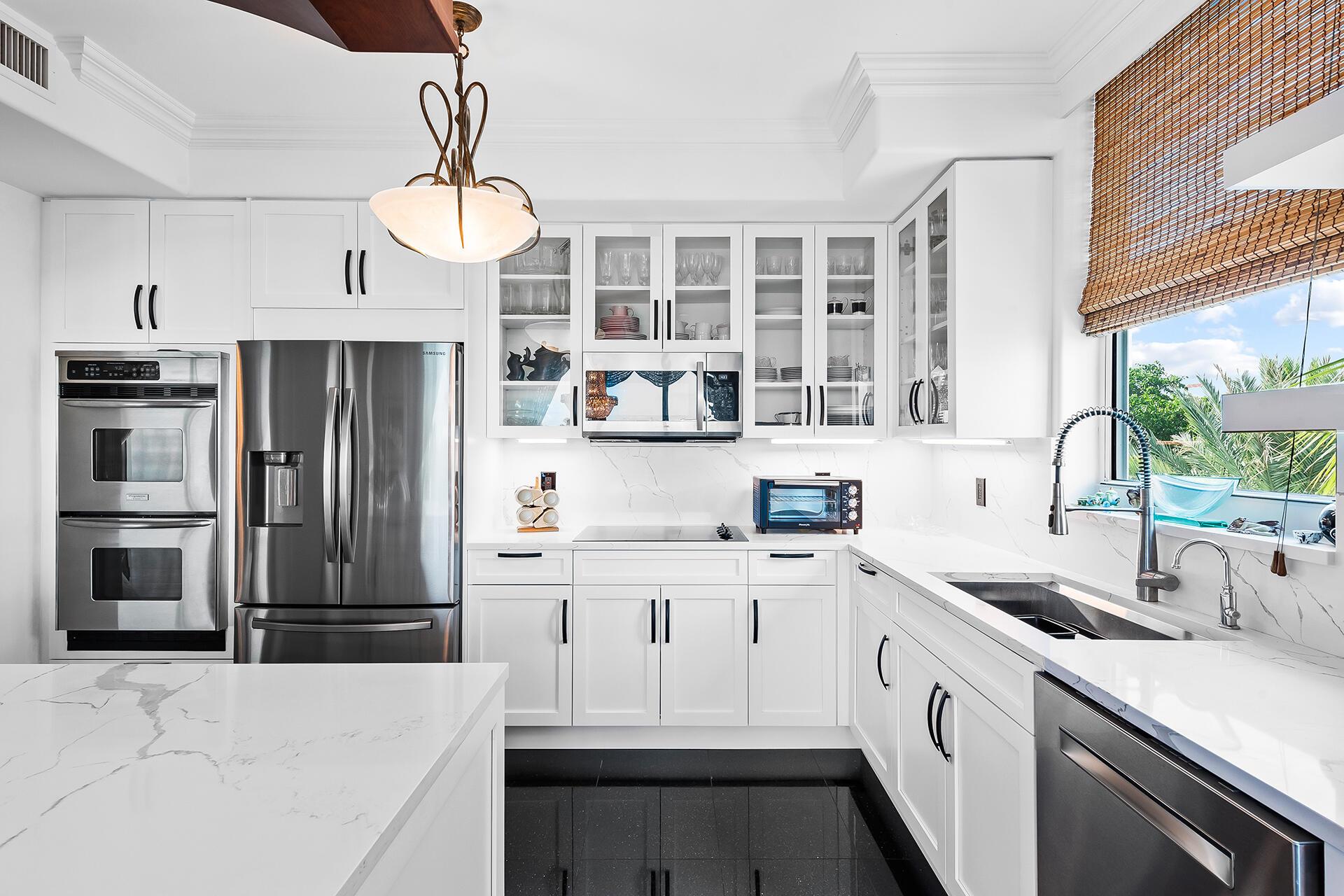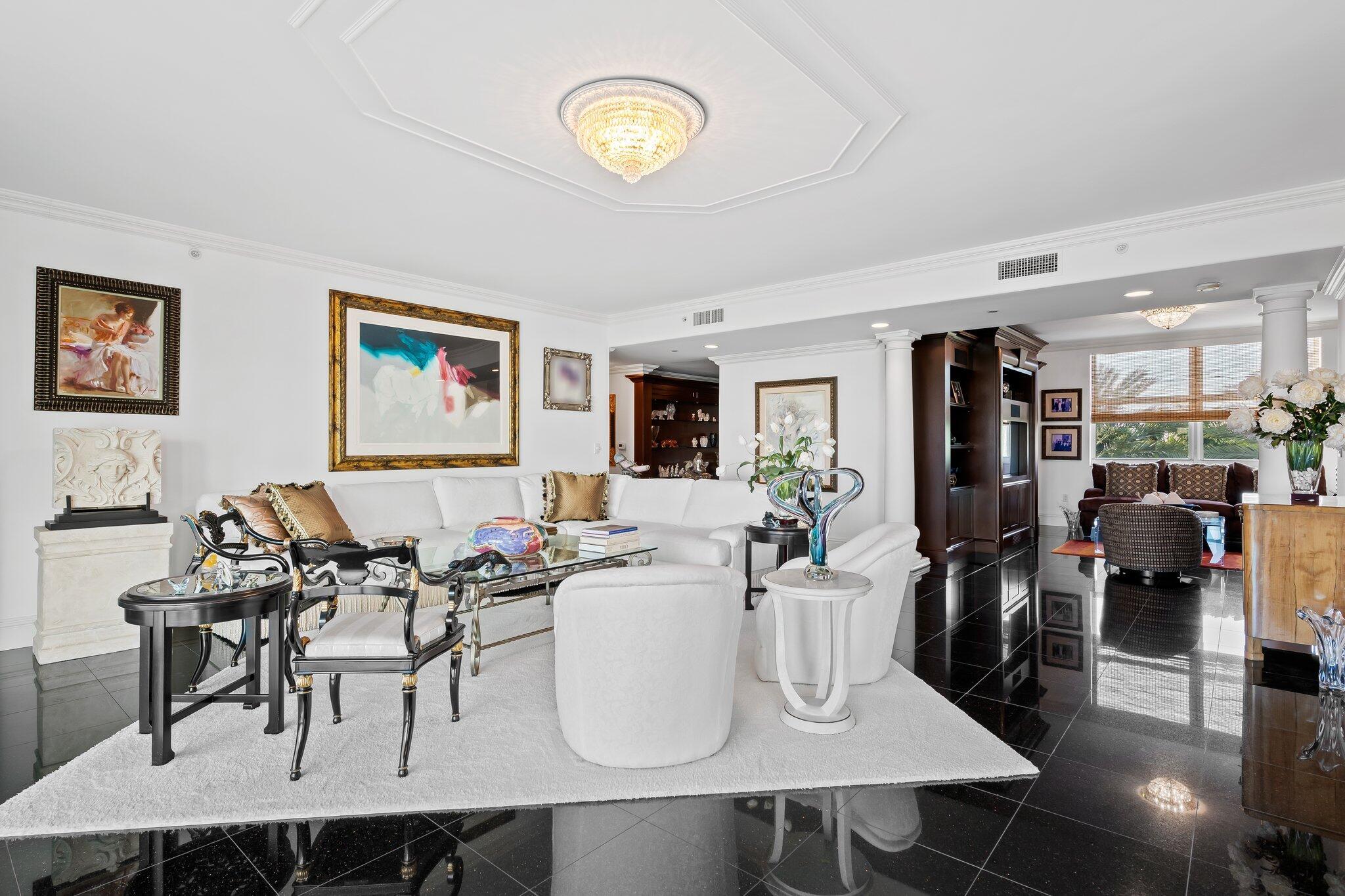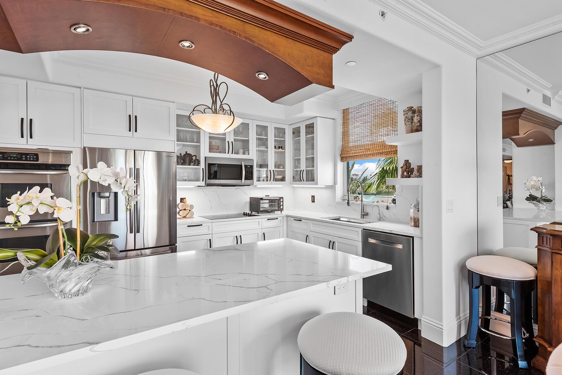 Spacious unit with great pool and golf views! Immaculately maintained by original owner. Two bedrooms plus den that can be converted to third bedroom. Renovated kitchen in 2022 with white cabinetry and quartz countertops with SS appliances. Spectacular views of pool, lush grounds and the Boca Raton golf course beyond. The unit offers a large primary suite with private balcony and luxurious marble bathroom. This unit include 2 covered garage parking spaces- rarely available. Townsend Place offers the best of luxury living, perfectly located in the heart of downtown Boca with easy access to the best shopping, dining and entertainment options around. 24 hour gated security, valet guest parking, concierge, private underground parking garage, fitness center and resort pool.