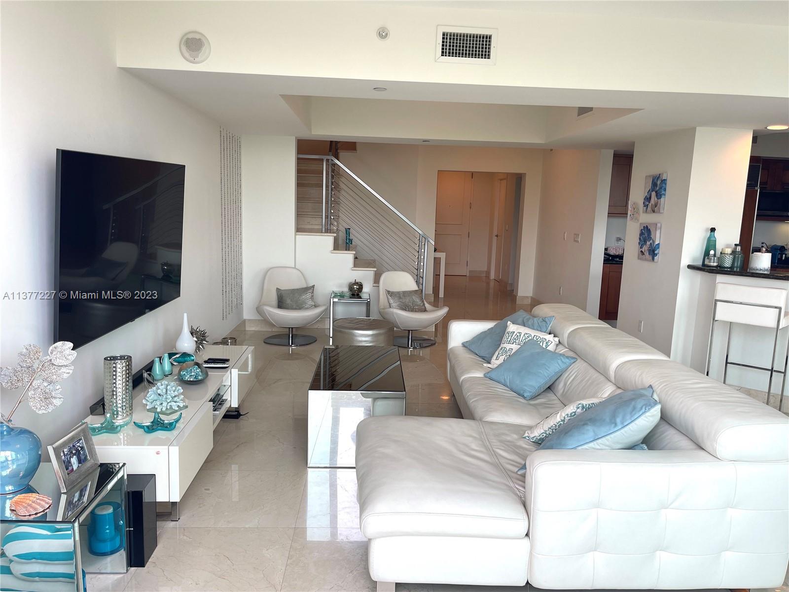 Unique opportunity to acquire duplex in exclusive Peninsula II. Magnificent unit w/ two full rooms & two closed dens converted to rooms, marble & wood floors throughout, floor to ceiling windows with intracoastal views & lots of light. First floor holds reception toilet, laundry room, & media room converted into bedroom. Living room w/ access to a large balcony. Great dining room w/ floor-to-ceiling windows & spectacular views. Kitchen with Sub-Zero refrigerator, microwave, double oven and heater & high breakfast bar. Modern staircase to upper floor with Den converted into a bedroom. Sec bedroom in suite w/ large storage closet, lots of light & views. Master bedroom, w/ large Walk in closet, master bath w/standing tub and a double-entry shower. Floor-to-ceiling windows w/ intracoastal view