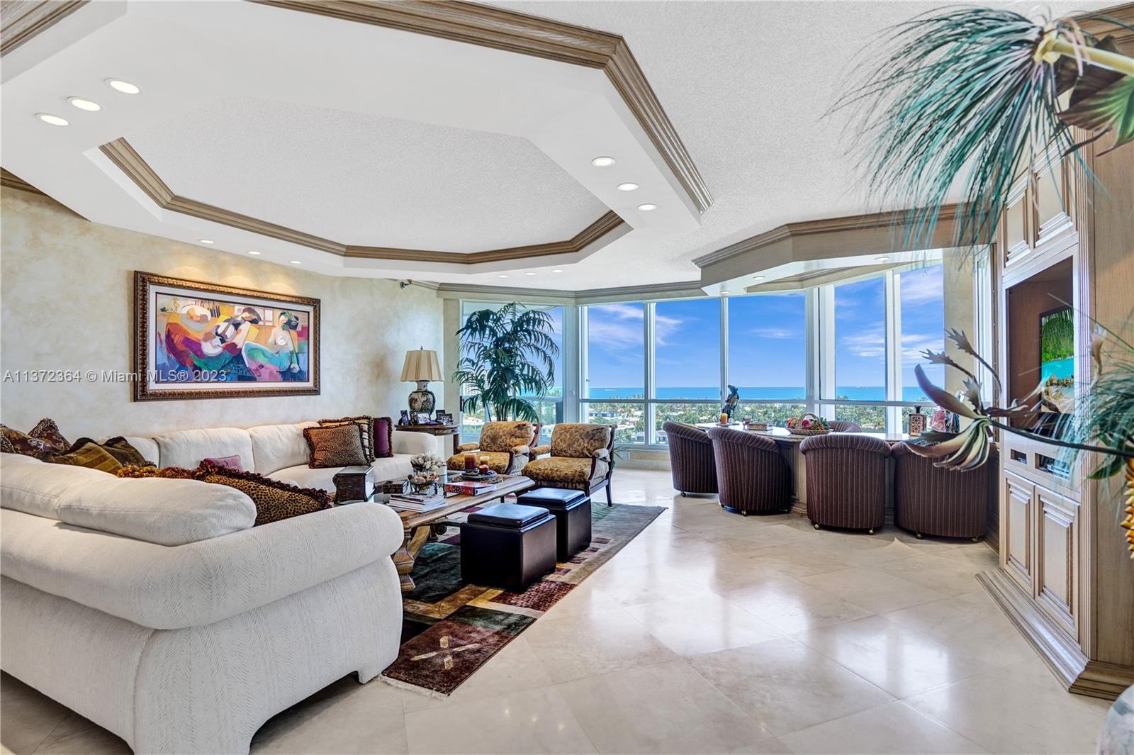 One of the best floorplans in Aventura! Two of the three bedrooms have direct ocean views, This SE corner apartment has panoramic views of Golden Beach, the Intracoastal, and the ocean. Bright & spacious. 3 bedrooms & 3 baths. Large master bedroom with sitting area and huge closets. Eat-in kitchen, built-in bar and a full-size laundry room. Two balconies. 2 garage parking spaces, & valet. Recently renovated lobby with 24-hour security and valet. Great amenities included in the maintenance: 25,000 sf spa & fitness center with an outdoor café, 3 pools, tennis courts, BBQ area & kids’ playground. Walking distance to restaurants and shops. Easy to see.