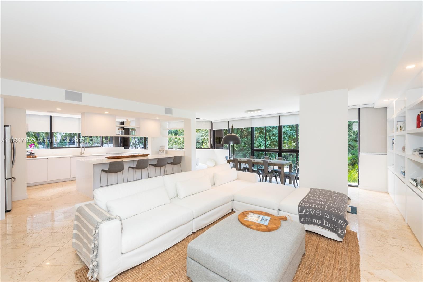 Unique corner unit, FULLY RENOVATED, located at Key Colony Botanica. 2,217 sq ft as per appraisal. 3 BEDROOMS + ENCLOSED DEN + 2 FULL BATHROOMS. Spacious and bright Living & Dining facing the gardens. Open Kitchen with lots of Storage space & open bar with stools. Marble Floors throughout the unit. Washer and Dryer inside the unit. 2 assigned parking spaces (E46 & E60). Unit is fully furnished, the furniture may be sold separately at an additional price. Unit is owner occupied and is ready to move in.