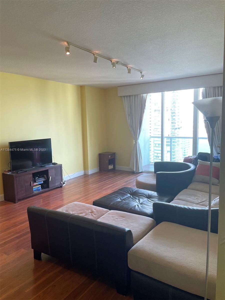 Fabulous EAST WATER VIEWS from this 41st flr unit, largest 2/2.5 in the bldg featuring hardwood floors, stainless steel appliances, custom closets, laundry/pantry. Great breezes from 2 balconies off living room and master bedroom. Full Service building wi th contemporary lobby and amenities. Five levels of health and fitness center, sauna & steam room, two pools and full service concierge and business center. Walking distance to everything: Financial district, restaurants, brickell city center, etc.
