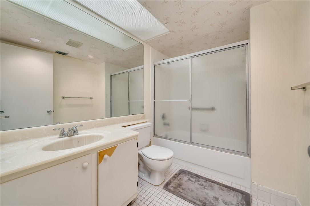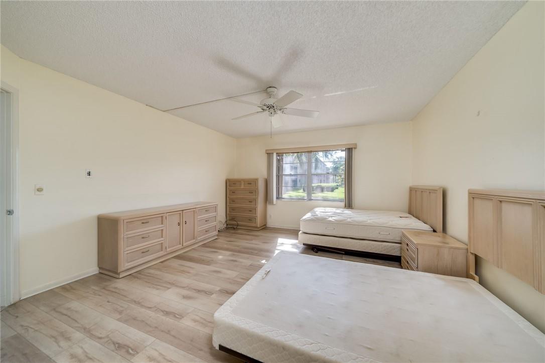 Don't miss out on this incredible opportunity to own a 2 bedroom, 2 full bath corner, first floor condo in Century Village! This unit offers a split floor plan for privacy, as well as a screened-in patio and extra-large primary bedroom with walk-in shower and closet. Protected windows with accordion shutters ensure your safety and security. Plus, enjoy the added convenience of a washer and dryer in the unit. The 55+ community offers low-maintenance living, with maintenance of the grounds, clubhouse, pool, tennis, golf, amenities, clubs, activities, and bus service. Conveniently located on the first floor, this condo is perfect for those who prefer not to use stairs. Experience an active and social lifestyle in a safe and welcoming environment.