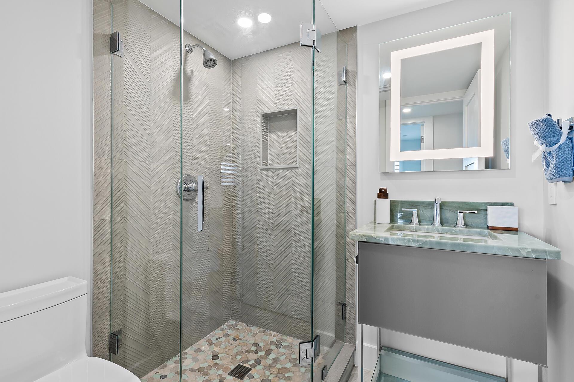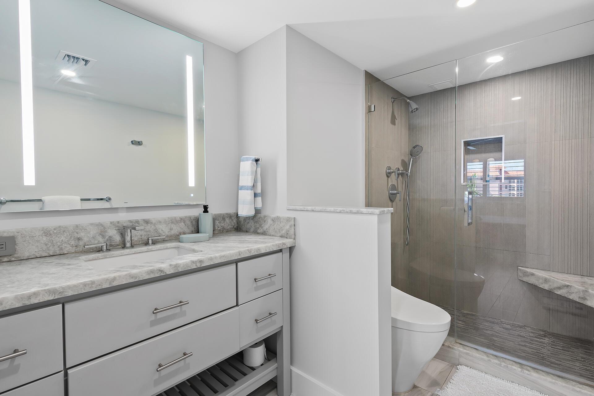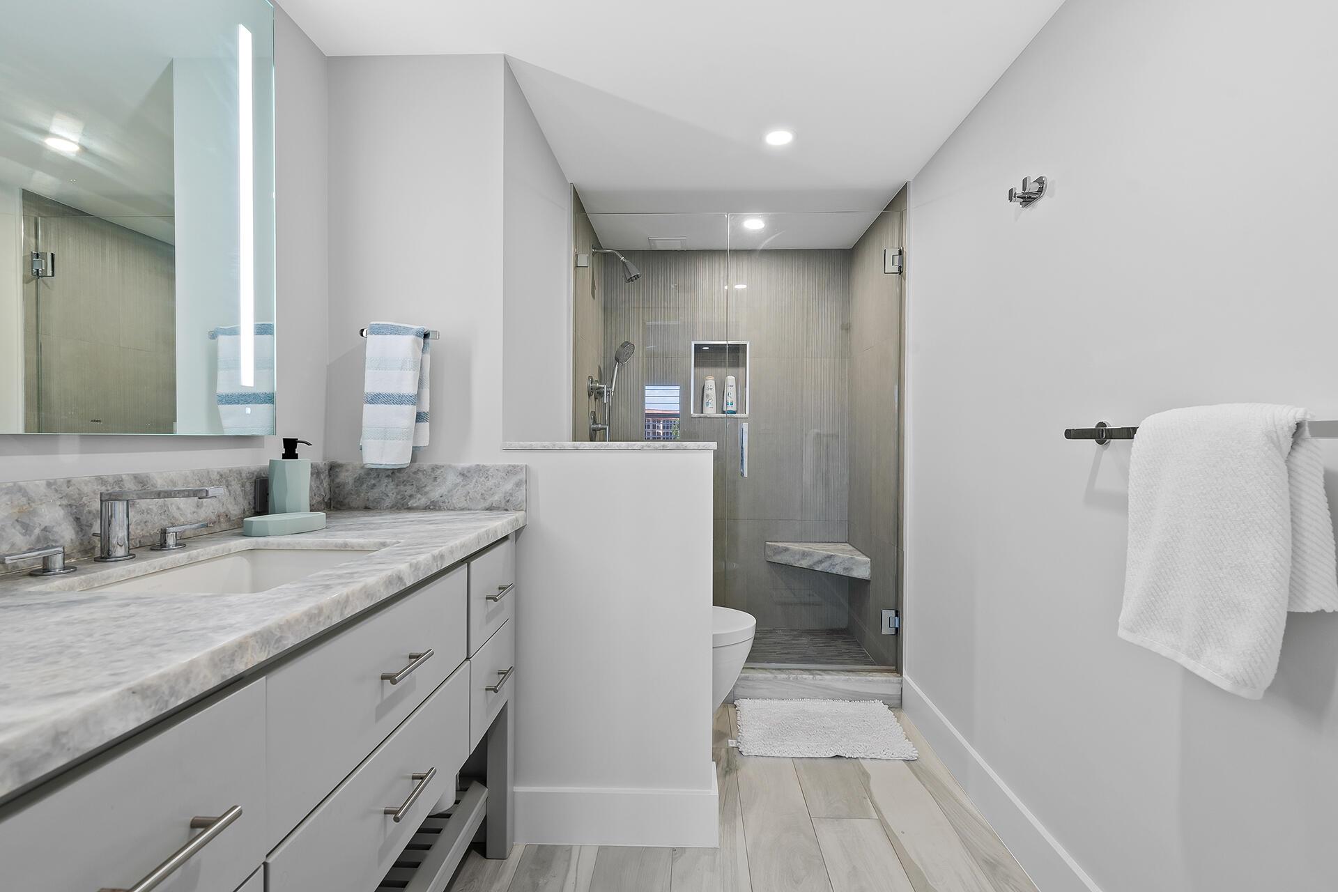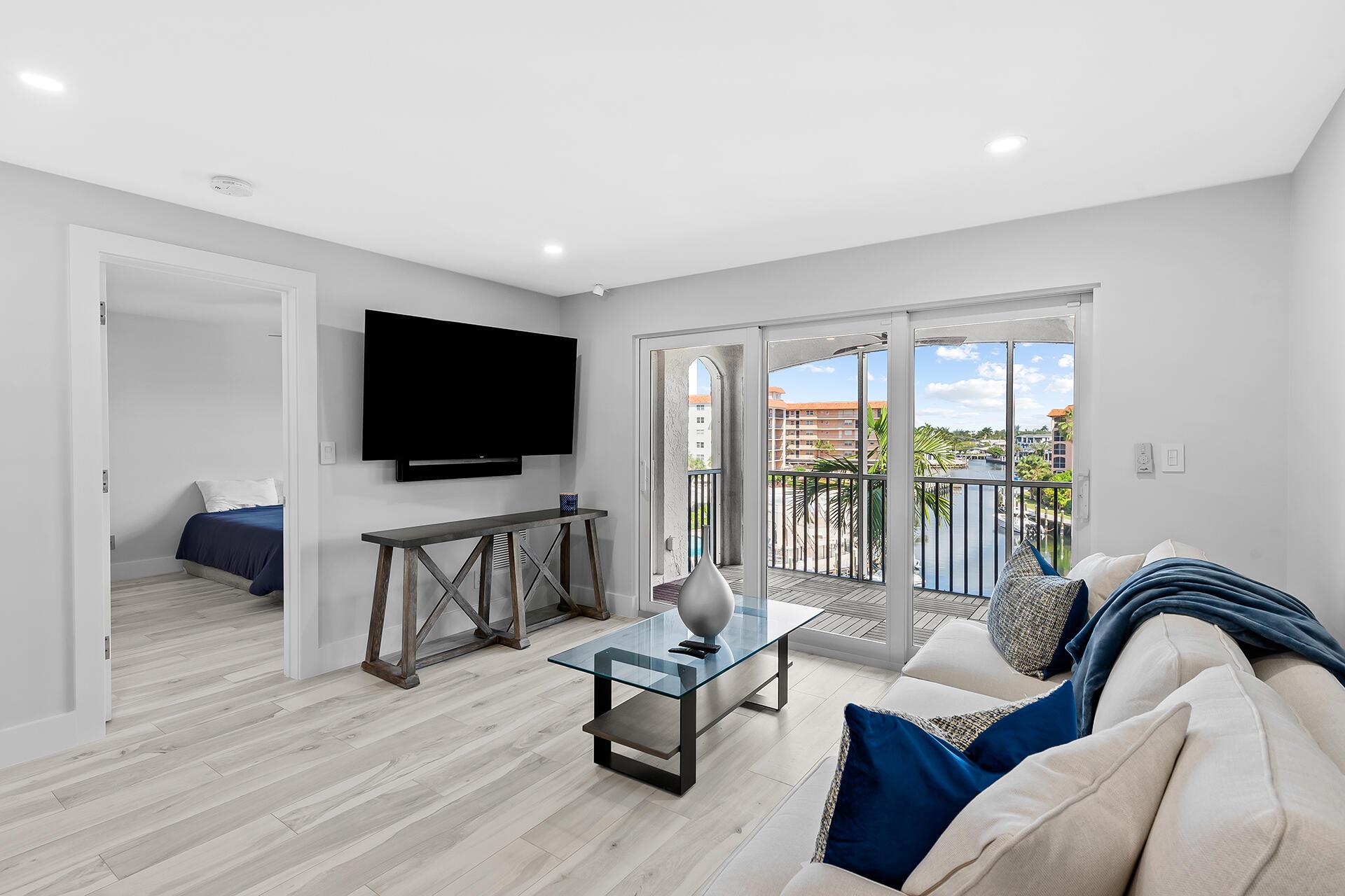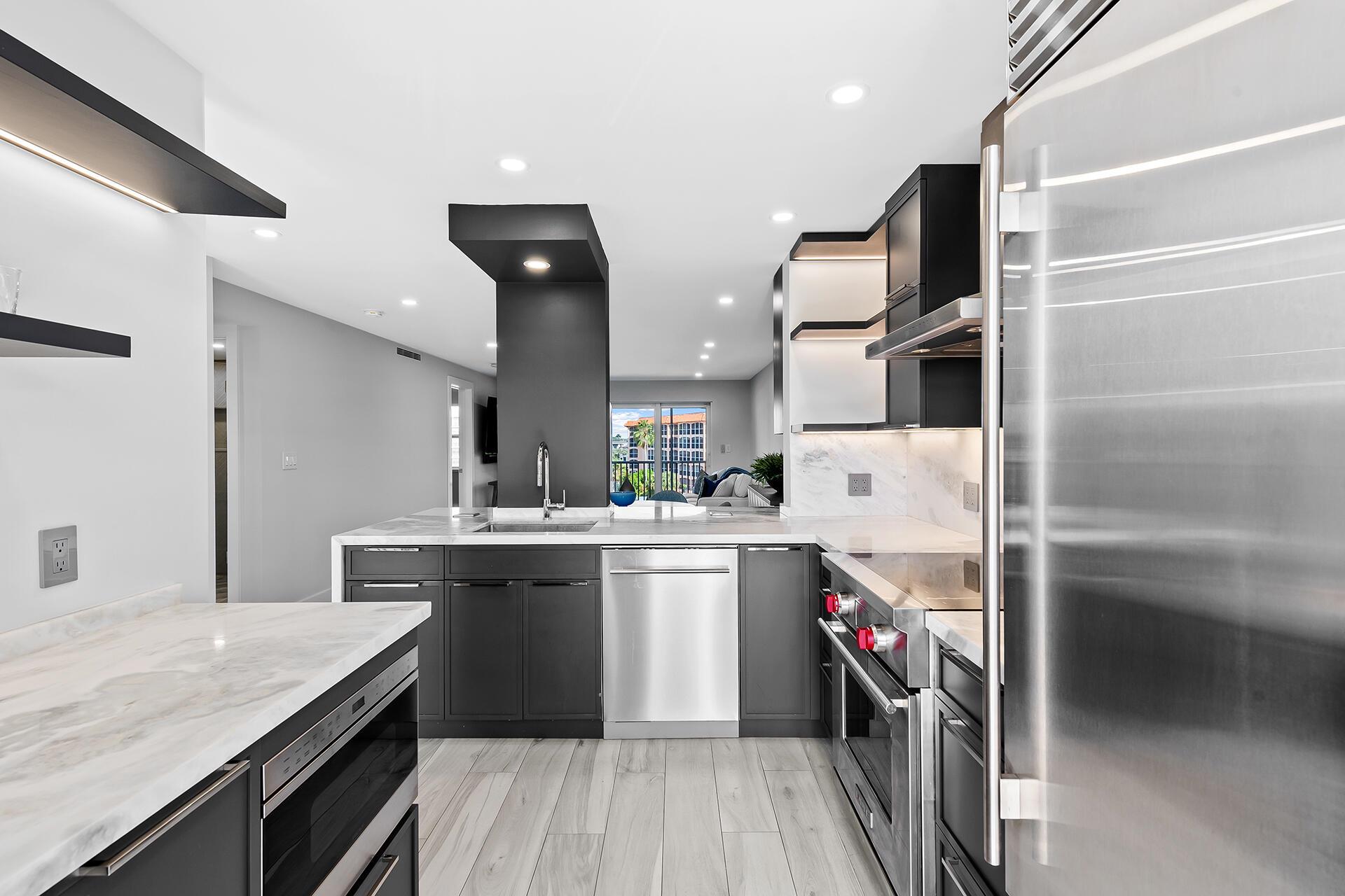 Top of the line renovations included - a unit unlike the typical competition on the market! Open kitchen with Quartzite waterfall, wolf range, induction cooktop, wolf hood, wolf microwave drawer, Miele dishwasher, Miele washer dryer, TVs stay, linear AC ducts, carrier AC updated - (NOT a ceiling unit) - Aroma 360 unit above AC. Porcelain tile from Italy (from artistic tile)throughout; Toto toilets with bidet in master plus heated seat and remote; Ipe wood deck tiles, impact glass completed, fabulous marina and Intracoastal view. Updated community just finishing concrete restoration and painting, Seawall/marina, pool, BBQ, bocce ball, shuffleboard. New gym in Milano building. New elevators paid for and going in. New electric for Buildings and electric panel done in this unit. Beach acces