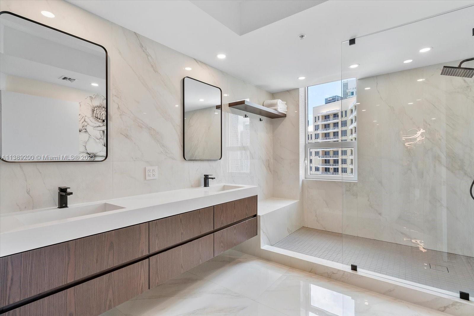 Located at Three Tequesta on Brickell Key Island, you will find this stunning fully renovated home in the sky with incredible panoramic views of the bay & city skyline. Offering a split floor plan with 3 bedrooms, 3 bathrooms, a powder room, 2 large terraces, 1 storage unit, & 2 assigned parking spaces. From sunrise to sunset, every room has access to a balcony and water views. Beautifully renovated with top-quality finishes & appliances, porcelain tile 30" x 60" & high ceilings. Enjoy resort-style amenities, including a two-story, fully-equipped gym; bayfront pool; 2 hot tubs; barbecue area; racquetball & tennis courts; business center; conference room; & children’s playroom. Walking distance to shops, restaurants & entertainment including Brickell City Centre & Mary Brickell Village.