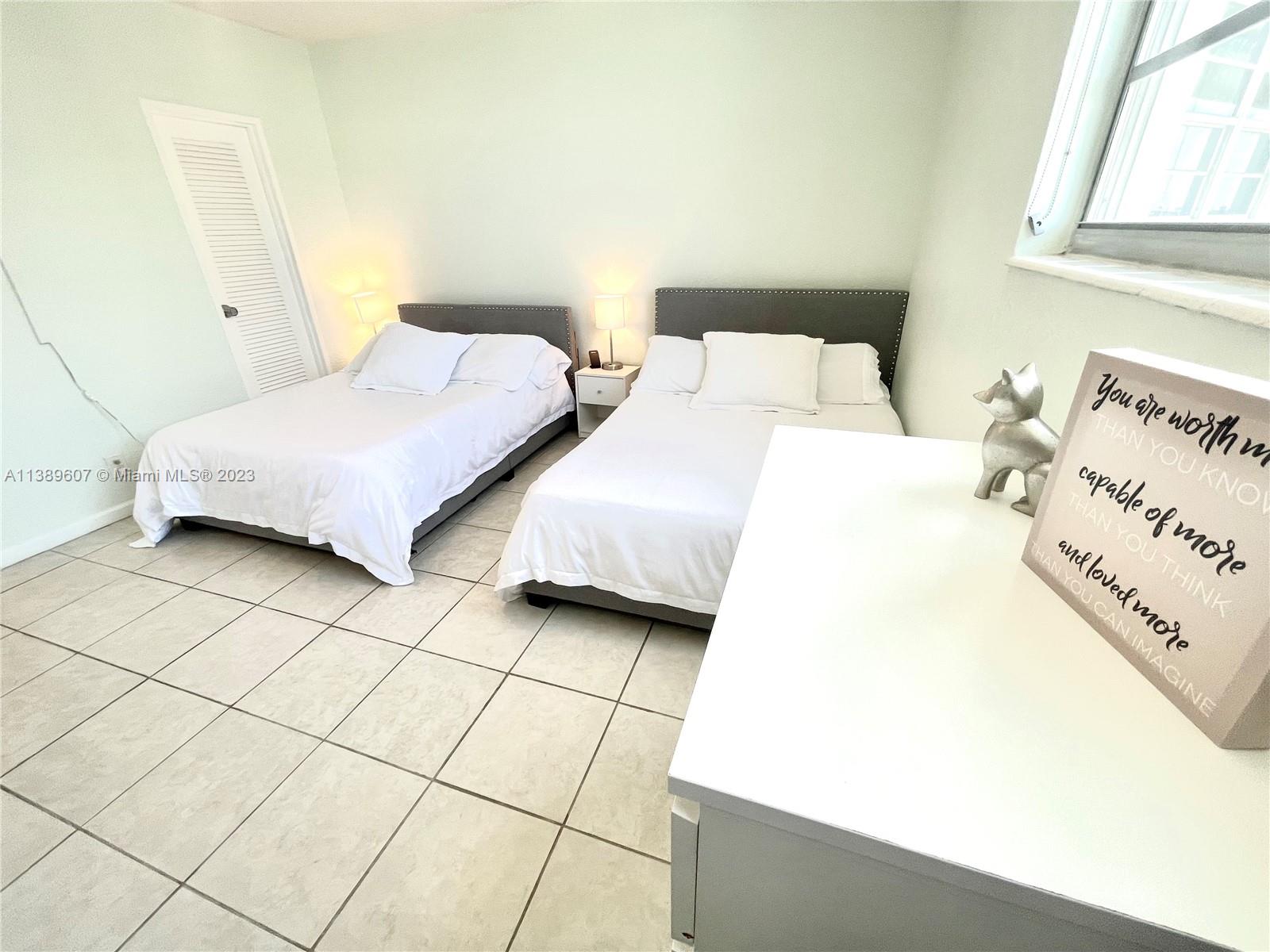 Beachfront building with fabulous amenities. Ocean views to right & city skyline to left. Allows Air B &B great income or use when you want. This 1/1 is large & fully furnished turn key. Tile throughout, hurricane patio door & glass balcony. Kitchen has quartz counters, subway tile backsplash, white cabinets & space for a kitchenette table. Toaster, coffee maker, pots/ pans and dishes come with. Bedroom has 2 beds + living room can be sleeper sofa, so a a total of 6 can sleep. Large walk in master closet + hall closet & linen closet. Flat ceilings/ no popcorn. Bathroom has tub & tile shower. Laundry on each floor- steps to this unit but no noise. Resort style pool, gym, game room, lobby, business center, valet parking. HOA fee includes cable, water & A/C. On beach close to shops & cafes