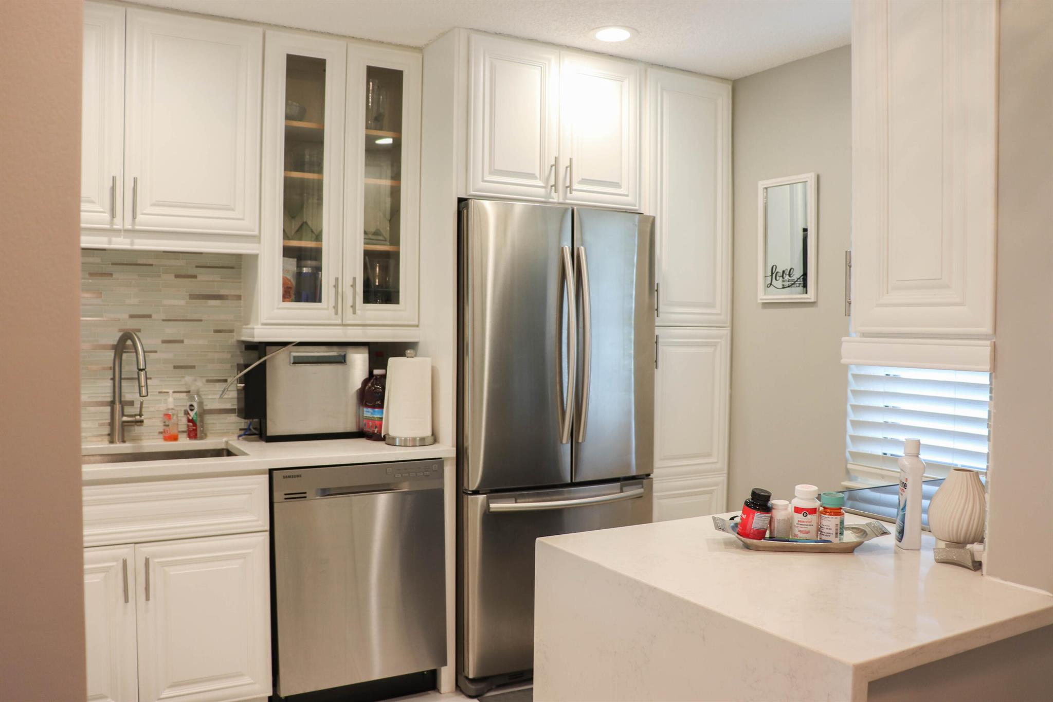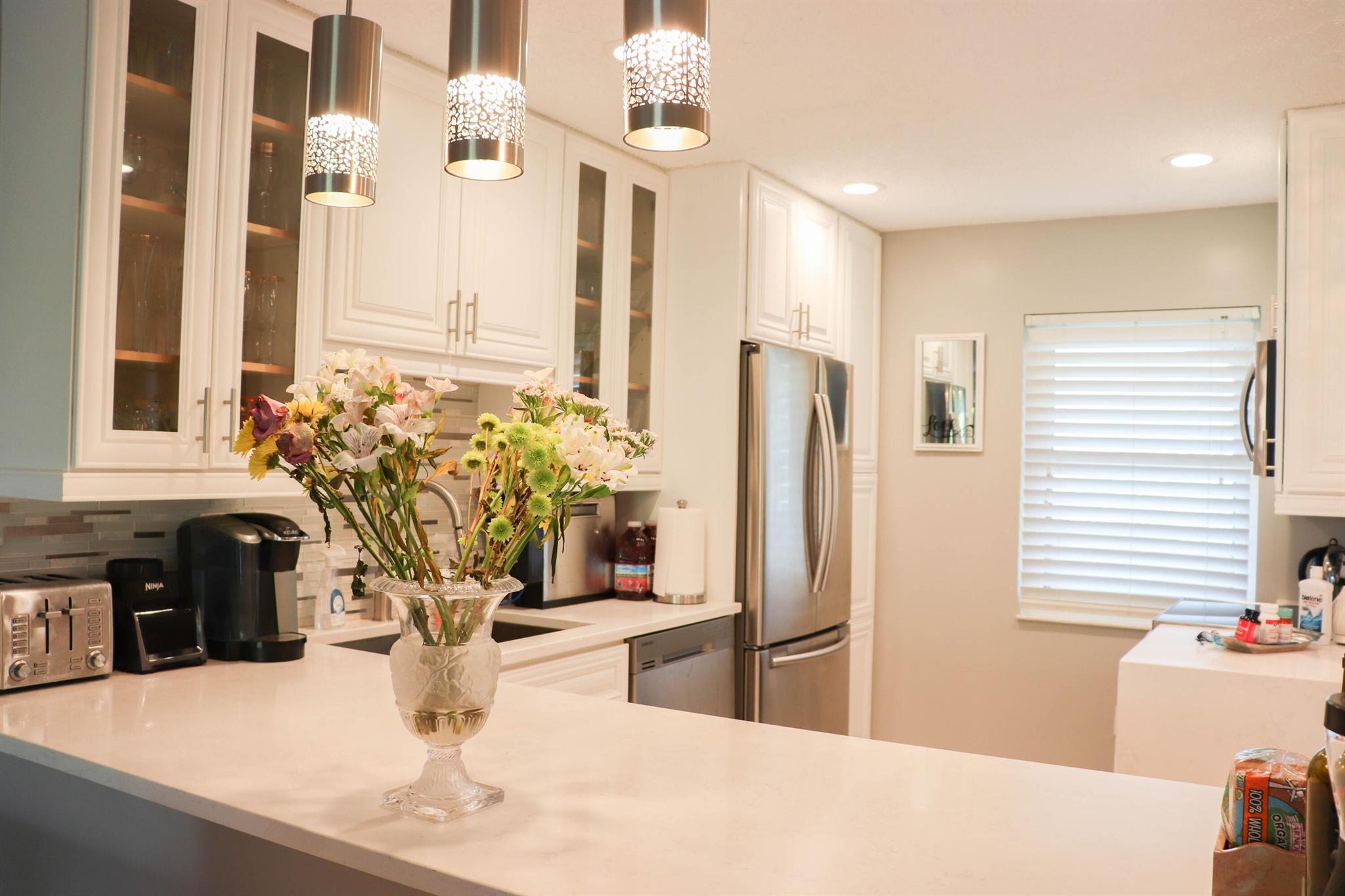 Tastefully remodeled 2/2, unit with an elevator overlooking the lake. new kitchen, bathrooms, wood floors and hurricane windows. (ex for the sliding door and the bathroom window.) This unit has a satellite pool practically and an interior laundry room. In addition, this building also allows one small pet. Gated with two clubhouses, lots of activities and centrally located to so everything. AC-2022 / WH is 9 YO