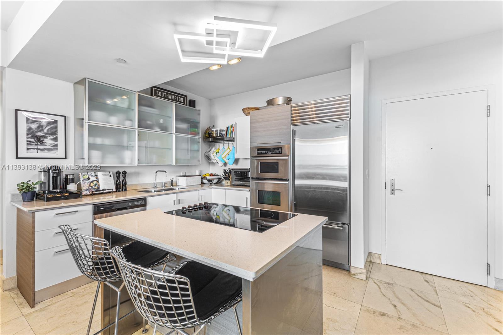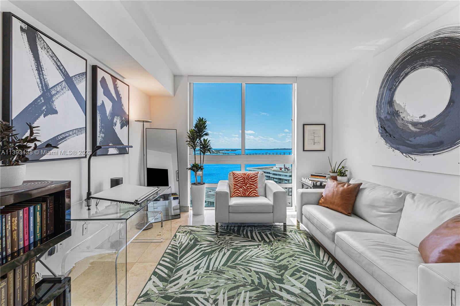 Elegantly updated 2 beds, 2.5 baths split floor plan, featuring ~1,300sqft with exclusive 11ft high ceilings and floor-to-ceiling windows throughout providing unobstructed water views! Tastefully redone half bath, new built-ins and flooring in the walk-in closet, high-end automatic shades, modern light fixtures with dimming capability, new cabinetry in the laundry room, and a new stove top in the kitchen. The bright and airy kitchen has double ovens, sub-zero fridge, and a cooking island. Unwind as you walk into your spacious master bedroom with direct access to the balcony. Located in the upscale Emerald building with a rooftop pool and jacuzzi, 24 hour front desk and security, valet, a fully equipped gym, and much more. In the heart of Brickell!