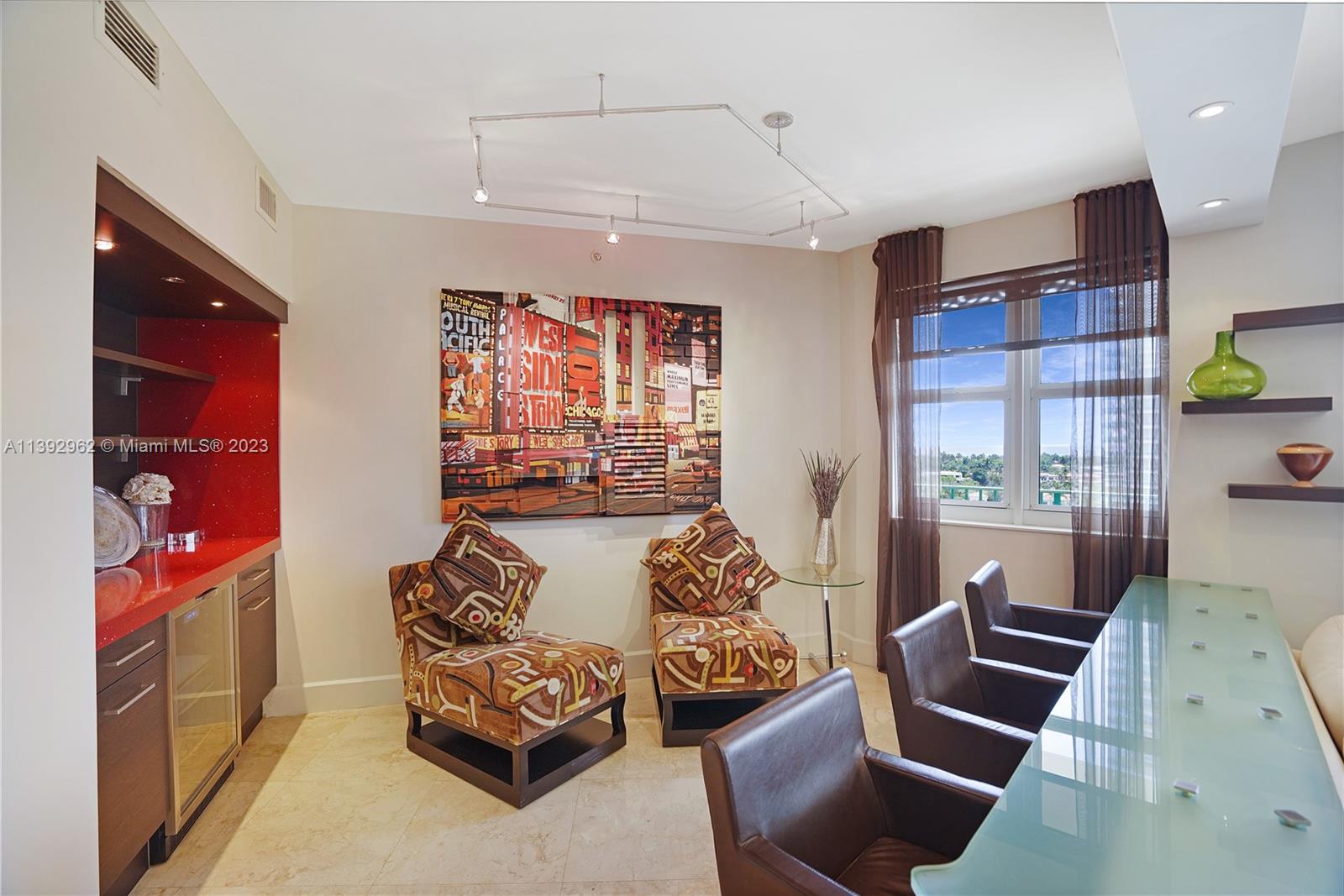 **REDUCED**Looking for a an *OCEAN and INTRACOASTAL* view AND professionally decorated 2/3 condo in Aventura? This 10th floor Turnberry Village N unit has the WOW factor upon entering, has an open concept, split bedrooms, and two family rooms... which is perfect for entertaining!... One living area has a built-in bar area w/ gorgeous granite including a wine cooler. Unit has all hardwood and marble flooring, magnificent decorator designed built-ins for the added touch of this beautiful home creating an ambiance of timeless elegance. Extra perks are the newer A/C (2023), water heater (2021), washer/dryer (2021) and a brand new microwave! Building amenities parallel w/ a hotel resort, including 24/7 concierge & security, infinity pool, jacuzzi, billiard room children's park, & so much more!