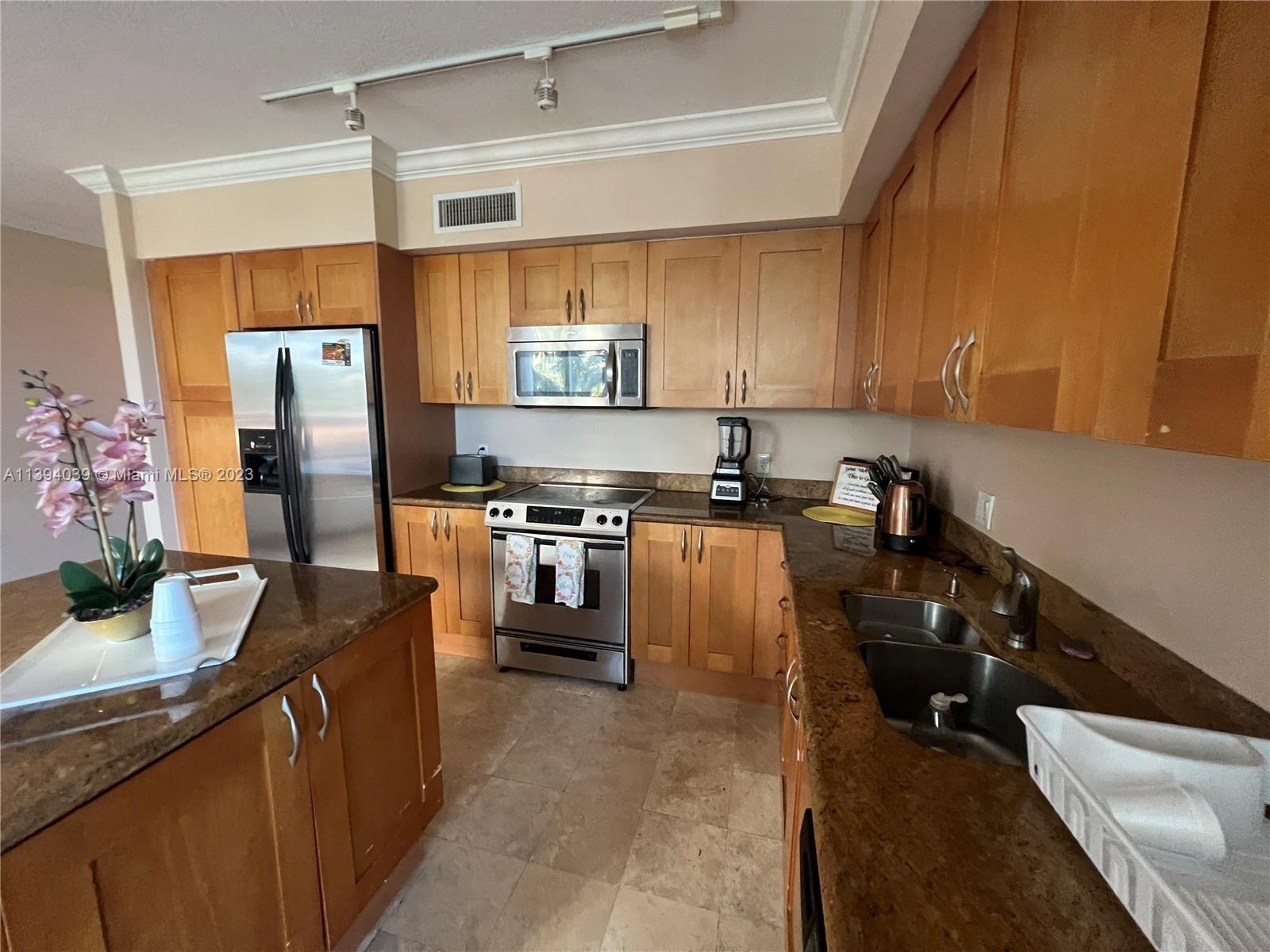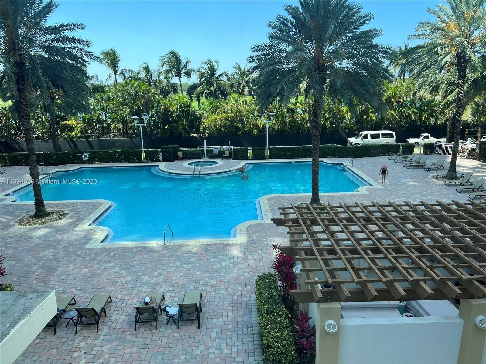 Beautiful unit overlooking the golf greens and the pool. This is a 3 bed 2bath unit. Kitchen with stainless steel appliances and granite countertop. Washer and dryer inside the unit . 24 hour security. Great amenities, gym, spa, billiard room, heated pool, tennis court and steam room. One parking space in the garage, second space with valet, charging station for electric cars. HOA includes cable, water, internet and Total Appliances Service. Walk to the grocery stores, restaurants and shops. Short drive to the Gulfstream park and Aventura Mall.