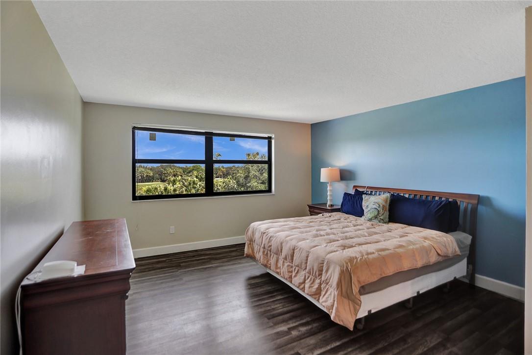 This 2 bed/2 bath renovated condo is in a prime location. Brand New roof and hurricane impact glass windows & doors. The kitchen is equipped with stainless steel appliances, granite countertops, and ample storage space. You'll be greeted by an expansive living area with sliding glass doors to a balcony overlooking the golf course with a water view. This unit has another section for entertaining, complete with cabinets, countertop space, a wet bar & sink. The primary bedroom is spacious and the bathroom has dual sinks as well as a spacious shower & tub. This unit comes with a host of amenities: clubhouse, 2 pools, bowling alley, tennis, racquet ball & pickleball. Assoc. requires 700 credit score. Included - cable, water and basic internet. First year no rentals.