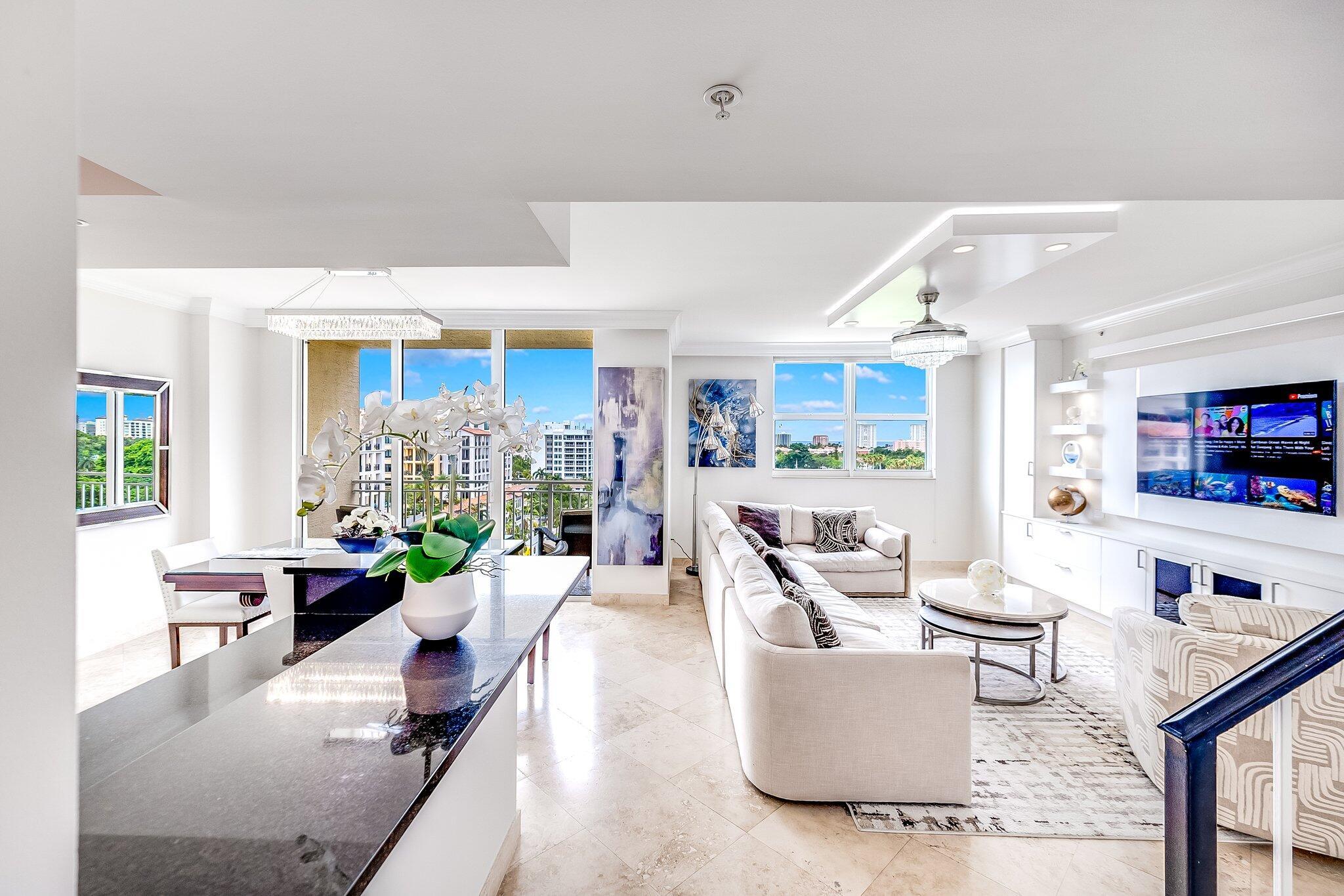 Amazing 2-Level Penthouse with direct Ocean and Golf Course views in the heart of downtown Boca Raton! This condominium is within walking distance to downtown Boca amenities including; many shops and restaurants located in Mizner Park, Palmetto Place, The Boca Raton Resort and the ocean. Live amidst the best of downtown Boca has to offer.This spectacular penthouse unit has just been re/imagined and is being offered furnished, completely turn-key, just unpack your bags and move in!