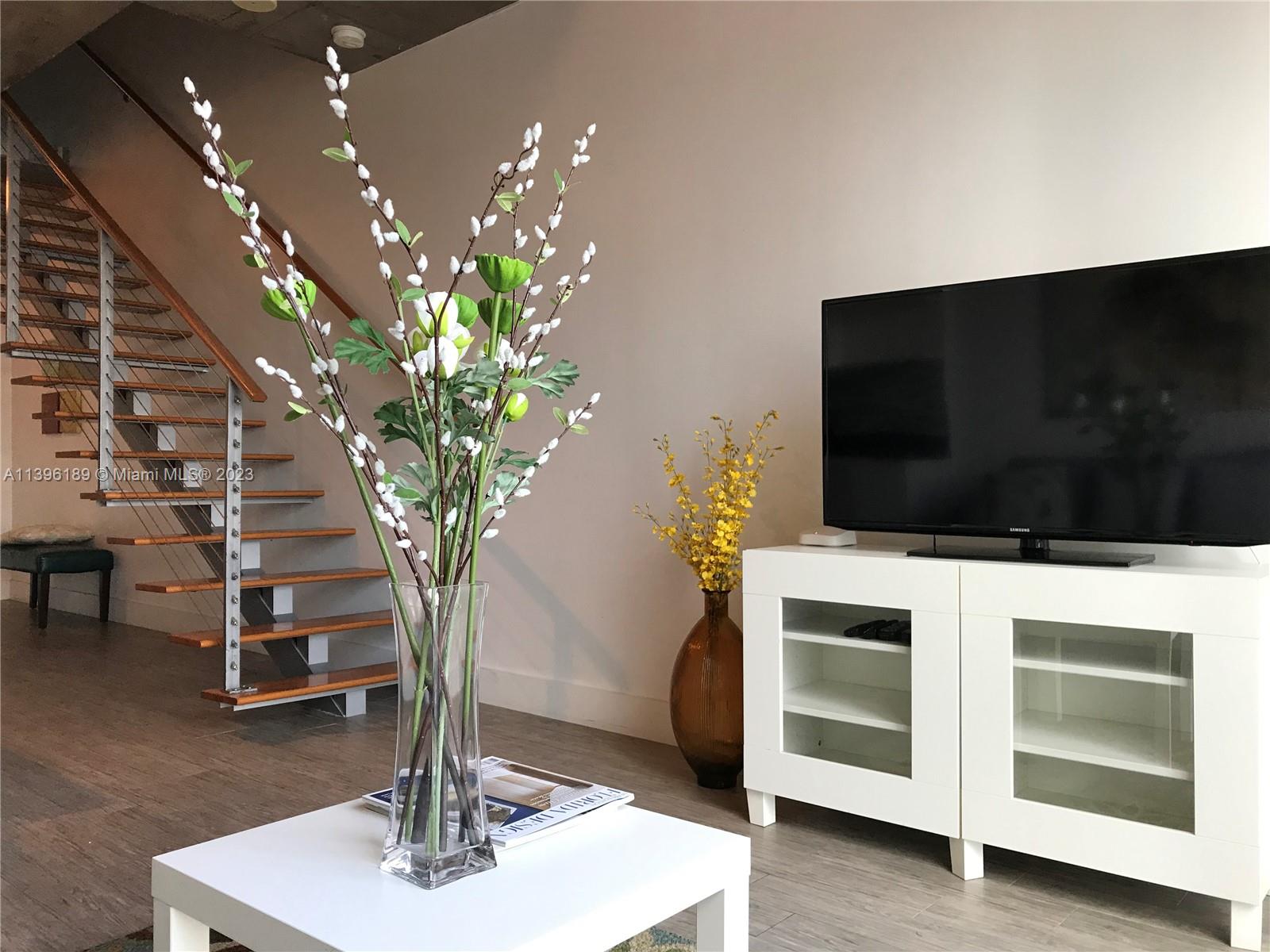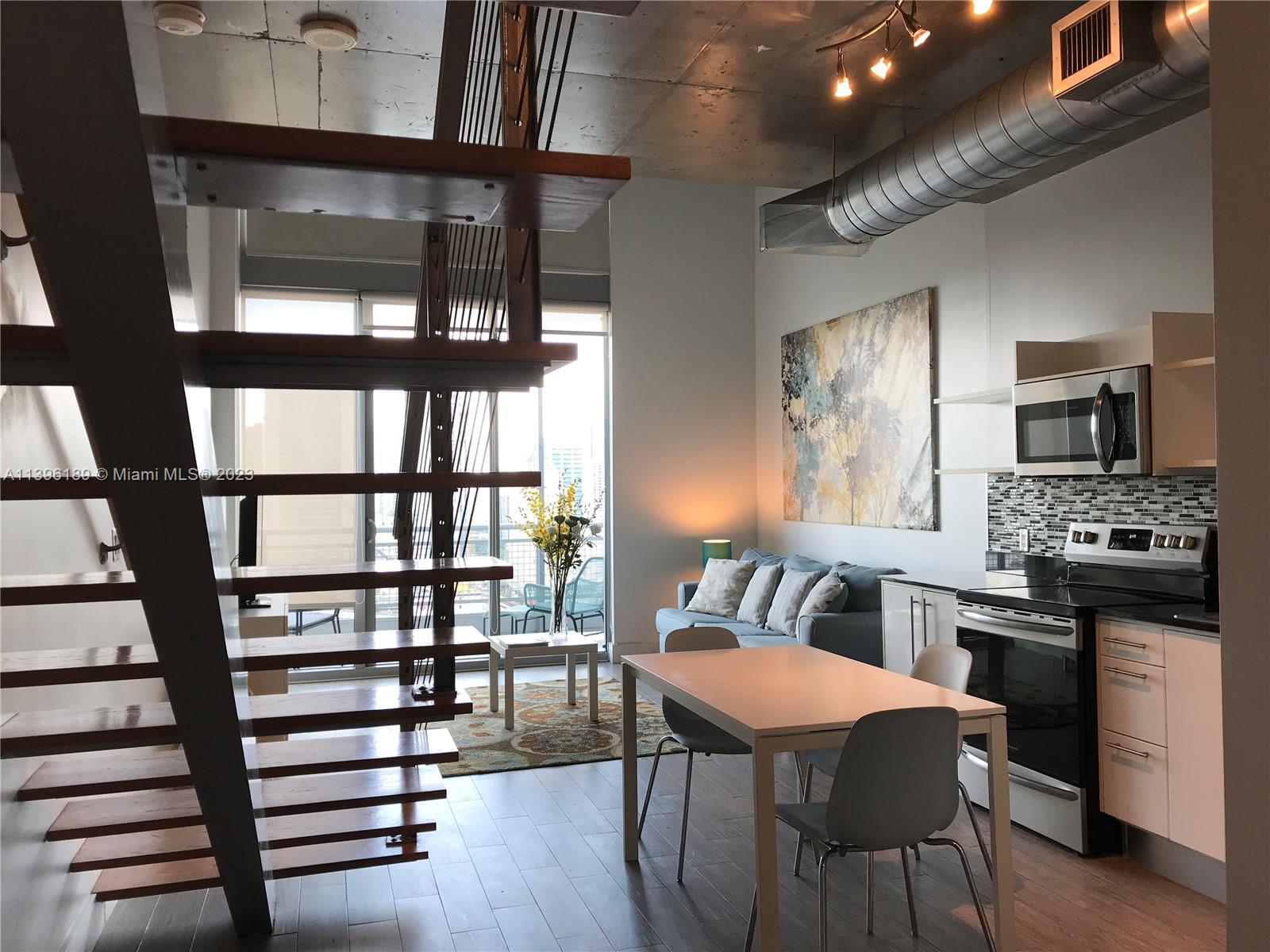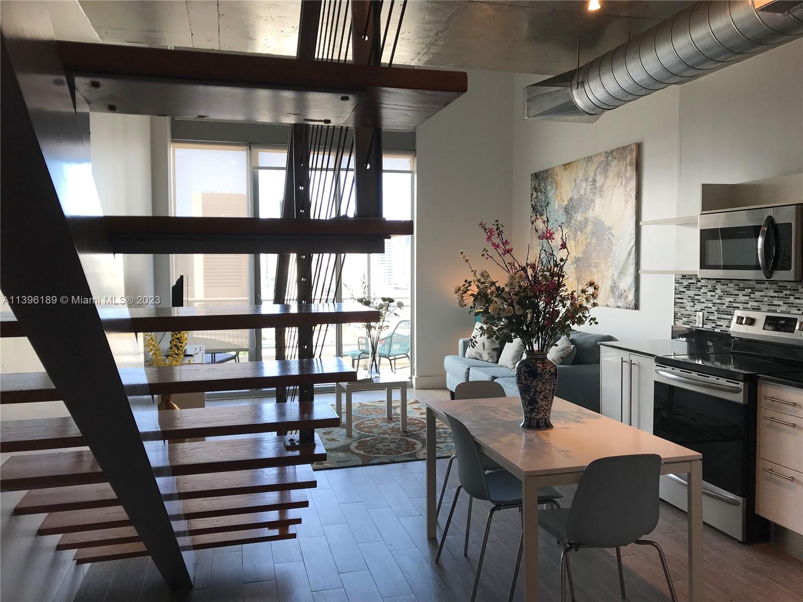 Two story loft features 20' floor to ceiling windows, floating staircase, 2 private balconies, open kitchen, newer SS appliances, 2 bed, 2 baths + half bath, beautiful floors throughout, 2021 new A/C, beautiful views of the City and Miami River. South after C-Unit runs width of the building to maximize space, plenty of natural light in both North and South views. Life at Neo Vertika offers riverfront dining, infinity pool, Jacuzzi, fully equipped fitness center, party room, racquetball and basketball court, boxing area, parlor room, dog park, 24-hour Concierge and valet for visitors, walking distance to Mark Brickell Village and Brickell City Center.