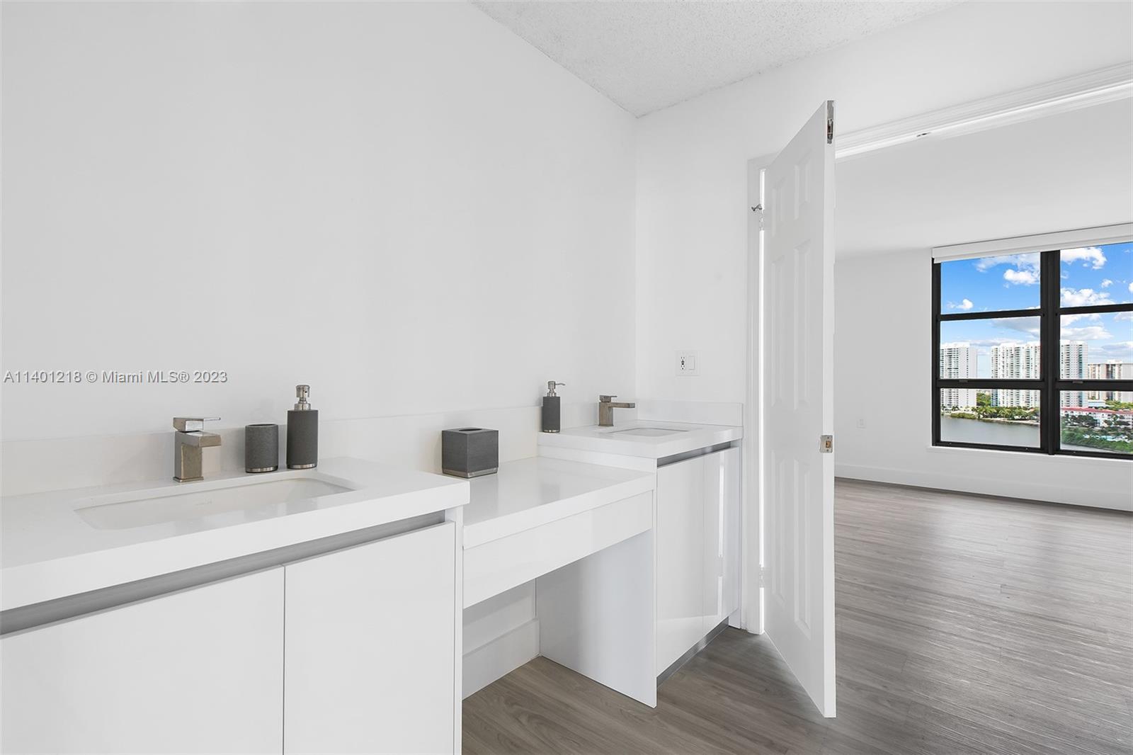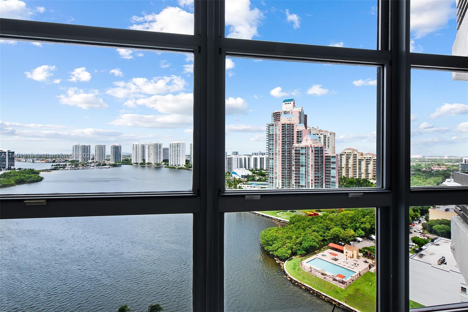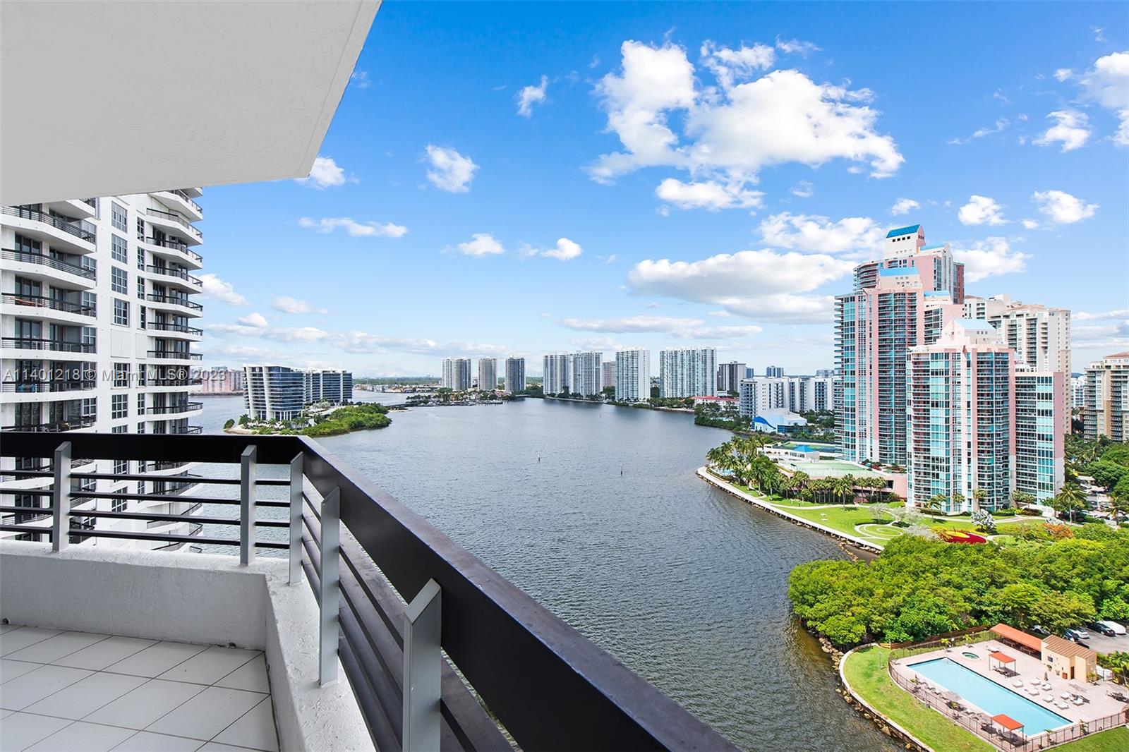 The Best 2 bedroom floor plan in the building MOVE IN READY (over 1,361 sqf | Split floor plan bedrooms) "05" line Corner unit with oversized terrace and DIRECT WATER VIEWS. Upgrades include Hurricane Shutters, Electric / remote window treatments in both bedrooms, ,Remodeled with New floors brand New appliances, NEW A/C unit. Resort lifestyle swimming pool, state of the art gym, Tennis & Basketball courts, playground, onsite restaurant & convenience store, valet parking and 24 hour Gated security. Great location with a 5 min drive to the beach or Aventura Mall.