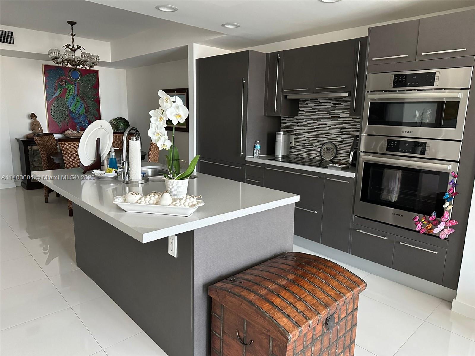 One bedroom with a DEN and two full bathrooms, offering ample living space. The interior features porcelain tiles and a high-end kitchen with beautifully crafted European cabinets and Bosch appliances. With a 9" ceiling, 1 assigned parking space, washer and dryer. Restaurants and retail on the ground floor of the building, surrounded by various local businesses and conveniently connected to public transportation. Please read Brokers Remarks.