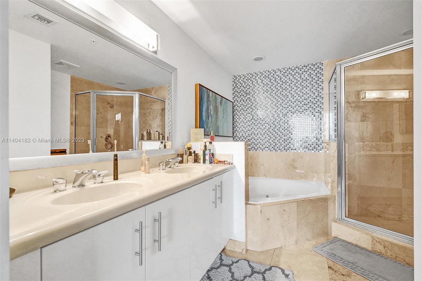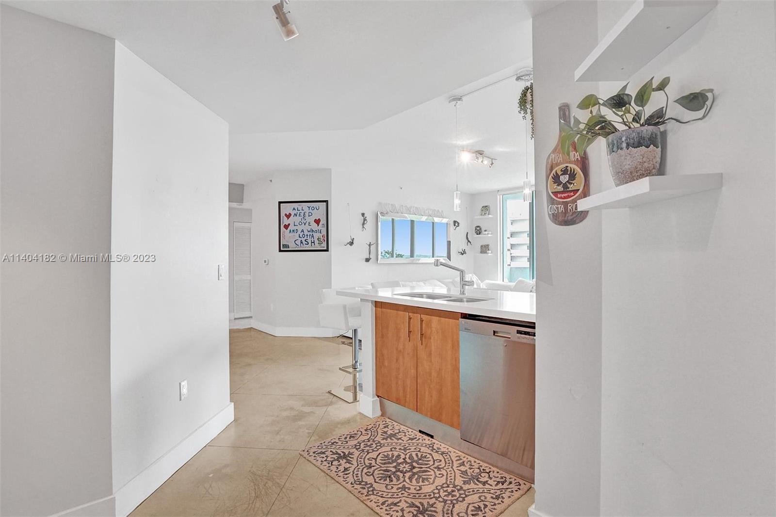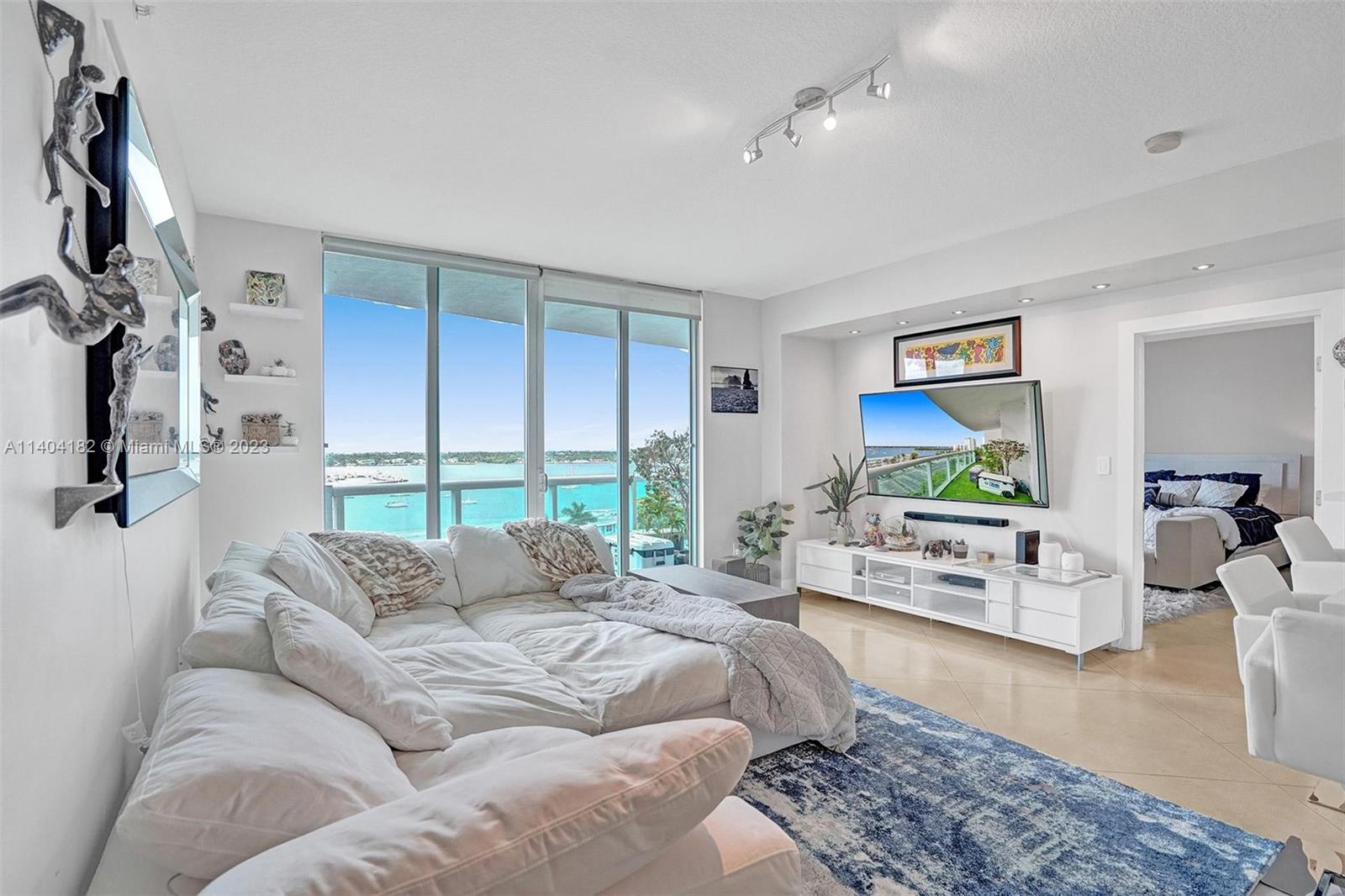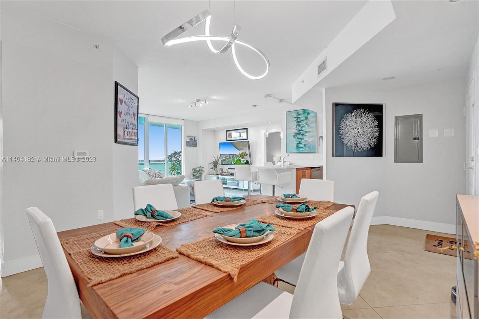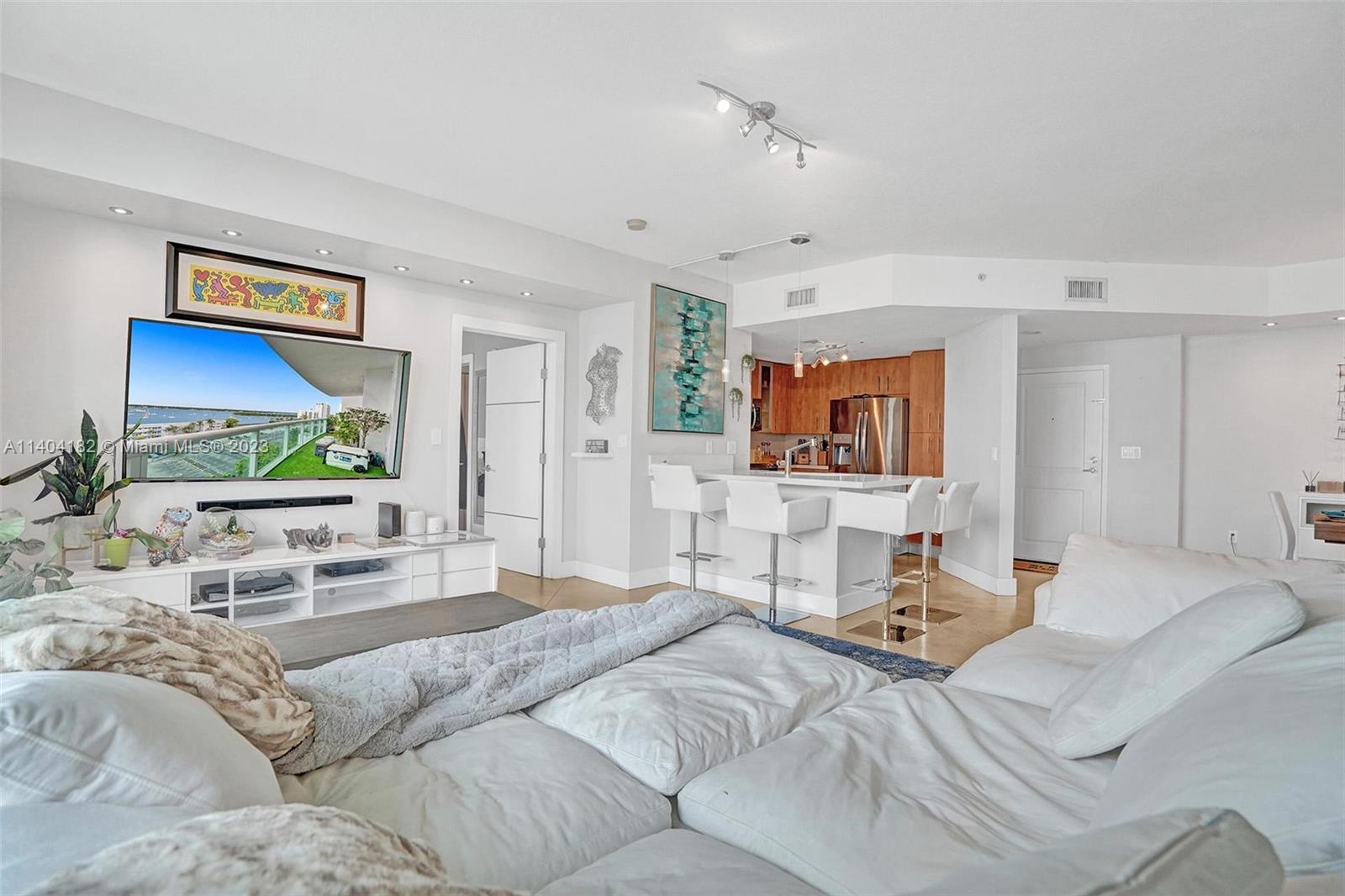Luxurious condo at 360 Condominium! This unit has been beautifully renovated & features quartz countertops in the kitchen, stainless steel appls, polished concrete & marble flooring, roller shades/blackouts (remote shades in living room), custom solid wood doors w/stainless steel inserts, built out master bed closet & designer lighting throughout. The floor plan was reconfigured to make a larger living room. The floor to ceiling windows/sliding doors open up to an expansive balcony offering beautiful views of the bay and downtown Miami. 360 Condo is a private & gated community that offers 24hr sec.,concierge, marina, free valet, electric vehicle charging stations, two pools, sauna and gym. (Floor plan is 1,340 interior SF, public records show 1,251 incorrectly) (AGENTS: see Broker remarks)