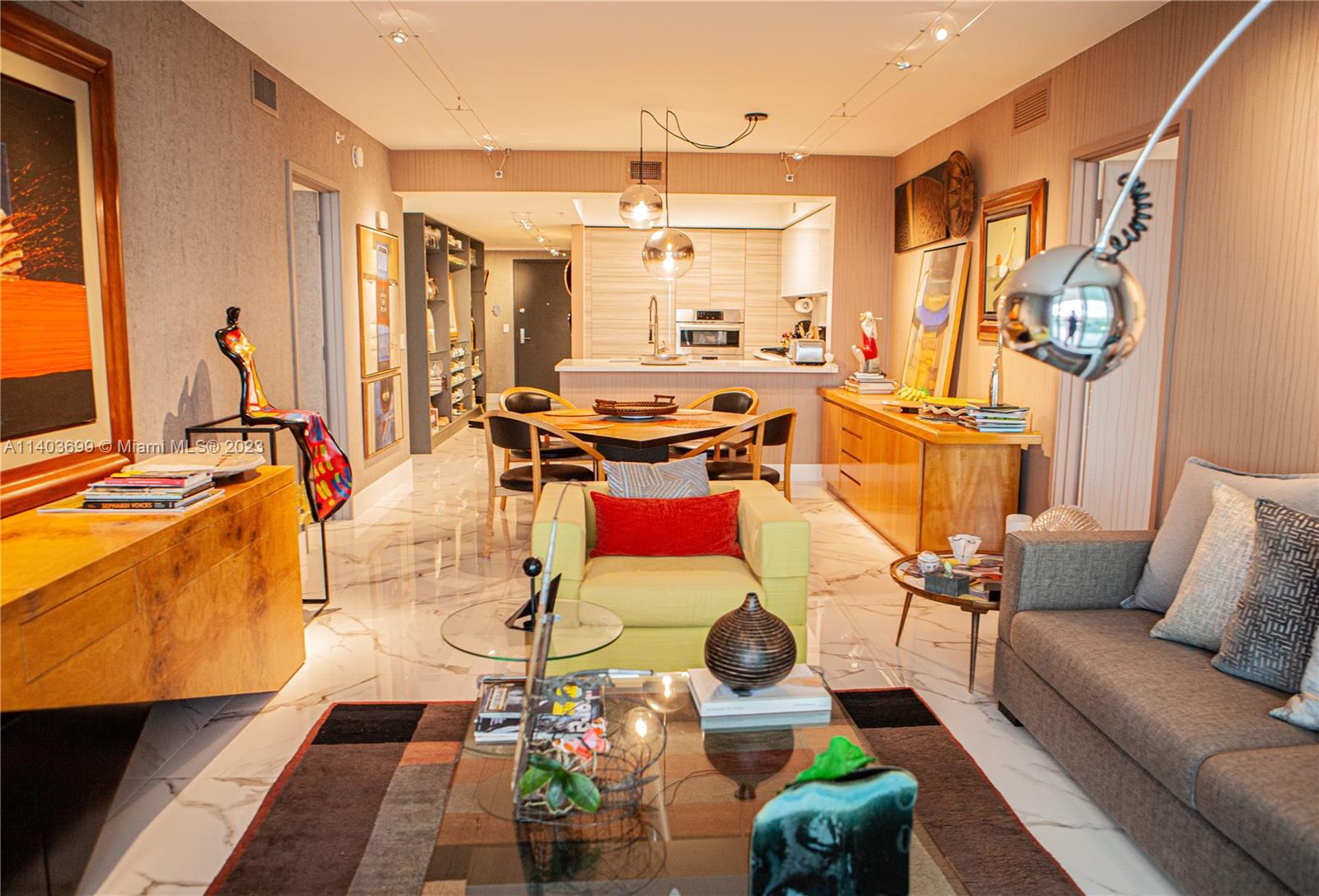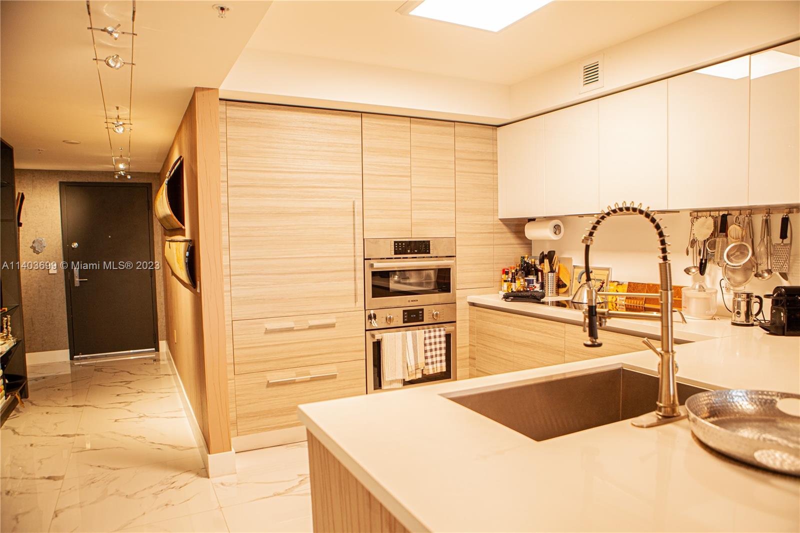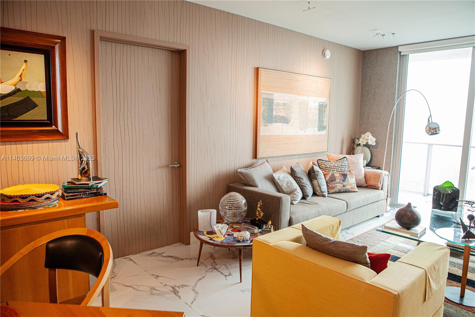 MUST SEE! Designer decorated unit (art and furniture negotiable) with an open floor plan. Featuring 3 suites, lush 24x24 veined white Italian tiles throughout, modern kitchen with BOSCH appliances and Italian cabinetry, exquisite living and dining room, Southern exposure brings in tons of natural light with floor to ceiling impact resistant balcony doors, an incredible 180-degree view from the balcony where you can watch sunrise to the east as you overlook the Atlantic Ocean and see the sunset over the Intracoastal waterways & Oleta River State Park. One self-parking space + one valet spot. Infiniti edge pool, hot jacuzzi, fitness center, cinema and game rooms, kids room, and much more. 24/7 front door, security, and valet parking. 0.3 miles walk to the beach. 10min to Aventura Mall.