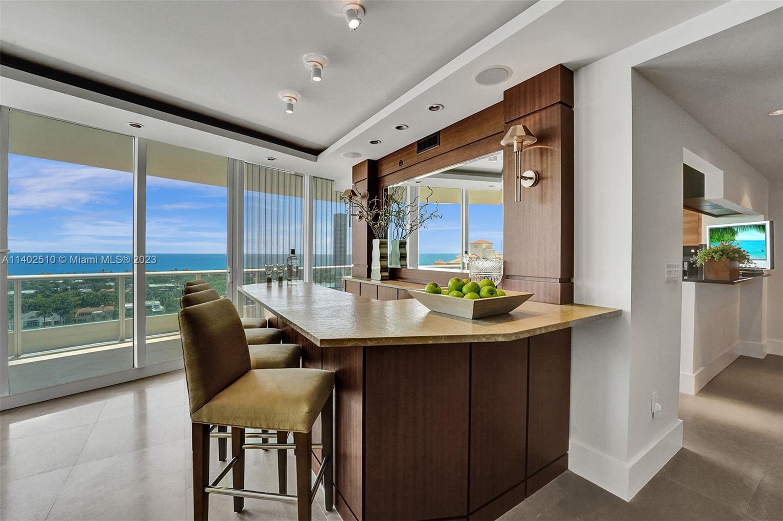Stunning and meticulous, this unit offers sweeping views of the Atlantic Ocean, Intracoastal, and Golden Beach. Views with Personality. Limestone floors lead the way to a split floor plan. Beautiful built-ins and a bar complete the living room and dining room areas. The oversized terraces are like having a second living room outdoors. This unit has been finished with the chicest of tastes, from the wallpaper to the paint to the window dressing; it's timeless in design. Living in this beautiful home wouldn't be complete without the amenities Porto Vita has become famous for. You never hear a NO. Whatever your desires are, you are looked after and taken care of. Tennis, Pickleball, swim classes, and a world-class restaurant are just some of the perks you have living here.