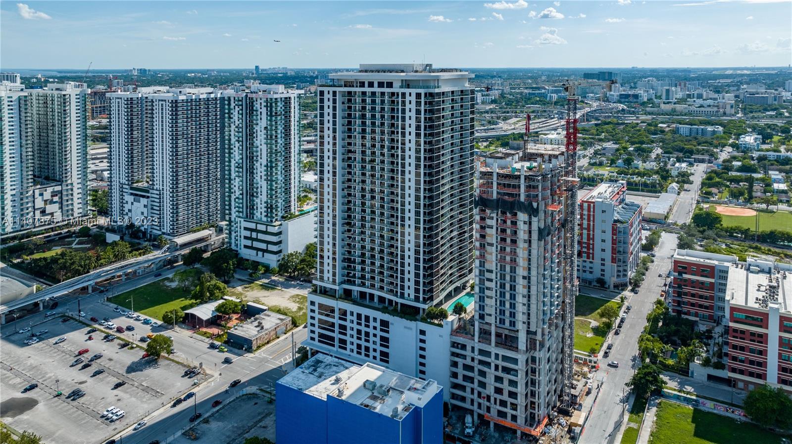 Spectacular breathtaking view from the South East Penthouse at the Canvas Condominium, view also soon to include MWC and Miami's future Signature Bridge. Modern 2 bed 2 bath unit with southern exposure and great natural light. Building was completed late 2018, featuring state of the art amenities - 3 pools, state of the art gym, racket ball, dry sauna, yoga room, business center, club room and more. Property located at Wynwood gateway, just couple of blocks away from world famous Wynwood Walls, and the art and entertainment districts. HOA includes cable, internet, , and 1 assigned parking space.