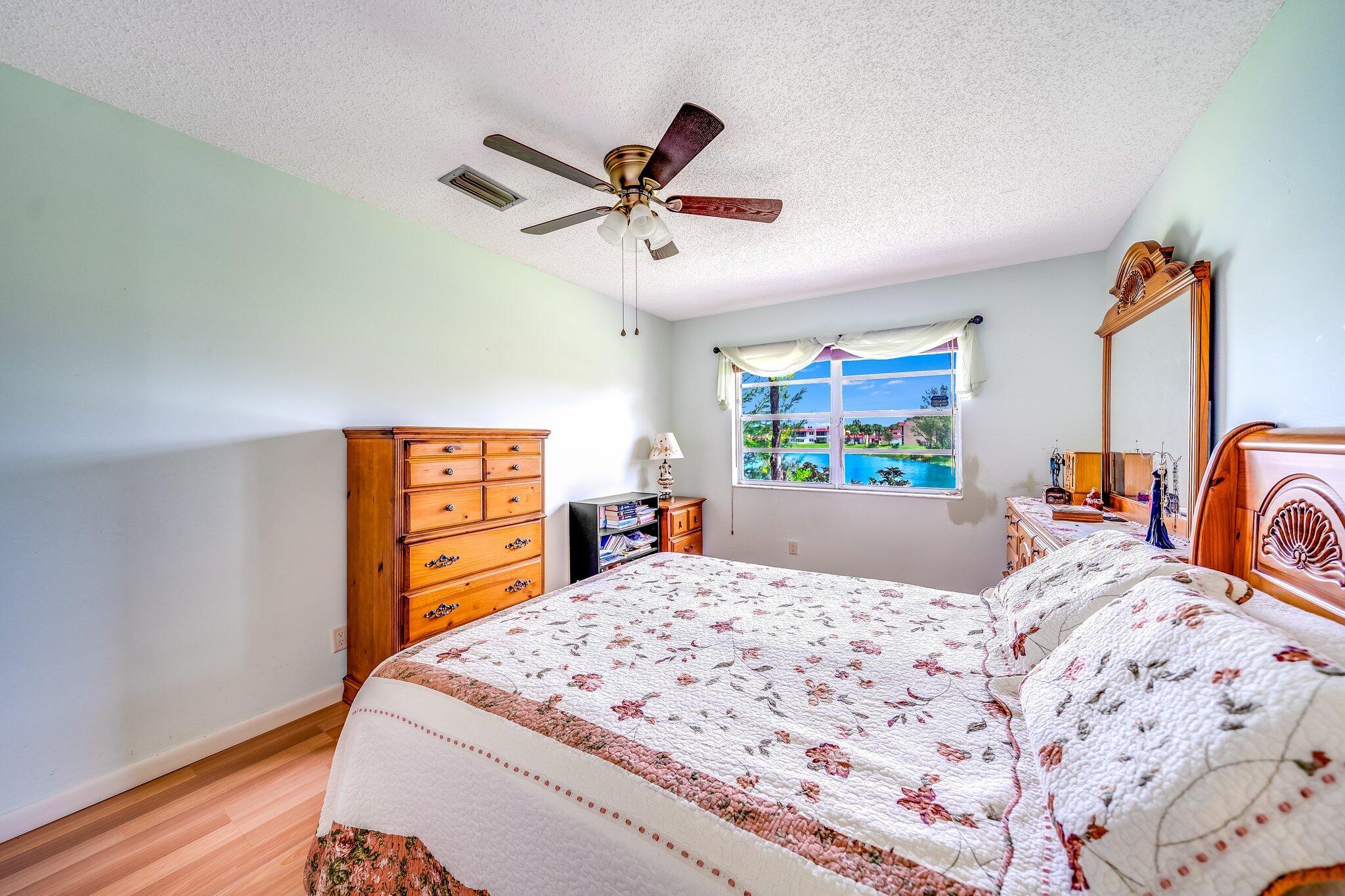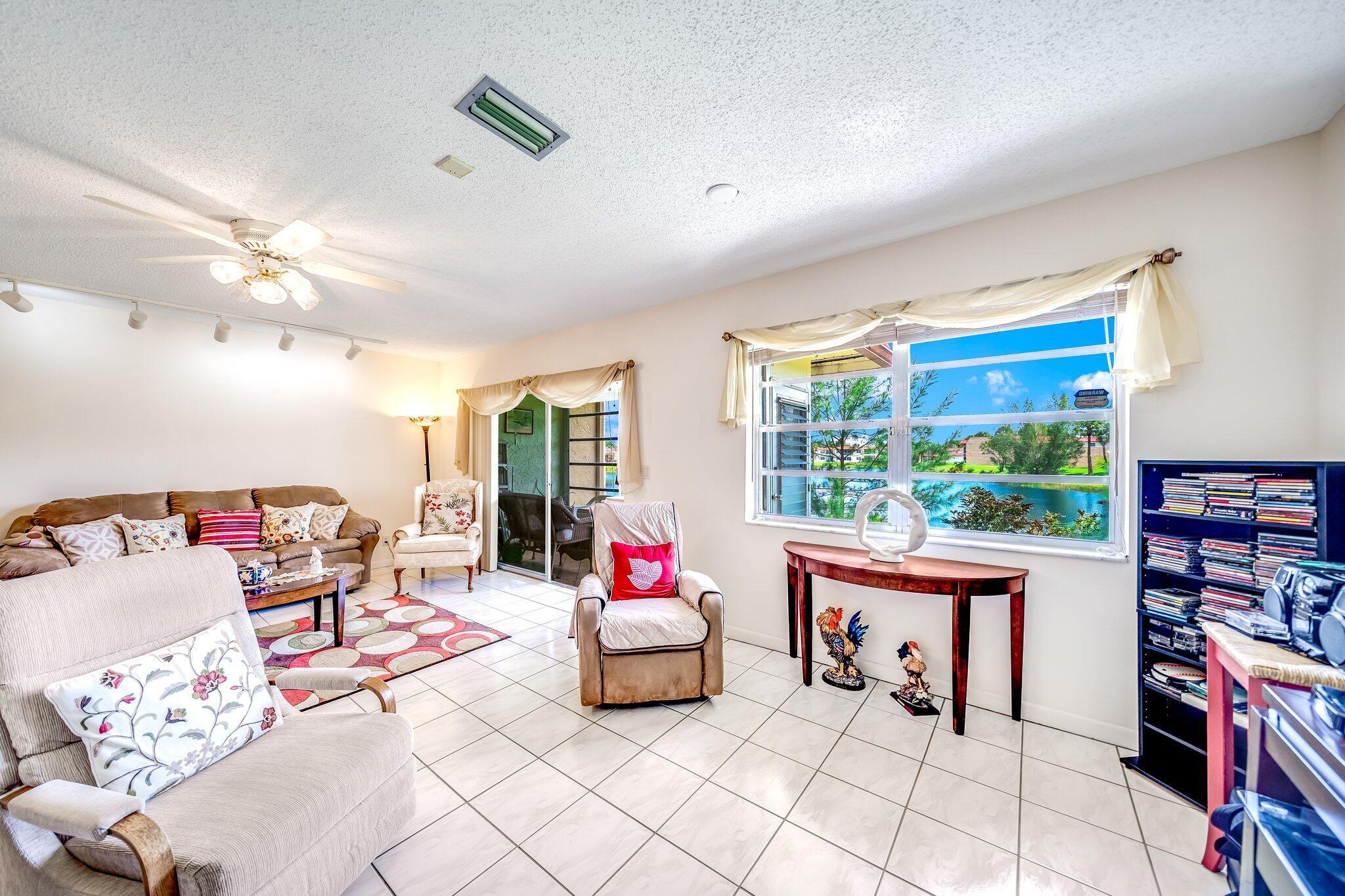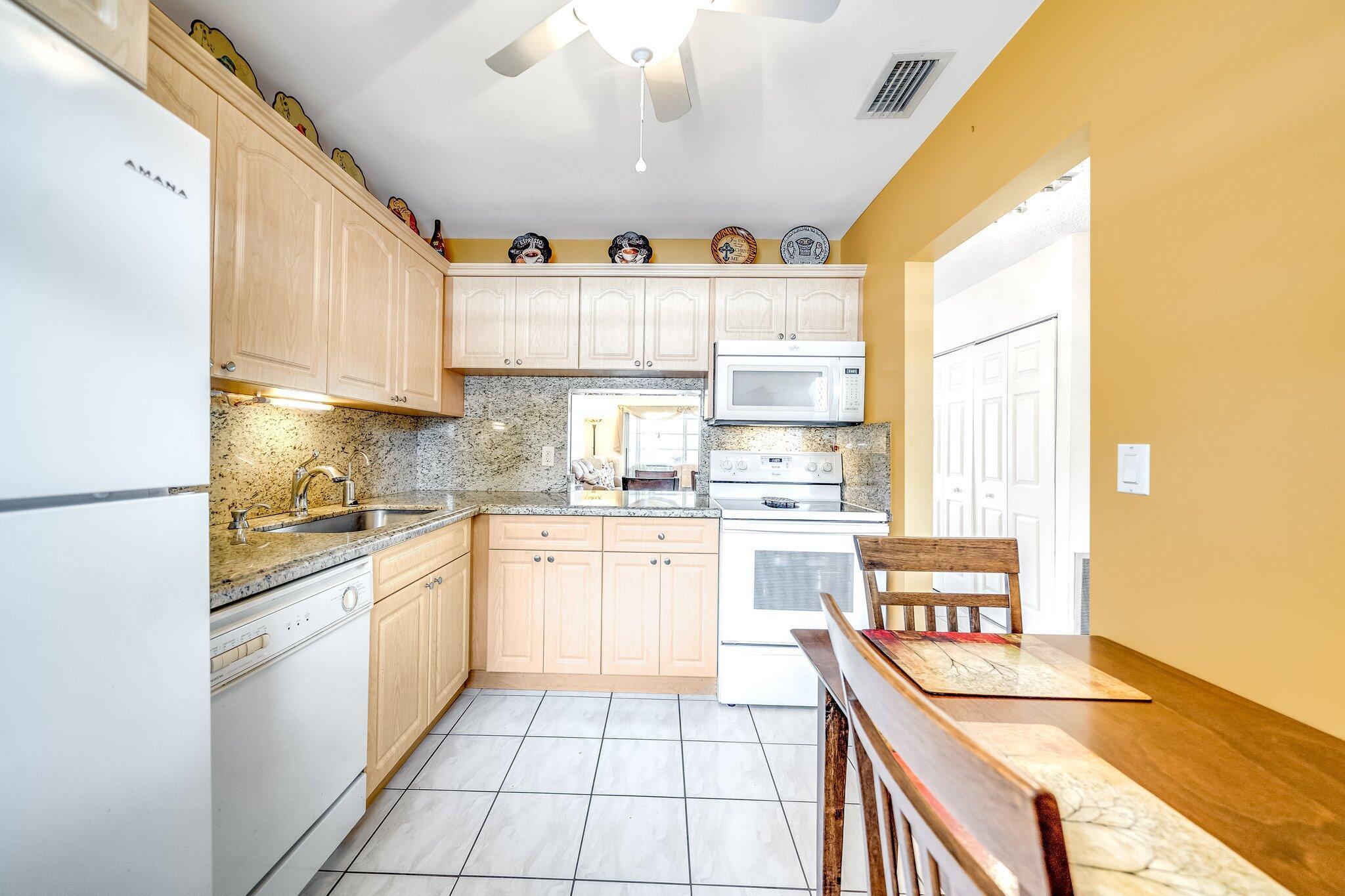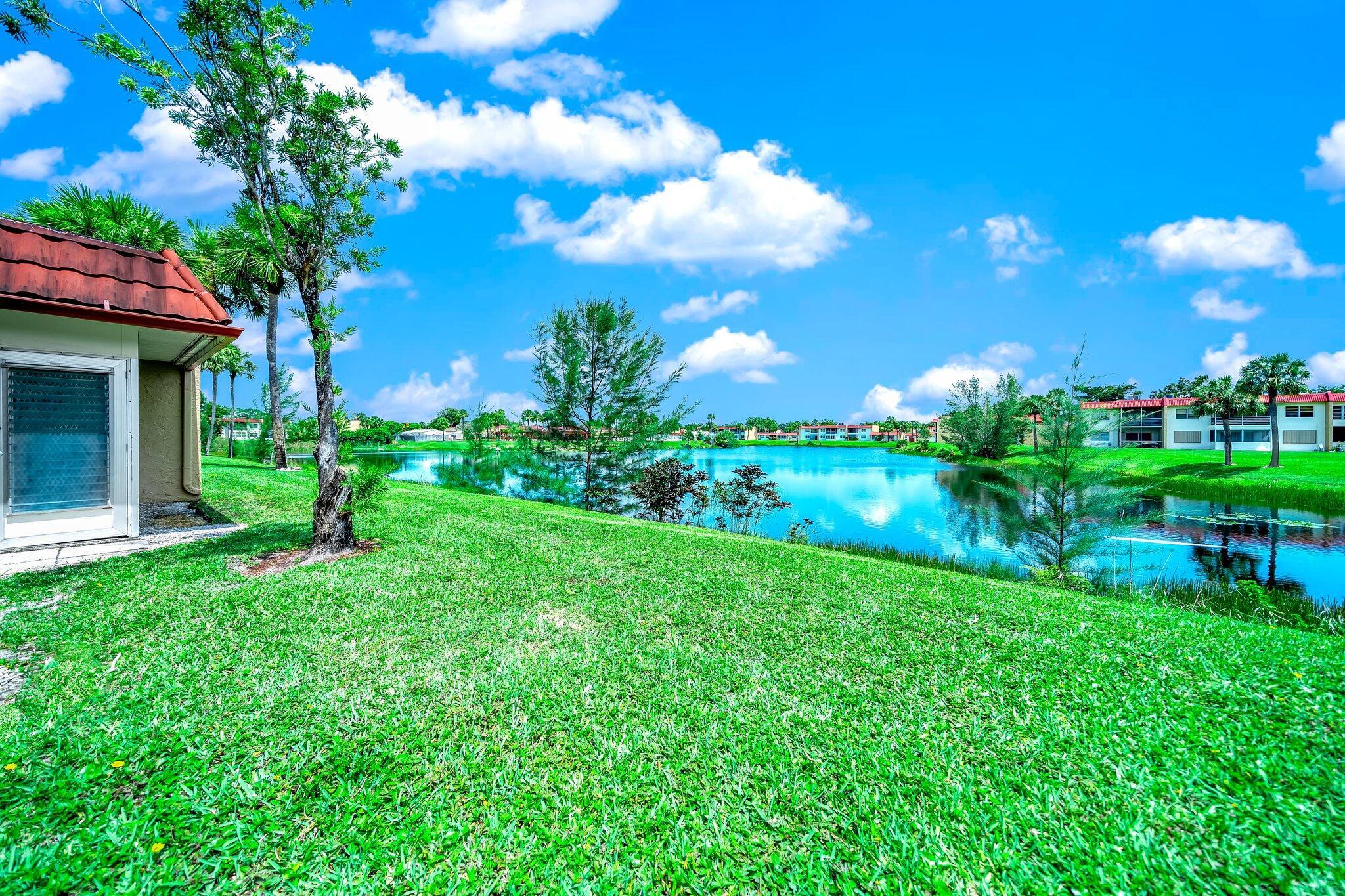 BEAUTIFUL CORNER, LAKEVIEW VILLA! RARE 3 BEDROOM UNIT WITH THE THIRD DEN/BEDRM OPEN TO LIVING ROOM. UPDATED KITCHEN WITH WOOD CABINETS AND GRANITE COUNTERTOPS, SPACIOUS BEDROOMS WITH PLENTY OF CLOSET SPACE. TILED THROUGHOUT EXCEPT FOR LAMINATE IN PRIMARY BEDROOM. TILED LANAI/PATIO WITH WONDERFUL LAKEVIEW! NEW 2023 AC AND WATER HEATER. WASHER AND DRYER IN UNIT. ACCORIAN SHUTTERS. GOLDEN LAKES IS A GATED 55+ COMMUNITY WITH MANY AMENITIES - 2 CLUBHOUSES, 14 HEATED POOLS, EXERCISE FACILITY, BILLIARDS, TENNIS. LOCATED CLOSE TO SHOPPING, RESTAURANTS & TURNPIKE! MUST SEE TO APPRECIATE!