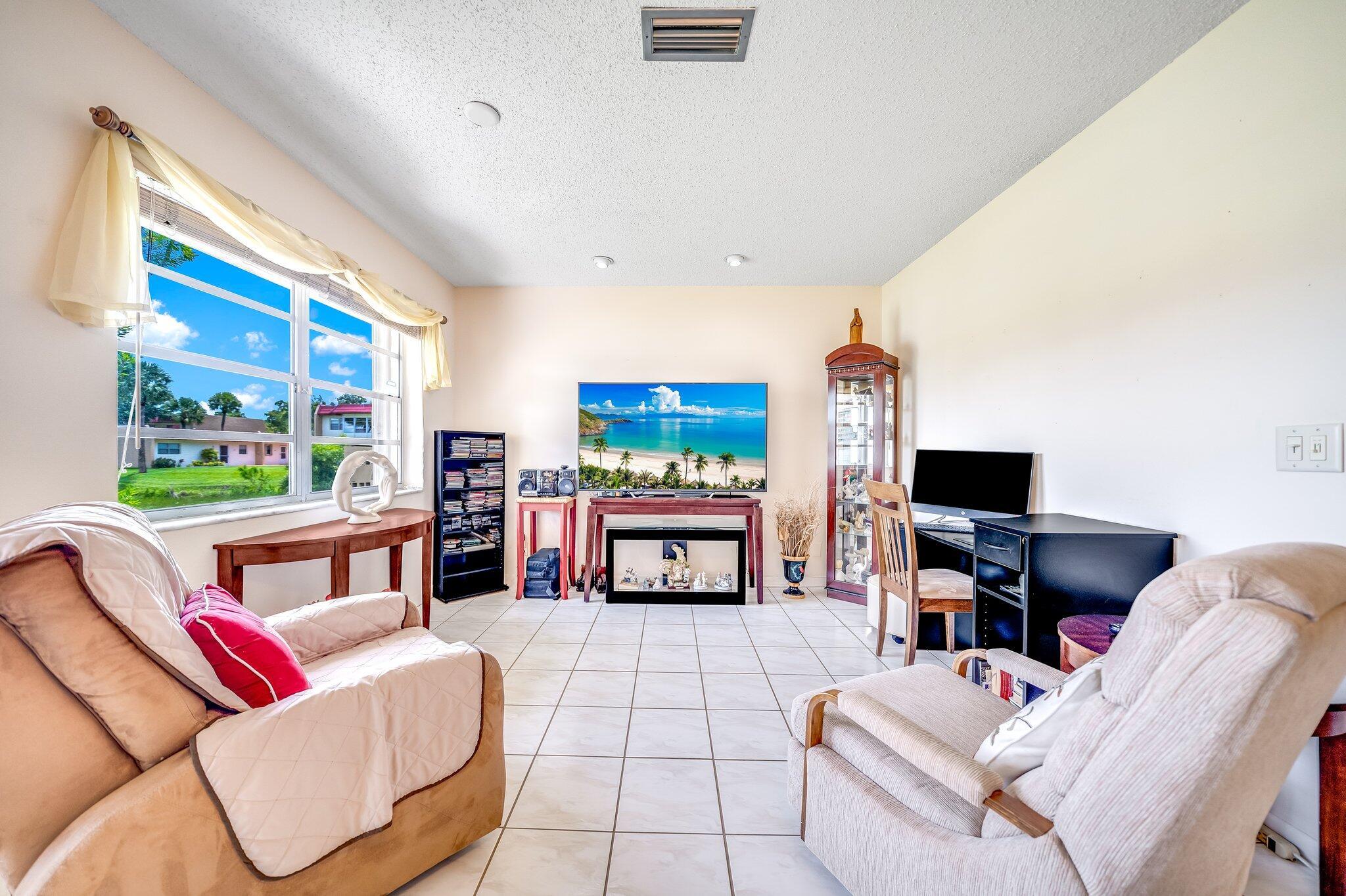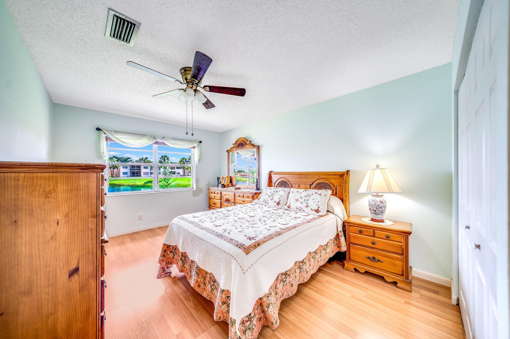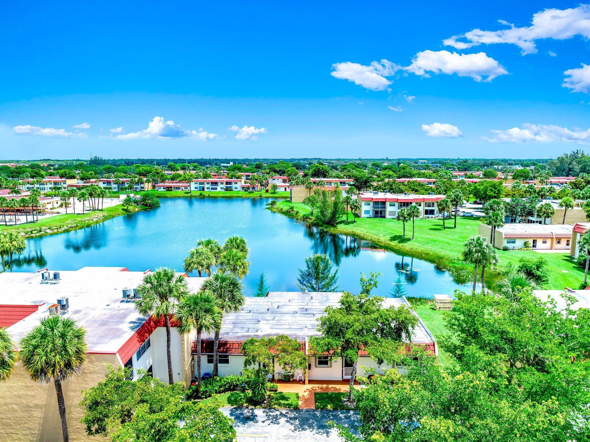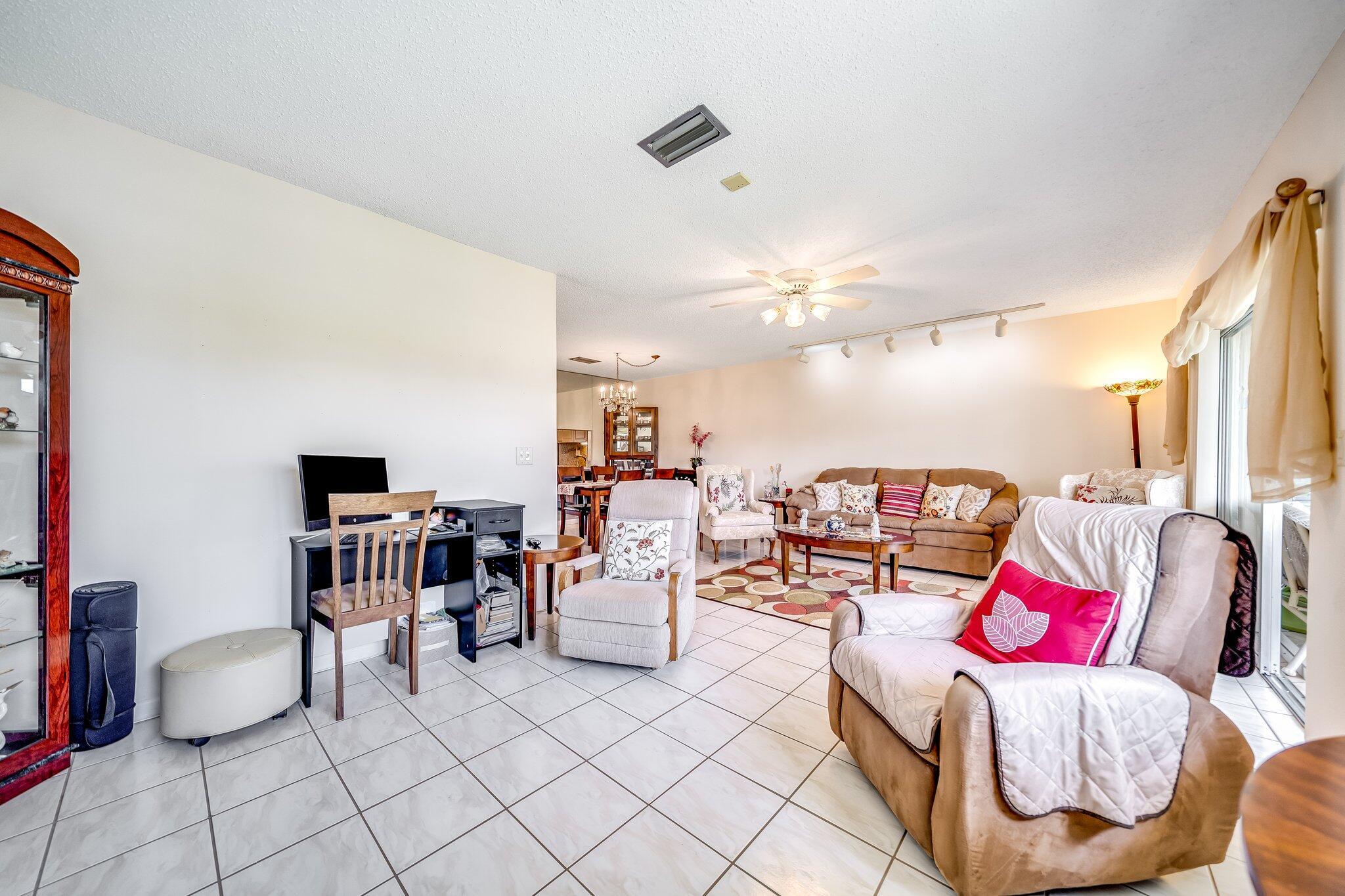BEAUTIFUL CORNER, LAKEVIEW VILLA! RARE 3 BEDROOM UNIT WITH THE THIRD DEN/BEDRM OPEN TO LIVING ROOM. UPDATED KITCHEN WITH WOOD CABINETS AND GRANITE COUNTERTOPS, SPACIOUS BEDROOMS WITH PLENTY OF CLOSET SPACE. TILED THROUGHOUT EXCEPT FOR LAMINATE IN PRIMARY BEDROOM. TILED LANAI/PATIO WITH WONDERFUL LAKEVIEW! NEW 2023 AC AND WATER HEATER. WASHER AND DRYER IN UNIT. ACCORIAN SHUTTERS. GOLDEN LAKES IS A GATED 55+ COMMUNITY WITH MANY AMENITIES - 2 CLUBHOUSES, 14 HEATED POOLS, EXERCISE FACILITY, BILLIARDS, TENNIS. LOCATED CLOSE TO SHOPPING, RESTAURANTS & TURNPIKE! MUST SEE TO APPRECIATE!