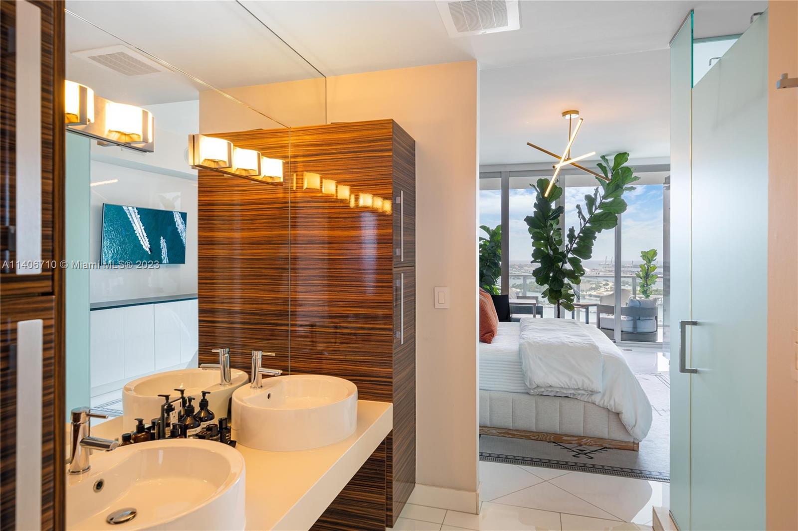 Experience sweeping waterfront views, impeccable design, and luxurious living at the exclusive Paramount Bay in Edgewater, Miami. Stunning two bedroom, two bathroom condo, on one of the highest floors in the building, offers unparalleled views of Biscayne Bay, Miami Beach, and beyond. Highlights include a spacious balcony, large enough to entertain for dinner parties, a beautiful primary suite with spa-like bathroom and walk-in closet, high-end appliances, and a private elevator, providing exclusive access to your foyer. Paramount Bay's resort-like amenities, designed by Lenny Kravitz, feature two pools, cabanas, BBQ area, pilates room, kids and teens rooms, party room, library, and a 5000 sq ft state-of-the-art spa/fitness center. Live the waterfront lifestyle at its finest!