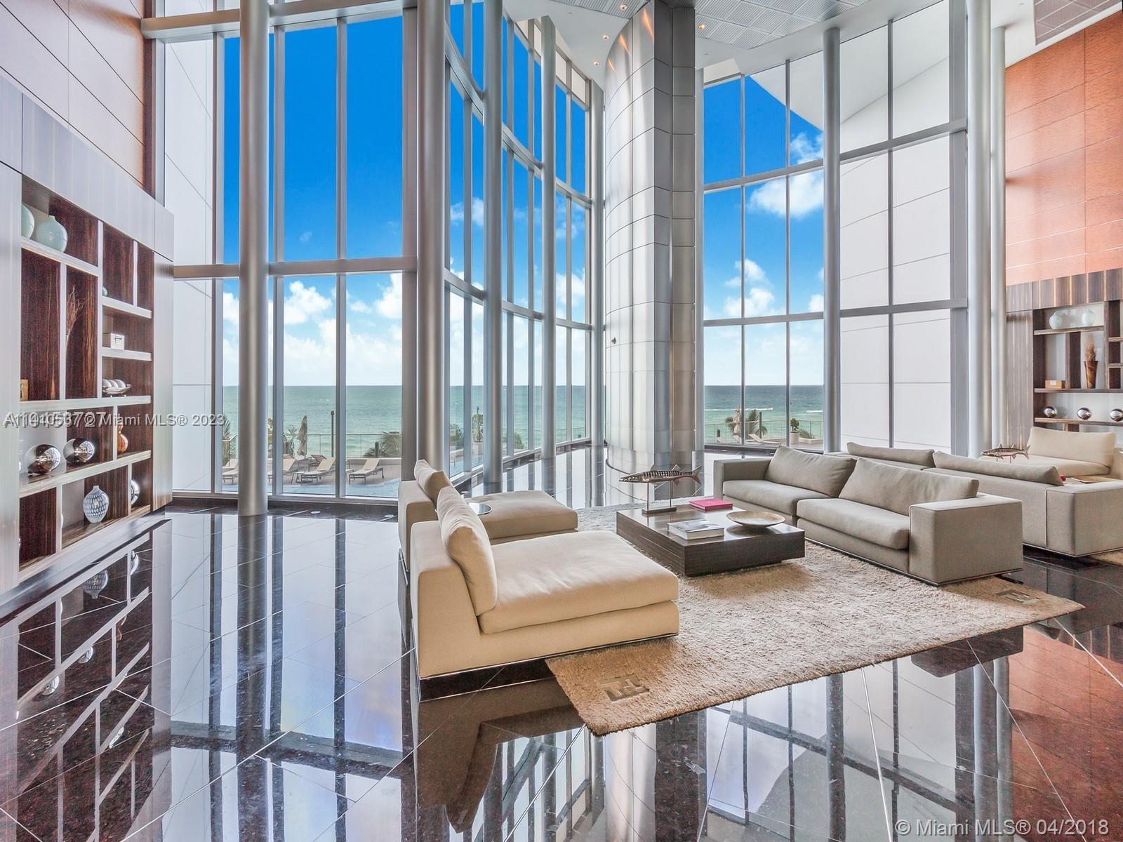 Private elevator leads you to a unique high-end completely remodeled two level Beach front 4BR + maid's quarters/ 5.5BA (4,141SF) penthouse with soaring 22' ceilings. Floor-to-ceiling impact windows throughout open to breathtaking unobstructed 180 degrees of flow through Ocean, City and intracoastal views. All en-suite, large bedrooms & living areas open to 4 amazing terraces. This PH incorporates the highest available in technology allowing full automation of temperature, lighting, blinds and music from your iPad. Downsview Italian kitchen featuring Calacatta marble countertops equipped with Miele appliances and wine cooler. Exquisite wallpaper & real wood floors through out and custom wood paneling in selected areas. Truly a must see! Enjoy all of the exclusive amenities.