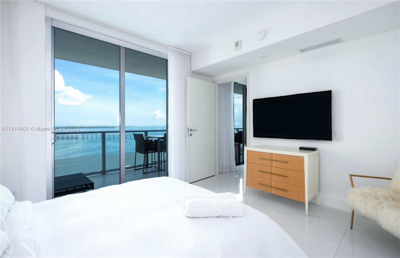 Rarely available line 05 with direct views to beautiful Biscayne Bay! Fully furnished 2 bed + den (converted into 3rd bed) with high end furniture. This unit has floor-to-ceiling windows with bay views and a huge balcony stretching all the way from the master bedroom to the living room. Huge walk-in closets in both rooms. Resort style amenities include 2 pools, cabanas, BBQ area, club room, kids lounge, family areas, 24 hr concierge and security, valet, and a welcoming lobby. Fully equipped state-of-the-art fitness center and private owners lounge with event bar and catering kitchen, theater, and spa. The unit is perfect for end users or investors as the building allows 30 day minimum rental. Please allow 24 hrs to schedule showings.