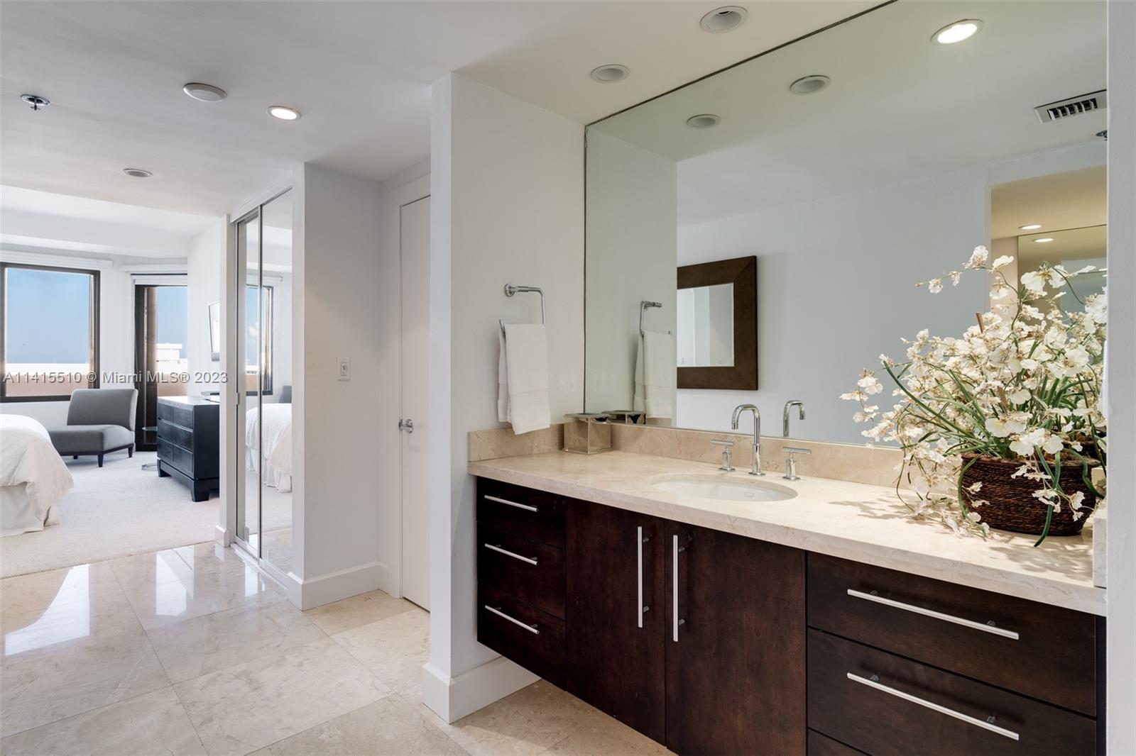 Enjoy all the amenities Key Colony has to offer at this remodeled 2 bedroom / 2 bath oceanfront unit at Key Colony's Ocean sound, located directly on Key Biscayne's finest beach. Enjoy a beachfront lifestyle with multiple pools, beachfront restaurant, 12 tennis courts, fitness center, onsite convenience and groceries store, playground, recreation rooms and more. This unit was remodeled to include an open kitchen with stainless steel appliances, marble floors and custom window treatments.