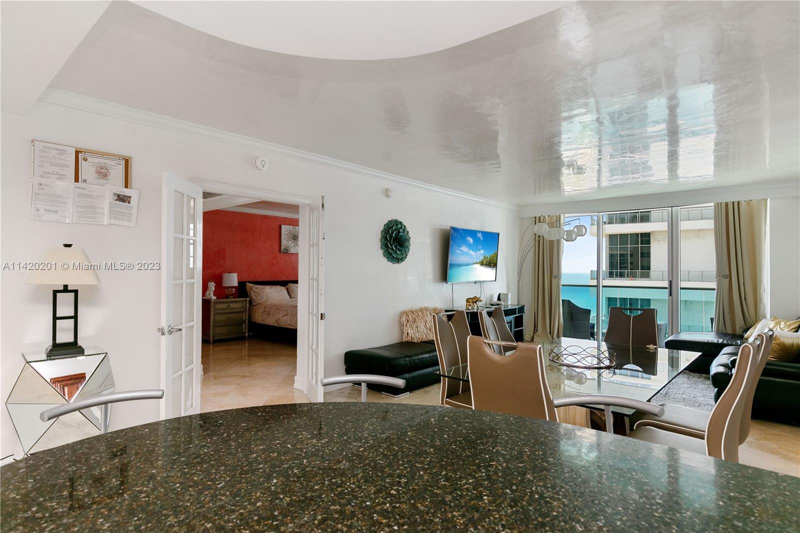 Don't miss out on this special chance to own a condo right by the ocean! You'll love having direct access to the beach! This condo has 2 bedrooms and 2 bathrooms, with a beautiful view of the ocean. Inside, you'll find a kitchen with a granite countertop, travertine floors, and elegant Venetian plaster and crown molding. The condo has French doors and custom bathrooms with Jacuzzi tubs. Amenities include: heated pool right by the beach, a library, a business center, billiards room, and a party room. You can even eat at a restaurant right on the beach! There's also valet and concierge service to make your life easier. The Sian condo is an investor-friendly building and allows short-term rentals. It's an amazing opportunity you won't want to miss!