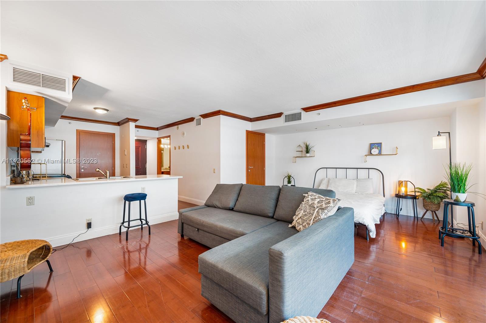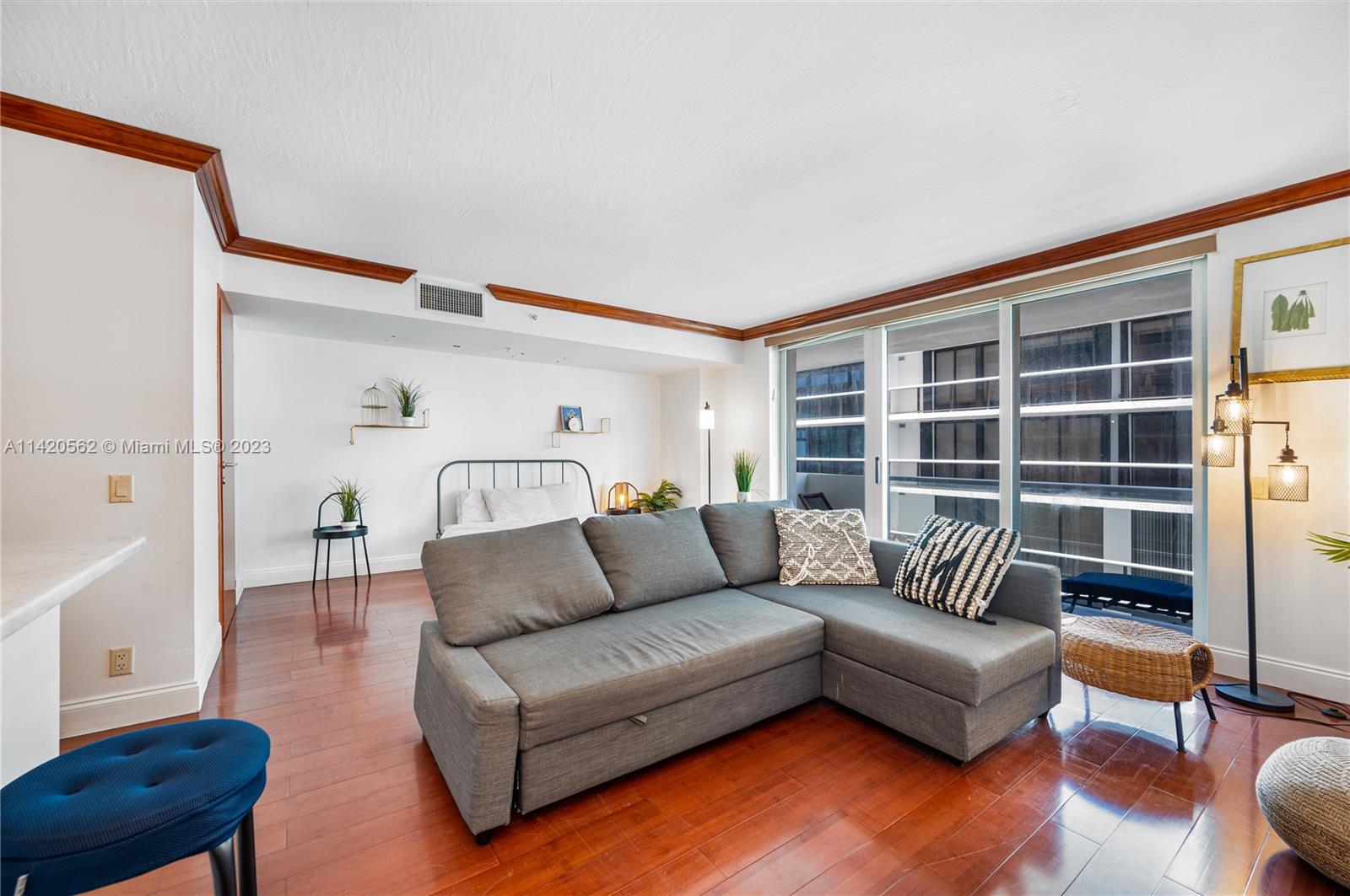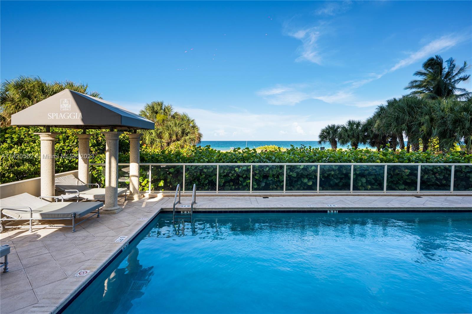 Large studio apartment (600 SqFt) in the Spiaggia featuring a spacious balcony with an ocean view. The condo features a large walk-in closet, wood flooring throughout, hurricane impact windows, a washer/dryer in unit, and a brand new a/c. The Spiaggia is a boutique oceanfront residence with luxury amenities that include beach service with chairs and umbrellas, a swimming pool, a 24-hour lobby concierge, valet parking, and a fitness center. Centrally located in Surfside, around the corner from the Shops of Bal Harbour, walking distance to cafes, restaurants, and supermarkets.