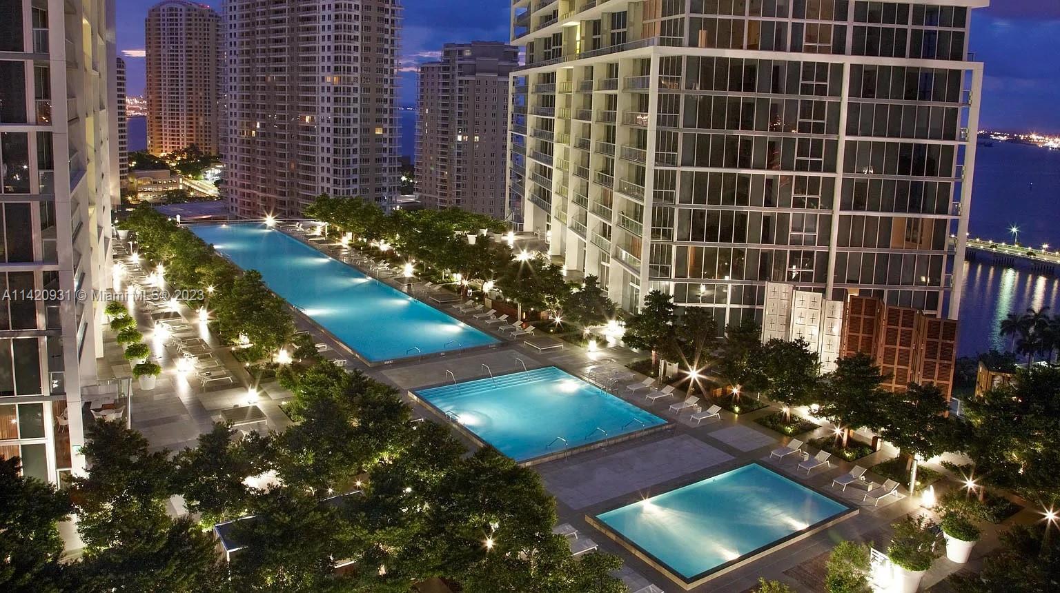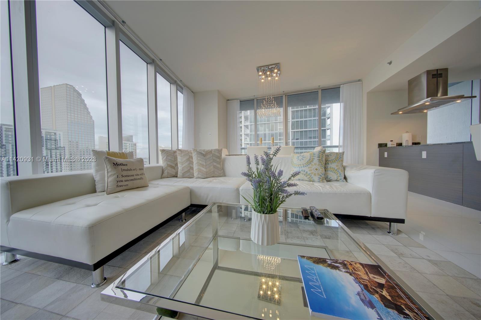 Unique and deluxe 5-star high-rise condo in the heart of Brickell has amazing bay, river, and city skyline views from balcony, day and night! This spacious 2 bed/2 bath unit with fully equipped kitchen is located in the same building as the famous W Hotel Miami and has access to spa with wet and dry saunas, fully equipped gym, and pool with poolside bar. This beautiful condo is steps away from fine dining, cafes, Brickell City Center Mall, Downtown Miami, and Metromover & Metrorail stations. Design District (Wynwood), Coconut Grove, and South Beach are minutes away by car. Condo is permitted for short-term rentals so it can be rented daily, weekly, monthly, or annually. Fully furnished and Airbnb ready!