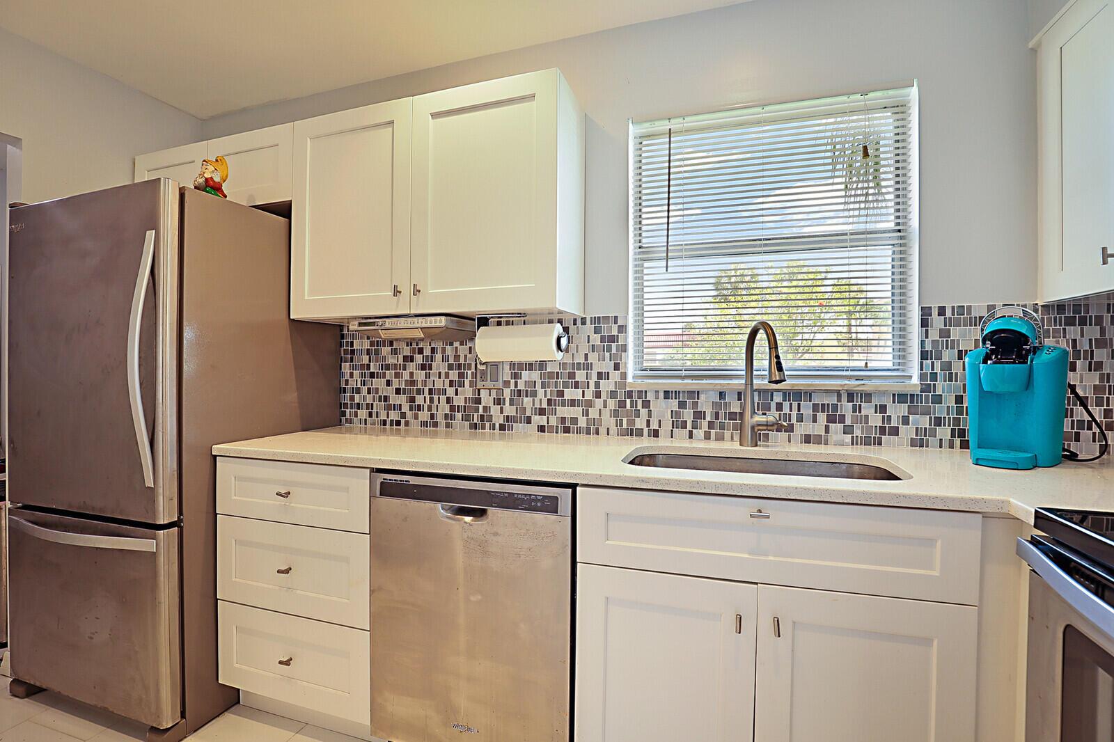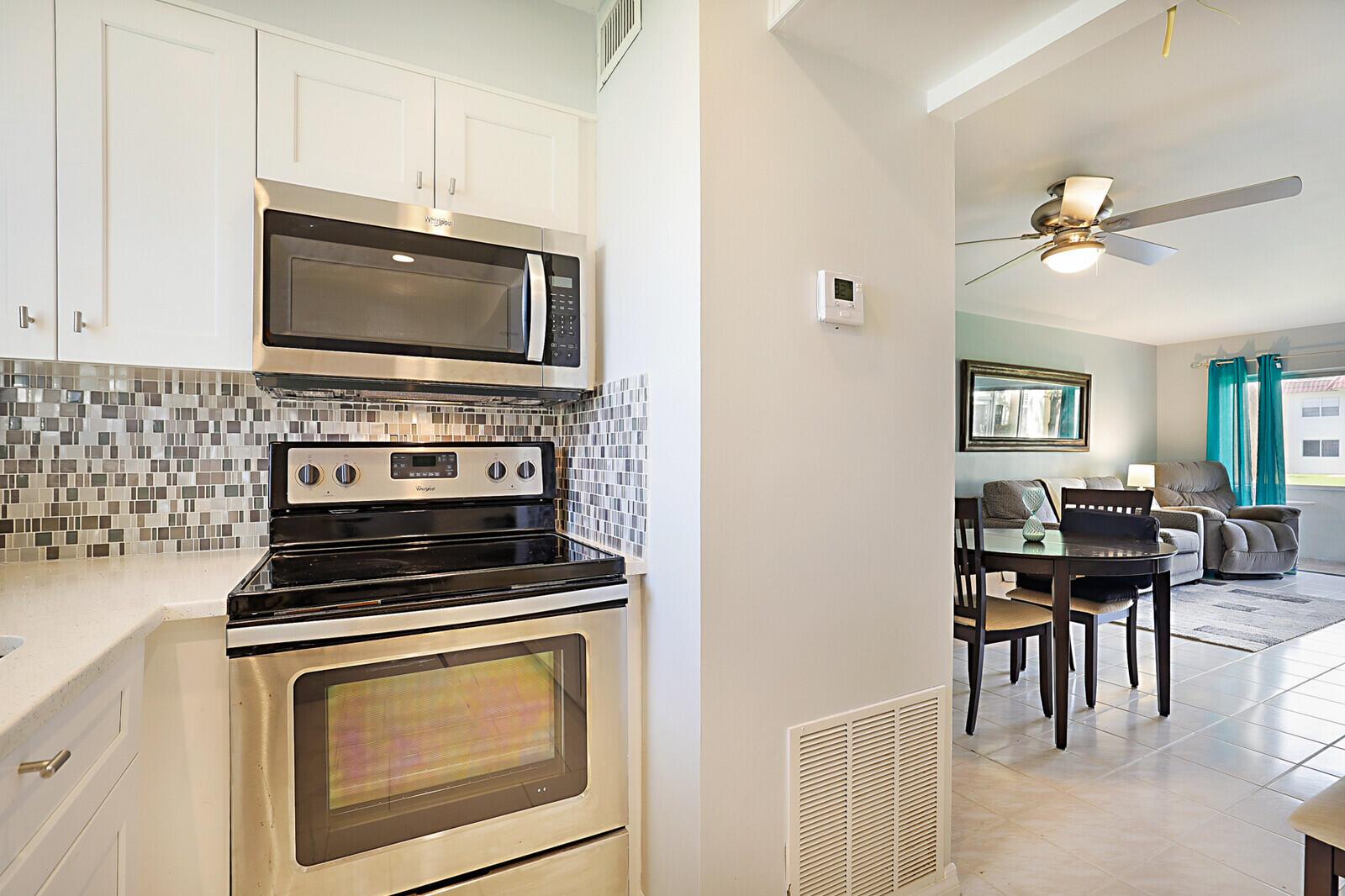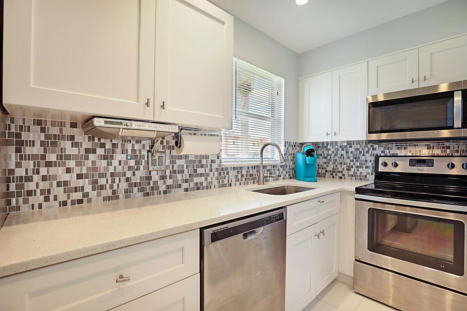 Beautifully renovated, ground floor, corner unit located in Golden Lakes. Charming one bedroom, one and half bath with a spacious living/dining area. Newer air conditioner (2021) and water heater (2021). Kitchen complete with soft close cabinets, quartz countertops, stainless steel appliances and walk in pantry. Full bathroom tastefully remodeled featuring a walk in shower with frameless shower door. Bedroom features laminate floors and custom closet organization system. Perfect for year round living or escape from the cold.
