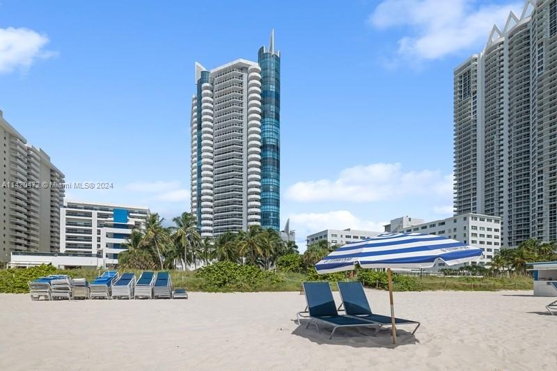 Stunning ocean, intracoastal & bay views from high floor spacious 2BR/2BA in full service oceanfront building in Miami Beach. Unit sold furnished. Floor to ceiling windows allow the water views to be enjoyed from many vantage points & provide abundant natural light. Other features include open floor plan, tile floors, large primary suite privately set off from living area, new central air (March 2024), and 2 balconies, of which 1 is accessible from the bedrooms. Two assigned/covered parking spaces & 1 assigned storage locker. Building has lovely lobby & common areas, along w/resort-style amenities, such as gym, pool & beach service for chairs/umbrellas. Conveniently located to shopping & restaurants, as well as South Beach, Surfside & Bal Harbour. NOTE: Floor plan shows north balcony only.