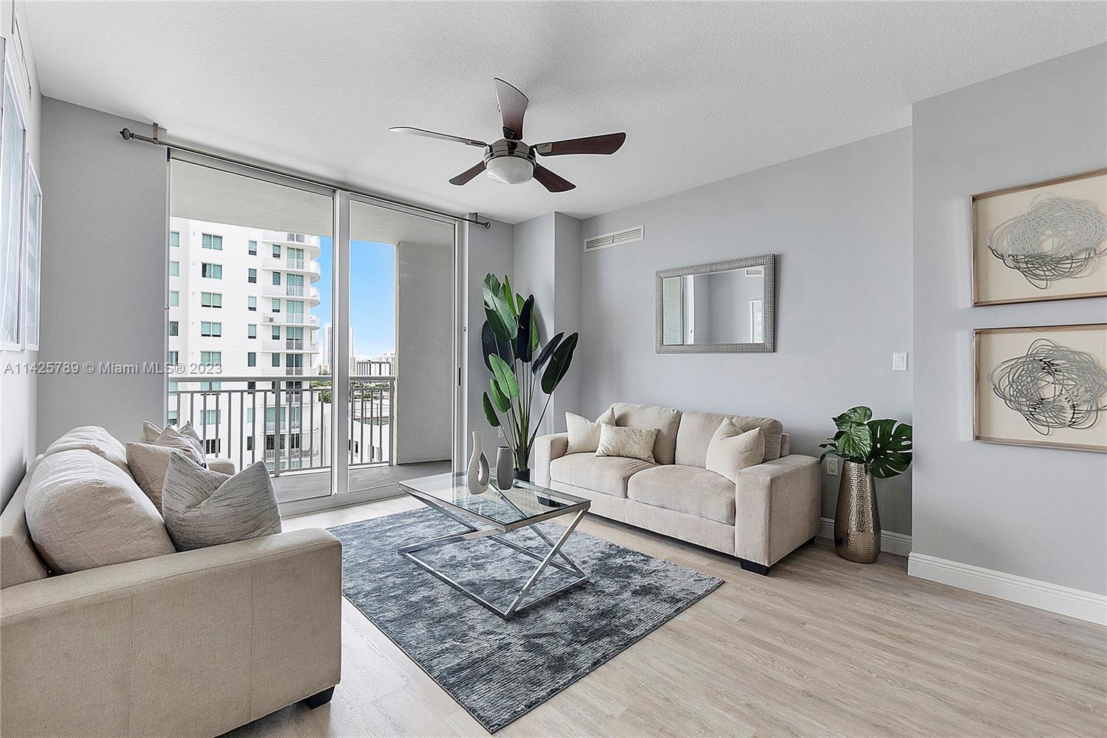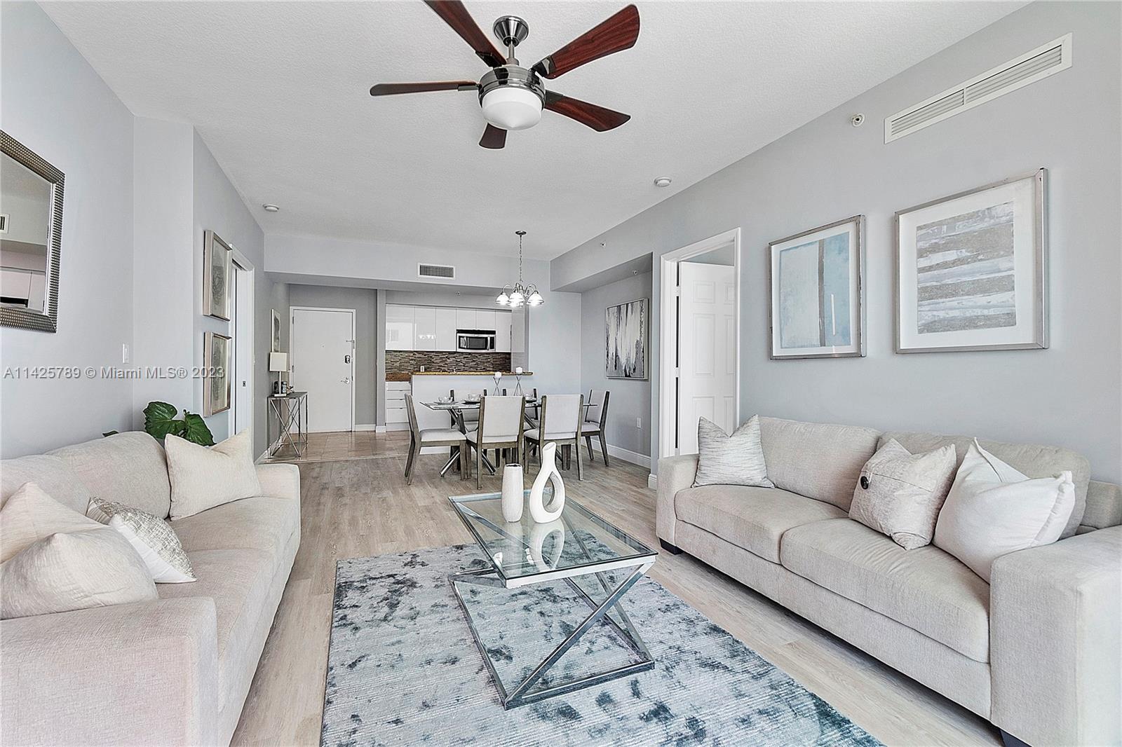Remodeled 2 bedroom, 2 bathroom, Hallandale Beach condo w/stunning golf course, pool, intercostal, & ocean views! Property features an open kitchen w/granite countertops, tile backlash, & stainless steel appliances. New vinyl flooring throughout, creates a modern & cohesive look! Oversized balcony faces East w/breathtaking sunrises, & a stunning view of the entire city! Primary bedroom has direct access to balcony, oversized walk in closet, & large ensuite bath w/ double vanity sinks. Washer & dryer in unit! The Duo is a luxury high rise community that features resort style amenities including, heated pool & hot tub, fitness center, tennis courts, clubhouse, billiards room, valet parking, & more! Walking distance to beach, shops, restaurants, & nightlife! SPECIAL ASSESSMENT PAID IN FULL!