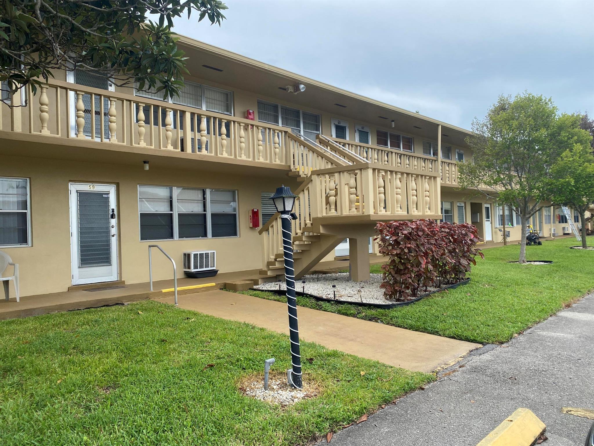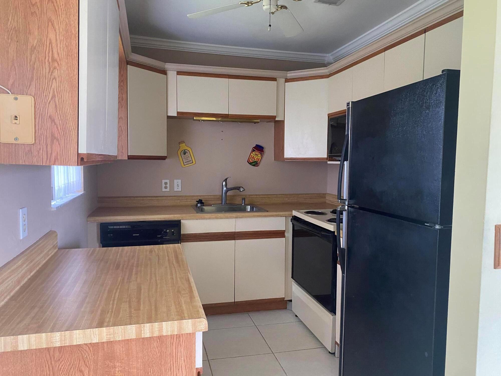 For sale in a 55 + retirement community of Century Village a lovely 2 BD., 2 Baths corner condo. Features include Central Air, windows in kitchen and bath. Building has new metal roof. Unit is located close to pool and fitness center. Enjoy many amenities of resort style living, like 1000 seat clubroom to watch shows and movies, indoor and outdoor pools, courtesy bus service, medical facilities, drug store, beauty shop, tennis, boating and more. Close proximity to PBI airport, restaurants, shops and beaches