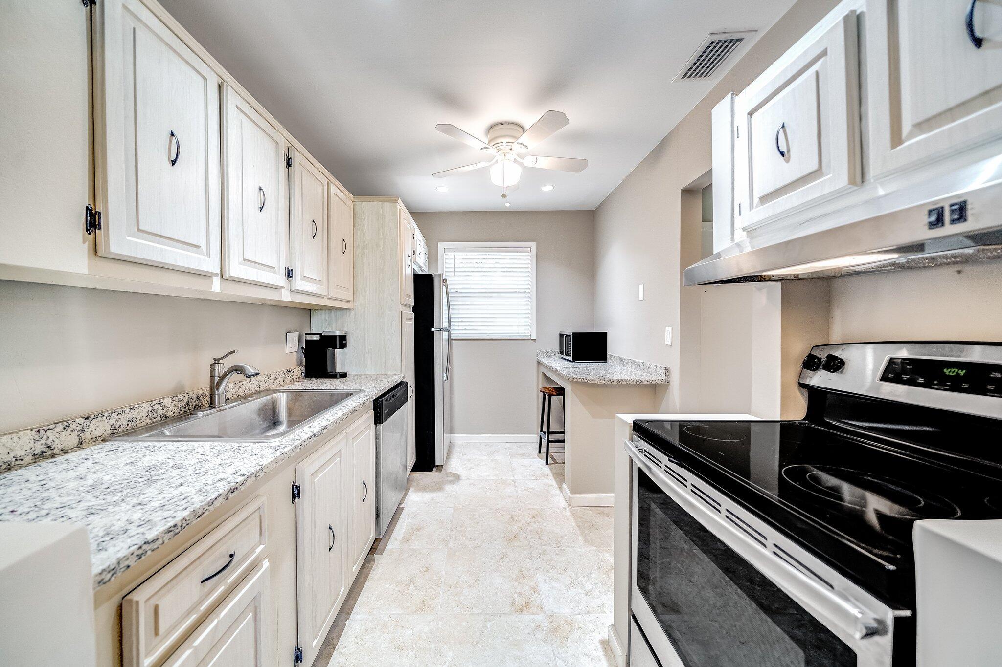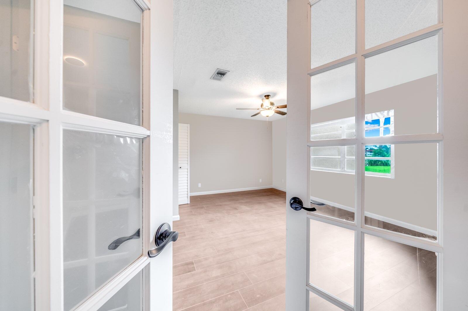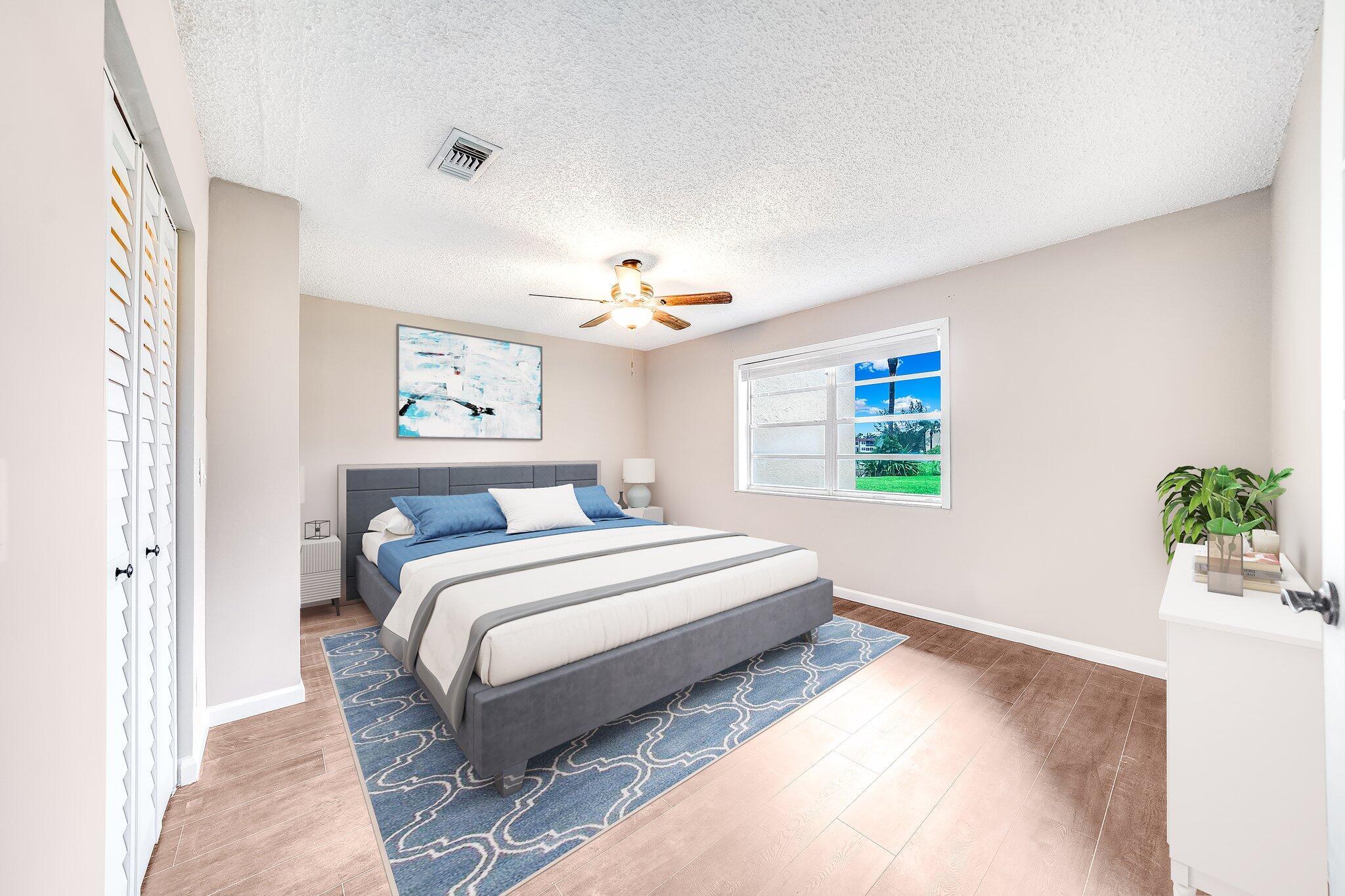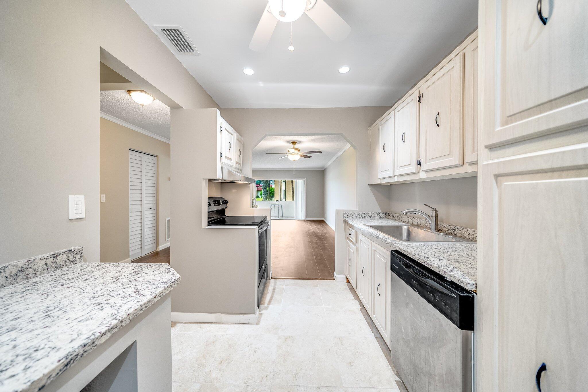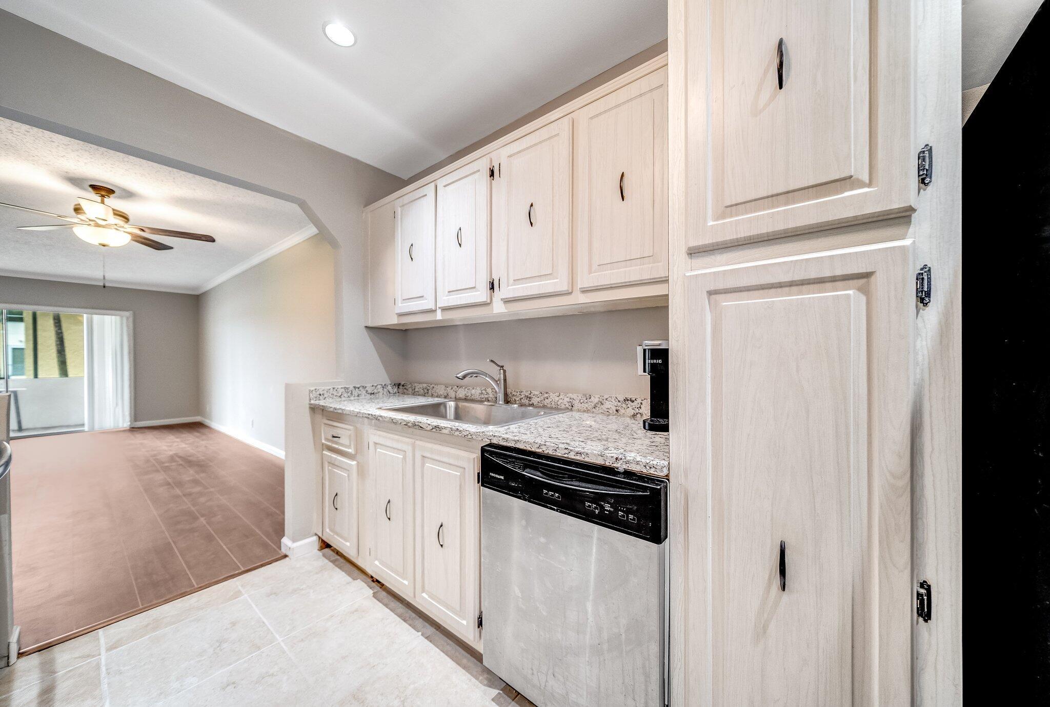 SPACIOUS AND OPEN 2 BEDROOM/2 BATH VILLA IN PHASE ''A'' OF GOLDEN LAKES. APPRECIATE GORGEOUS LAKE VIEWS FROM THE LIVING ROOM AND PRIVATE PATIO. UPDATED KITCHEN WITH GRANITE COUNTERTOPS AND STAINLESS STEEL APPLIANCES. KITCHEN OPENS TO DINING ROOM AND LIVING ROOM WITH CUSTOM TV/STORAGE UNIT. BEAUTIFUL FRENCH DOORS LEAD TO THE SPACIOUS PRIMARY BEDROOM WITH WALK-IN CLOSET AND UPDATED VANITY. GOLDEN LAKES IS A 55+ GATED COMMUNITY WITH MANY AMENITIES - 2 CLUBHOUSES, 14 HEATED POOLS, EXERCISE FACILITY, BILLIARDS, TENNIS. LOCATED CLOSE TO SHOPING, RESTAURANTS & TURNPIKE. SHORT DRIVE TO CITY PLACE, KRAVIS CENTER AND BEACHES. MUST SEE TO APPRECIATE THIS GEM.