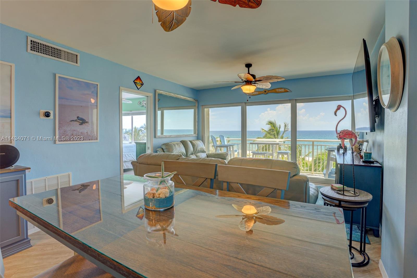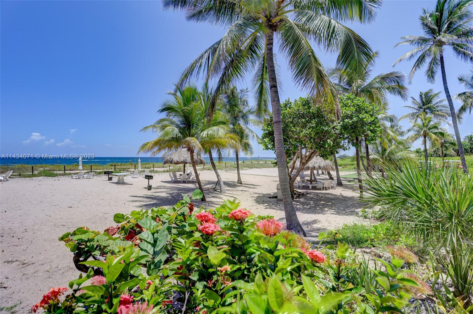 Resort-Style Living…DIRECTLY On The Beach! Fully remodeled 2 bed/2 bath open concept condo with unobstructed ocean views from almost every room. Newer appliances, large TVs, new A/C unit. Fully furnished, deluxe patio furniture and upscale, beachy vibe. Well designed gourmet kitchen features newer stainless steel appliances and tons of storage, and separate dining area. Primary bedroom is large with ocean views. Second bedroom is private and quiet. Well appointed on-suite bathrooms in both bedrooms. Giant balcony overlooks pool and private beach w/ tiki umbrellas, BBQ's, fire pit, hammock garden and ocean. Short walk to Pompano Beach Pier, shops, restaurants & bars, or take free shuttle! Dues Include Water, Trash, Cable TV w/Premium Channels, Internet, Building Insurance.