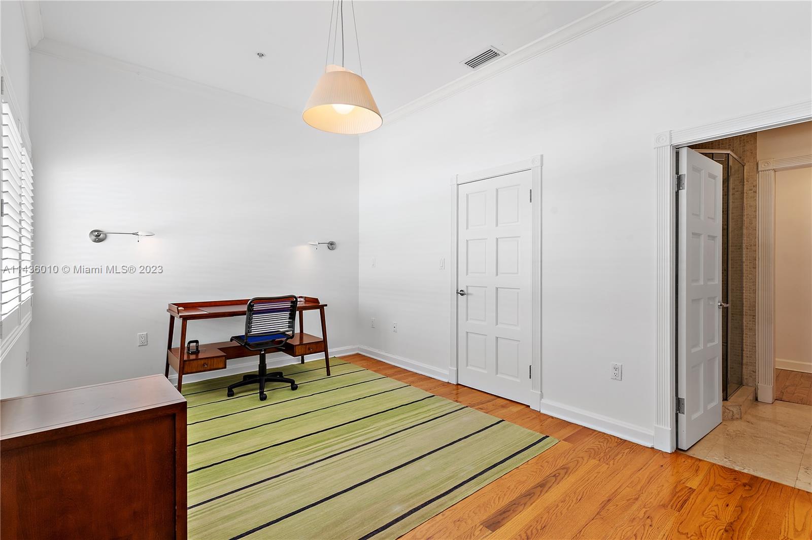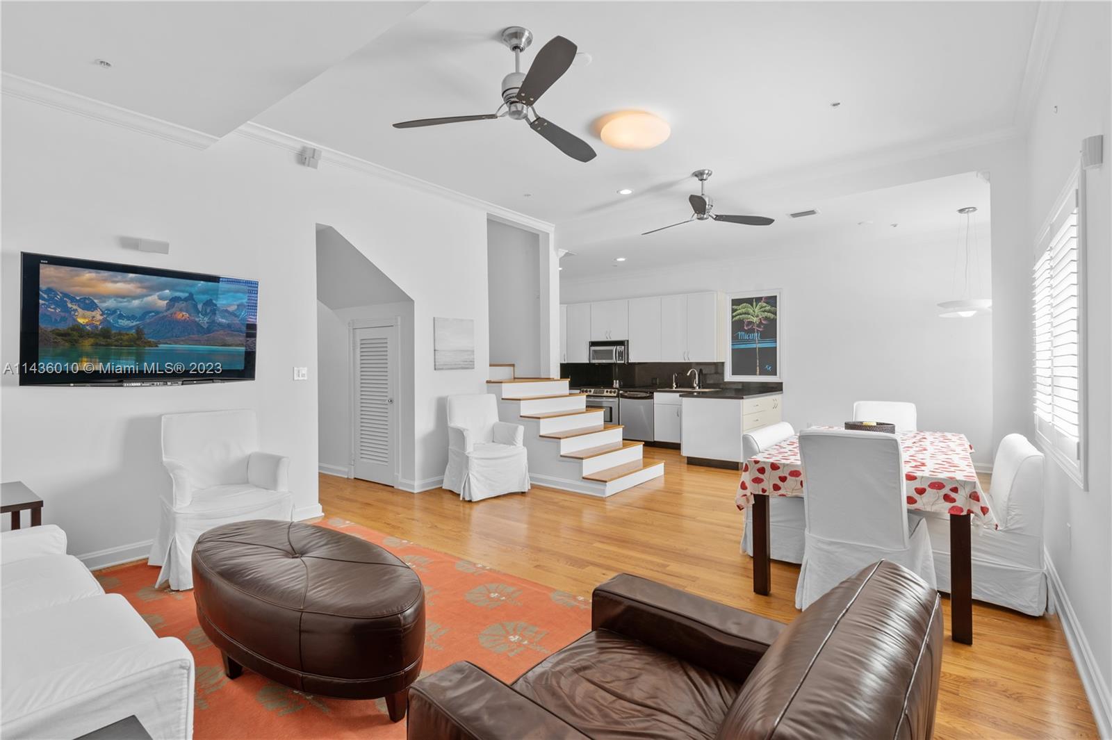This 3 bedroom, 3 bathroom two story townhome is located in the heart South Beach (South of Fifth), in the 14 unit boutique building of The Presidents Club. Just two blocks to the beach this spacious home features real hard wood and marble flooring, volume ceilings, and an open kitchen/living room area. Two bedrooms downstairs both with access to their own private bathrooms. Upstairs you will find a huge primary bedroom with a large walk in closet and a spacious 500 SF rooftop patio providing the best city and ocean views. Impact windows and doors throughout. Brand new AC. One garage space included. Washer/dryer in the unit. Just a short walk to the white sandy beach, restaurants and the best shops that South Beach has to offer.
