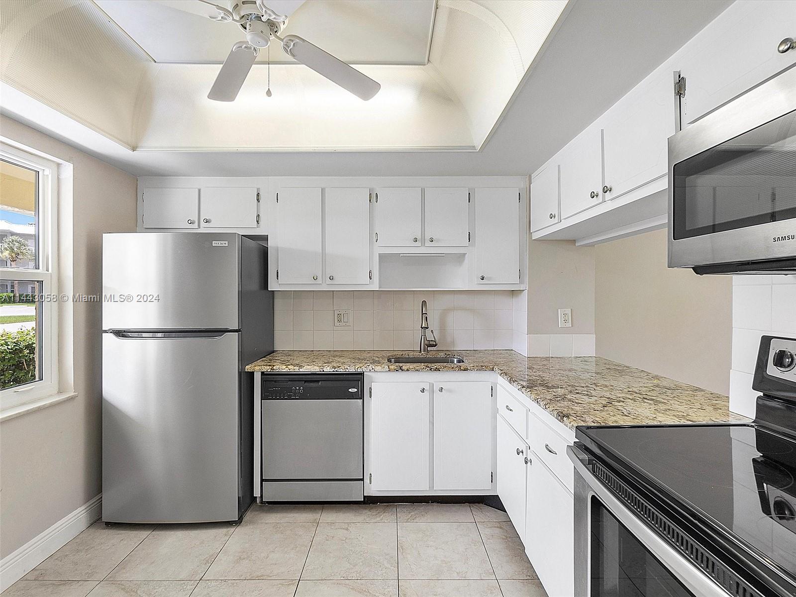 Just completely renovated first floor unit, 2 bedroom and 2 bathroom unit in desirable Sandalfoot South, Boca Raton, an active 55+ community. Spacious primary suite with walk-in closet. Serene view from the living room and master bedroom of the green area. No carpet, all tile floors. Updated kitchen and baths. All new flooring. 1 parking spot assigned and tons of guest parking. Enjoy this meticulously maintained community with pool. Close to golf, restaurants, and shopping. No annual leasing, only seasonal leasing allowed. No pets, credit score 690 with min. 20% down. Assoc. has insurance but does not carry flood insurance. Laundry room is directly across the hall from unit. No Motorcycles.