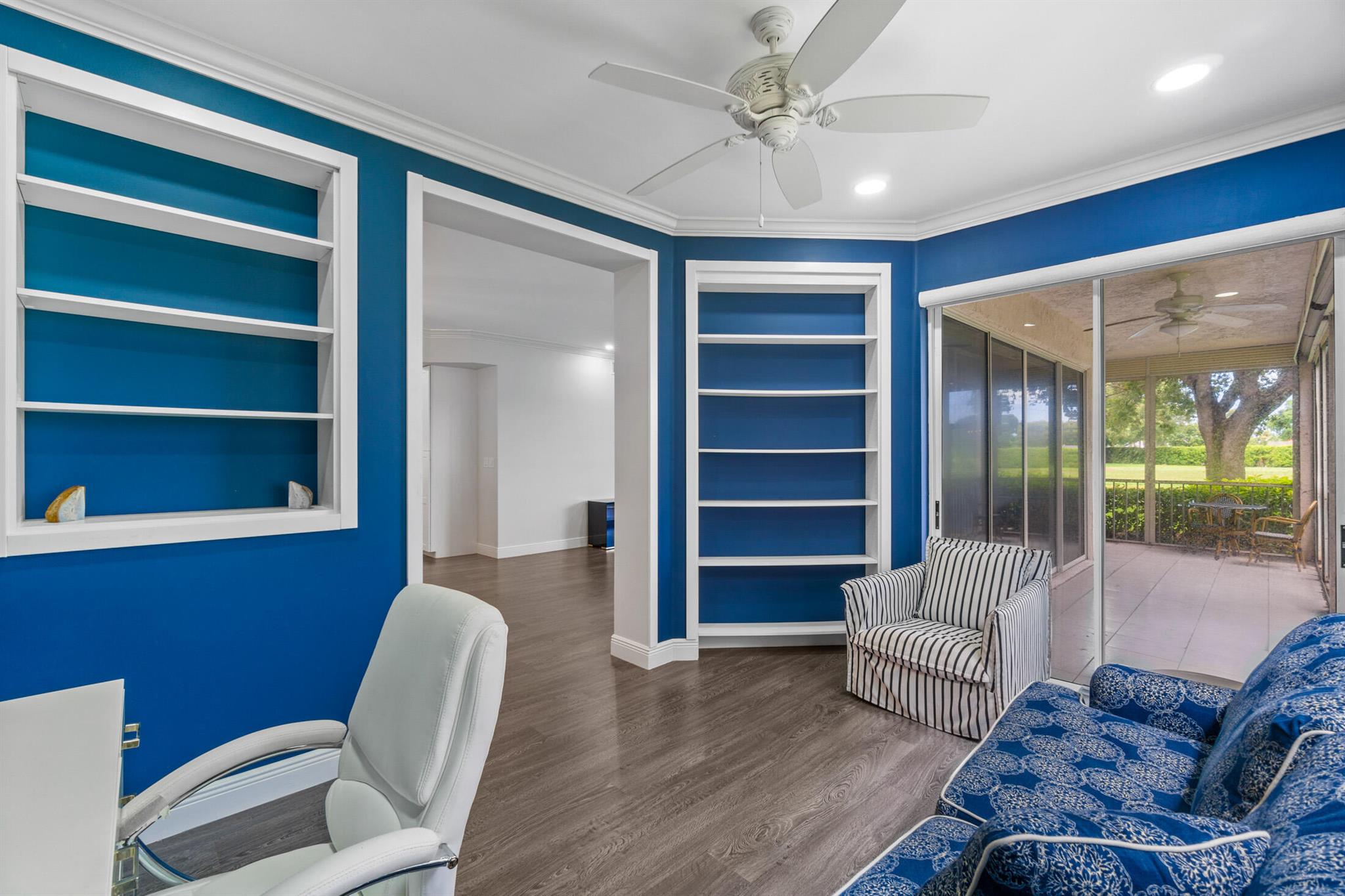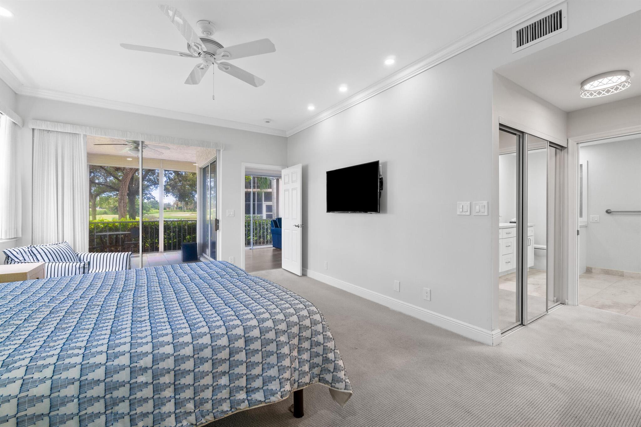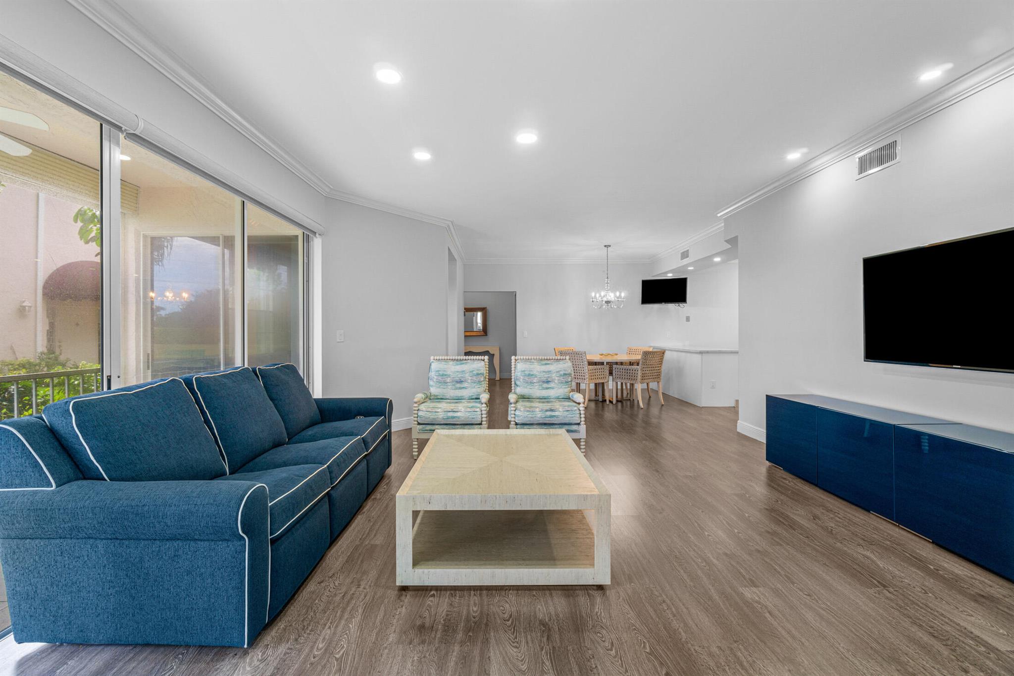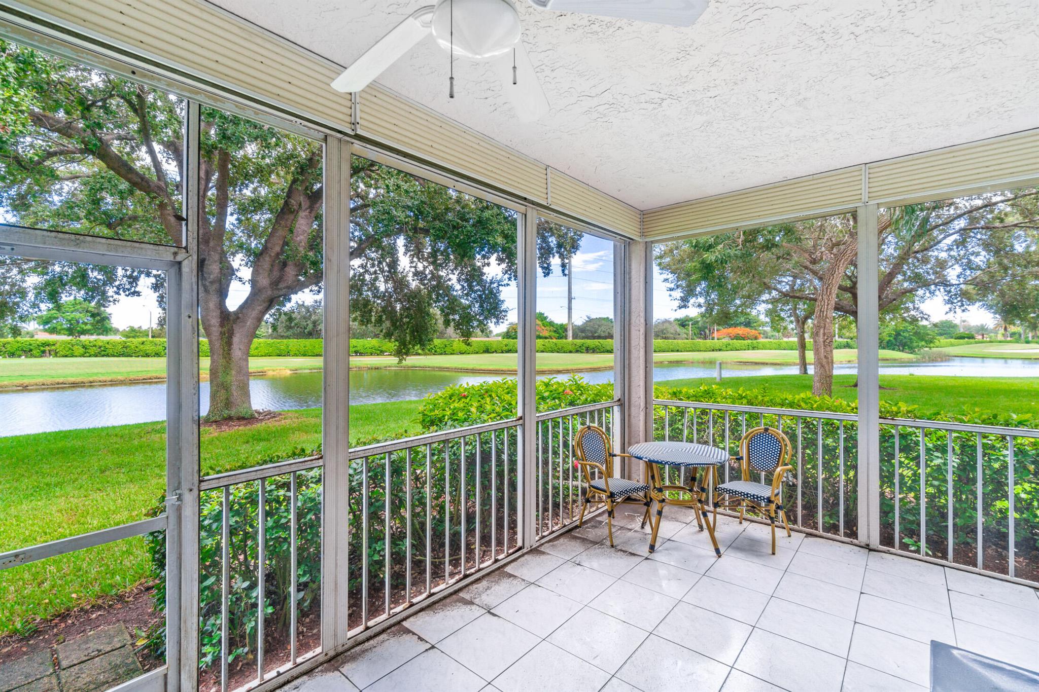 A beautiful, renovated, first-floor condo awaits! Step into this light and bright home that has an open floor plan and gorgeous lake views. A modern kitchen connects effortlessly to the dining space, where open sightlines allow for connectivity and easy entertaining. The spacious living room flows directly to the screened-in patio where you can take in the sprawling vistas from every angle. Situated independently, the primary suite features a large bedroom, dual closets, and a spa-like bathroom with double sinks and a seated make-up area. The second bedroom is next to the second full bathroom, with the third bedroom is currently outfitted as an optional den. Located in the award-winning Polo Club Country Club, this community offers fantastic amenities like the two championship 18-hole