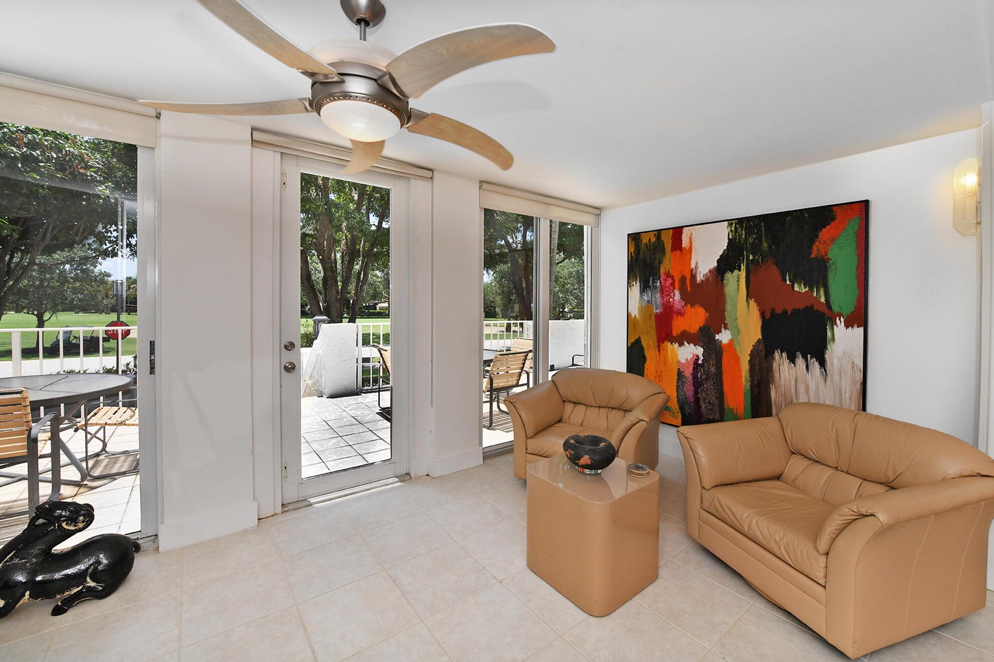 Rarely available first floor 3BR condo with large wraparound terrace for both indoor and outdoor living. This residence features an open floor plan, split bedrooms and plenty of natural light. Entertain in the spacious living room with bar or the separate sitting area in the enclosed patio with golf views of the 10th fairway. The luxurious Master Suite has access to the outdoor terraces as do the other bedrooms. Centrally located within the community and just a short distance from the Clubhouse and brand new pool and fitness center. Boca Grove is also in close proximity to great shopping, fine dining and houses of worship. Come and experience all that Boca Grove has to offer.
