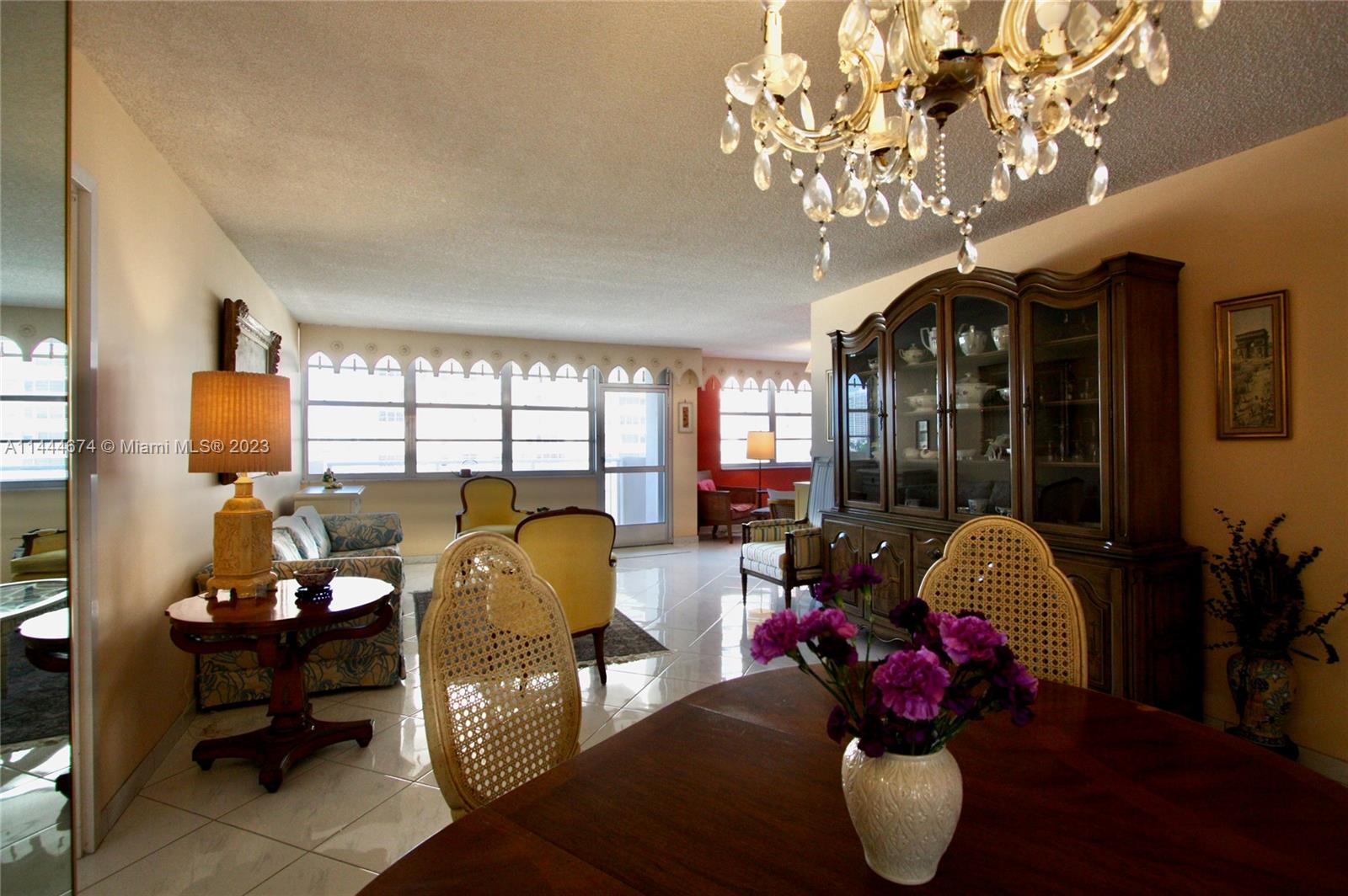 Located in the heart of Sunny Isles Beach, this condo unit has great Intracoastal, city & ocean views. Dining/living area opens up to a generous balcony. The modern kitchen has white cabinets, counters & appliances. The "convertible 2nd bedroom" is being used as a den. Lots of closets. The building is less than a half a mile from the beach and offers many amenities such as pool, gym, laundry on each floor. Building is undergoing a number of upgrades/renovations: Elevators have been modernized. Lobby is almost done. Pool and pool deck are next. Special assessments have been paid. Low maintenance includes hot water, cable, internet, parking, etc. Close to Aventura & Bal Harbour malls, lots of other shopping, restaurants. Wilton Towers Park is just next door. “A” rated K-8 school.