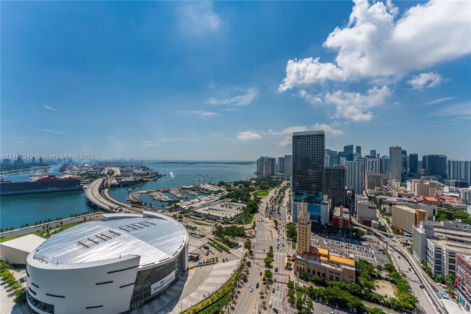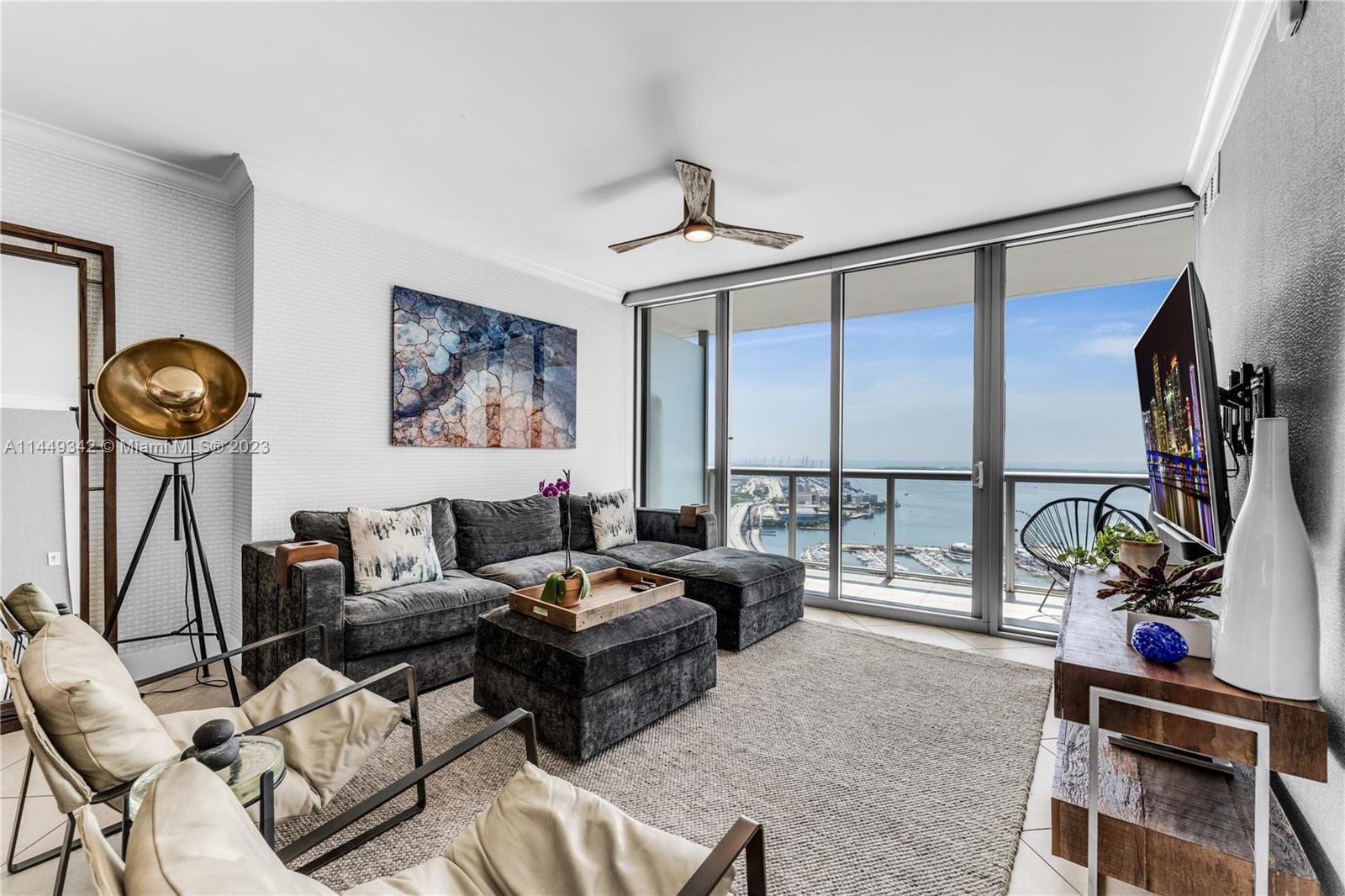 Experience modern luxury in this upgraded 1-bed, 1.5-bath condo with a den and Bay views. 2023 AC, upgraded bedroom flooring, blackout blinds, a spacious kitchen island, updated cabinets, new hardware, and a modern refrigerator. Elegant touches like wallpaper accents and updated lighting fixtures create a welcoming ambiance. Den adds versatility, and closet buildouts enhance storage. Prime location within Miami Worldcenter, where the city's finest dining, shopping, and entertainment are at your fingertips. Enjoy the vibrant lifestyle of this world-class destination, right in your backyard. Whether you're looking for a comfortable home or an investment property, this condo has it all. Washer/dryer in unit, 1 parking spot, and storage cage. First contract cancelled due to buyers financing