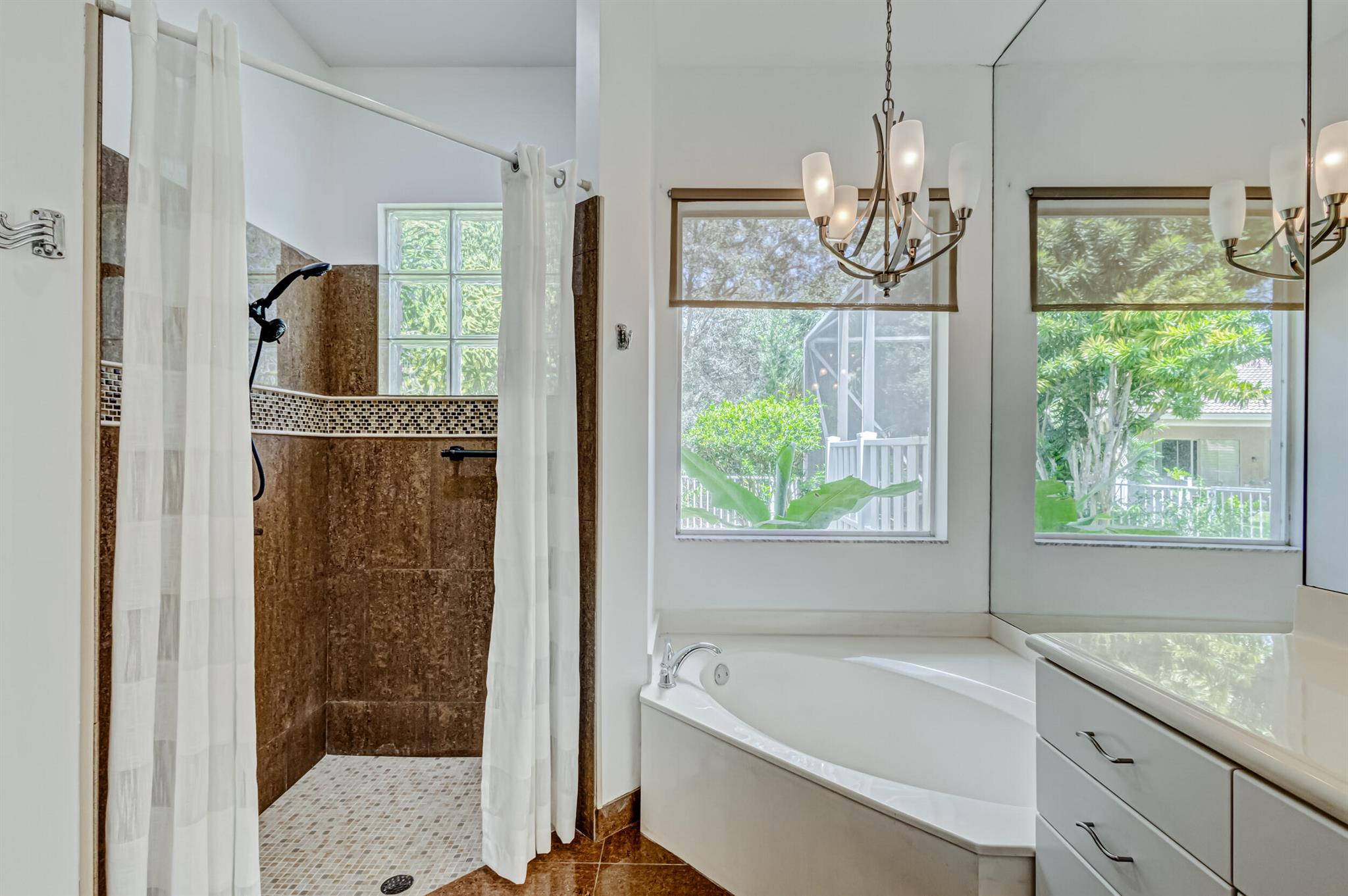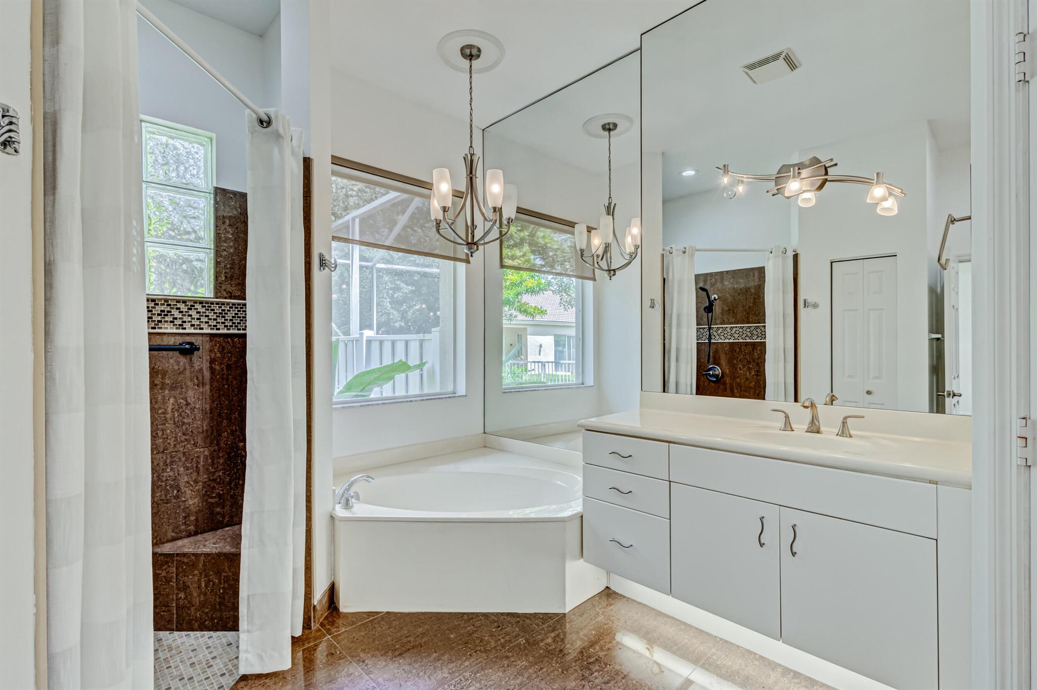 Stunning 3/2/2 Villa in Ultra Convenient Andros Isle. Serene Cul de Sac.. Semi attached has the feel of a single home. Garden of Eden yard, fully fenced for safety of children or pets. Large Heated Spa off patio. NEW ROOF (8 YR Warrenty). A/C 2022. Open Kitchen w SS Appliances/White Cabs. Split Bedrooms with large main BR (carpeted), MBTH Roman Tub, High Twin Vanities, large step in Shower. BR 2 & 3 Prem Laminate floors. Plantation Shutters. HOA includes 24/7 staffed gate, Home security system, landscaping front and back, Basic CATV, WiFi, Broadband, Ext Painting, Pressure Cleaning Roof. Award winning Clubhouse w Huge Heated Pool, Fitness Center, M&F Saunas, Tennis, Pickleball. No age restrictions. Private Rd to Publix Plaza. Easy access to Dwtn, WPB, Airport, Tpk,​​‌​​​​‌​‌​​​​‌‌​‌​​​​‌‌​​‌‌​​‌‌ Wellington.
