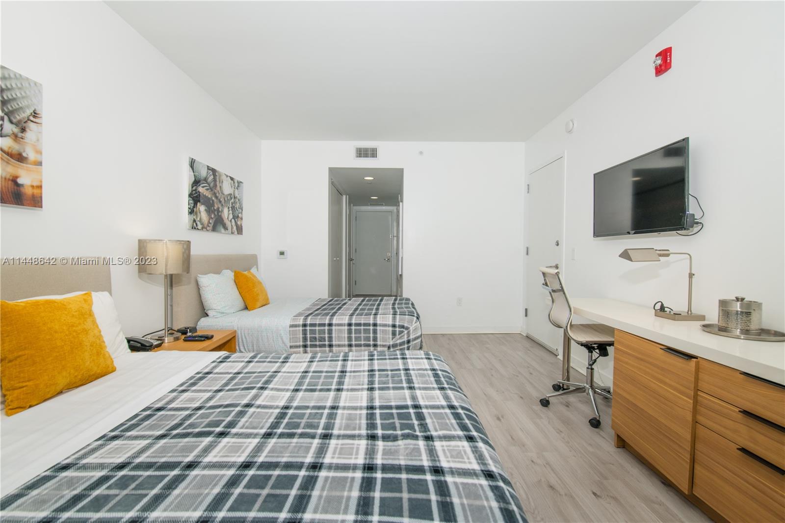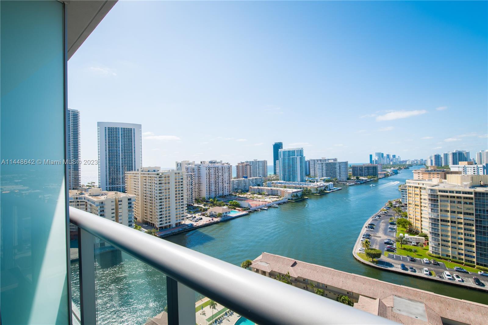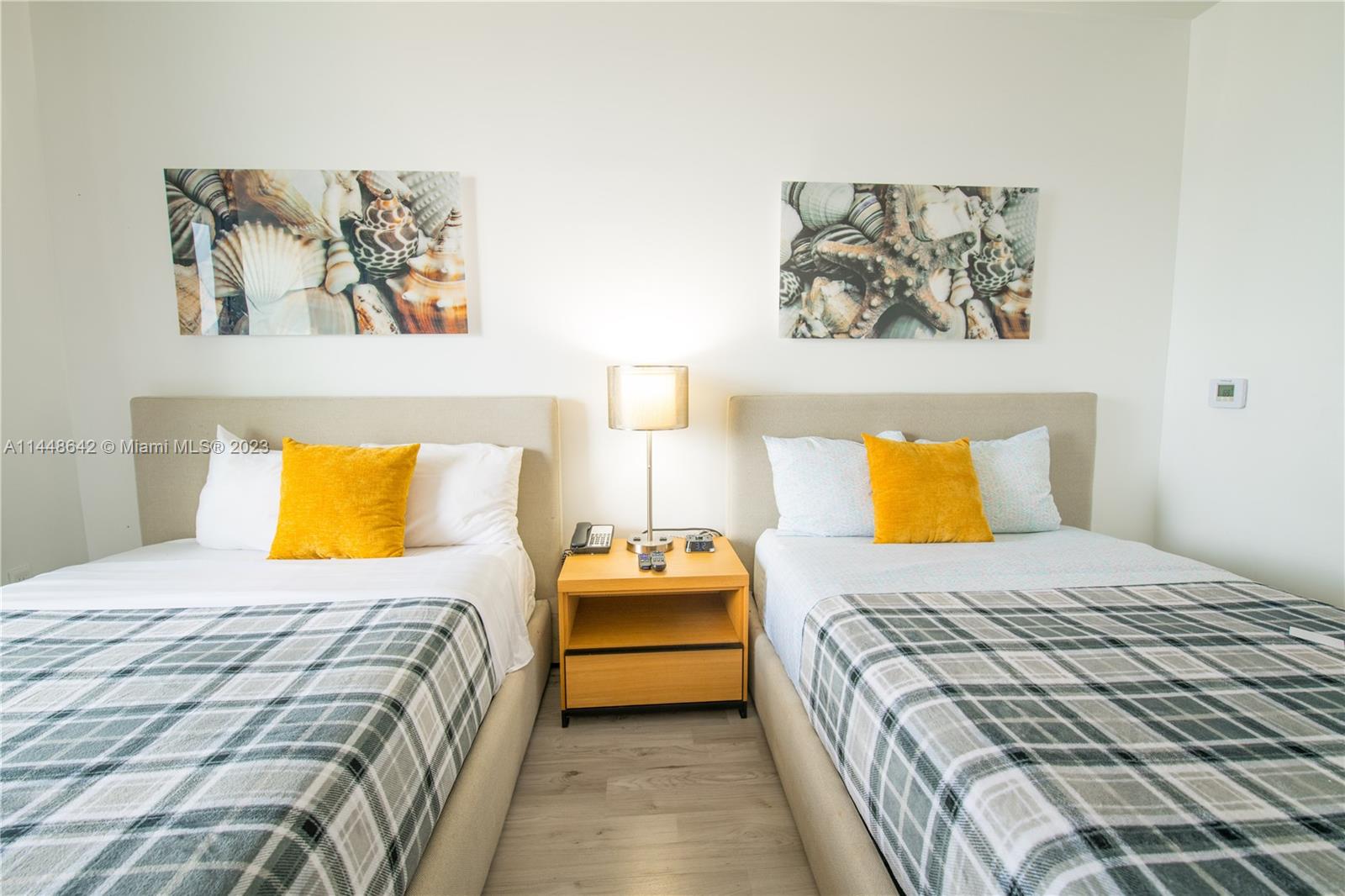 EXCEPTIONAL INVESTMENT POTENTIAL! Flexibility for Daily, Weekly, or Monthly SHORT-TERM RENTALS. This turnkey 2 bed / 2 bath unit is situated in a high-rise featuring on-site Restaurant, Dual Swimming Pools, Round-the-Clock Gym. Option to divide into two separate living spaces for diverse rental possibilities. The one-bed, one-bath suite comes with a well-appointed kitchen featuring stainless steel gadgets, in-unit laundry, a master bedroom with a luxurious king-size bed, and a renovated bathroom complete with a modern shower. The studio layout offers two queen beds, a dedicated bathroom, and ample closet space. Enjoy breathtaking vistas of both the Intracoastal Waterway and the Ocean, by day or night.